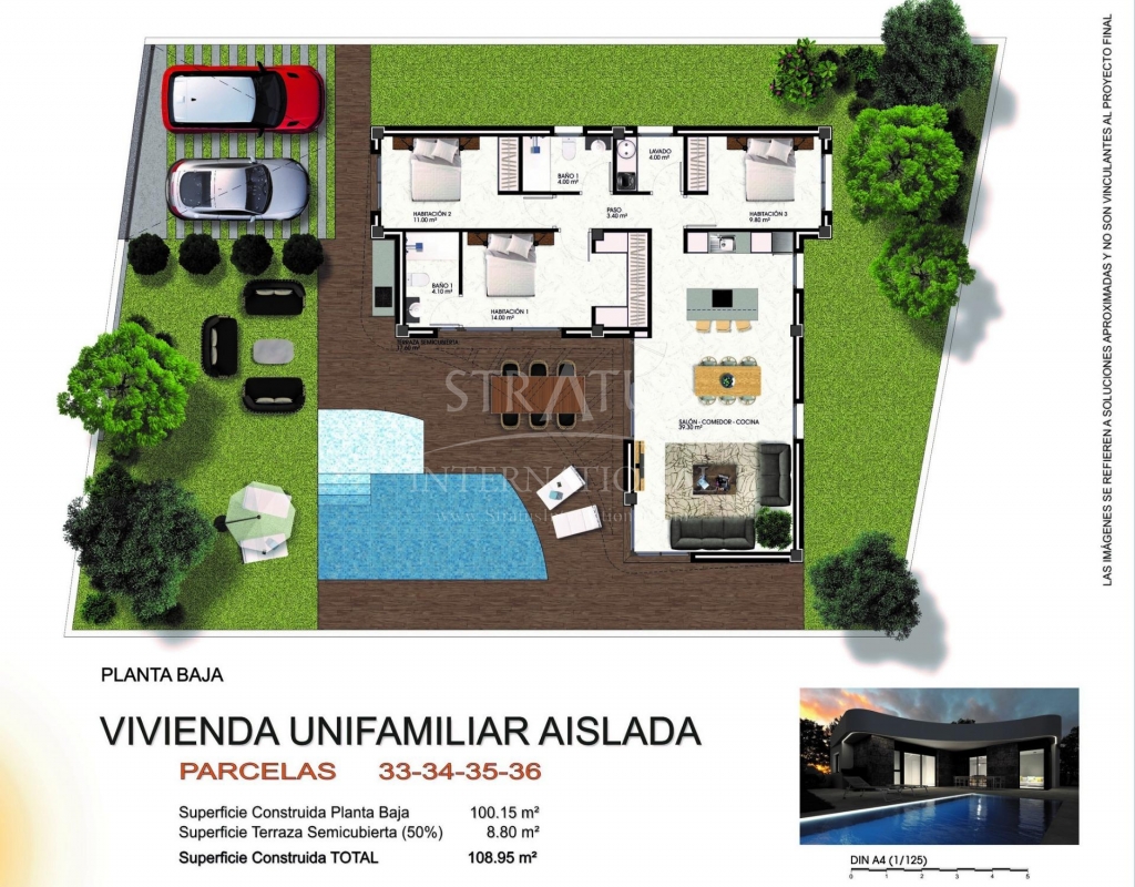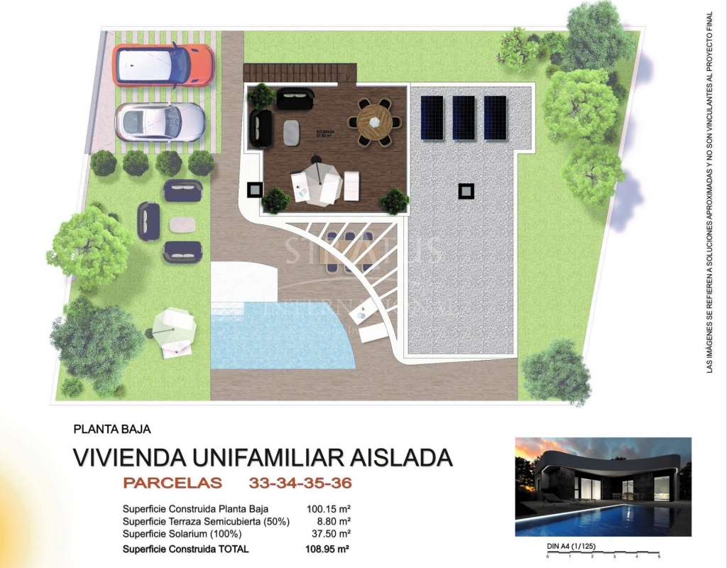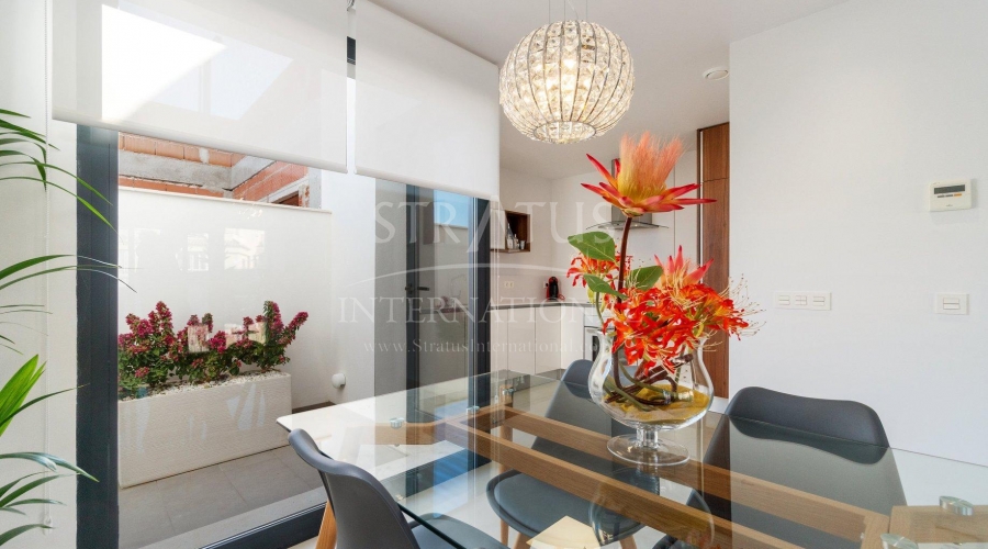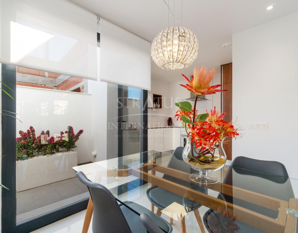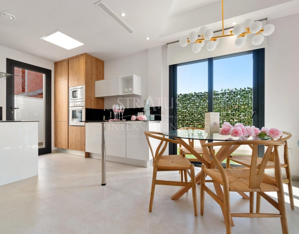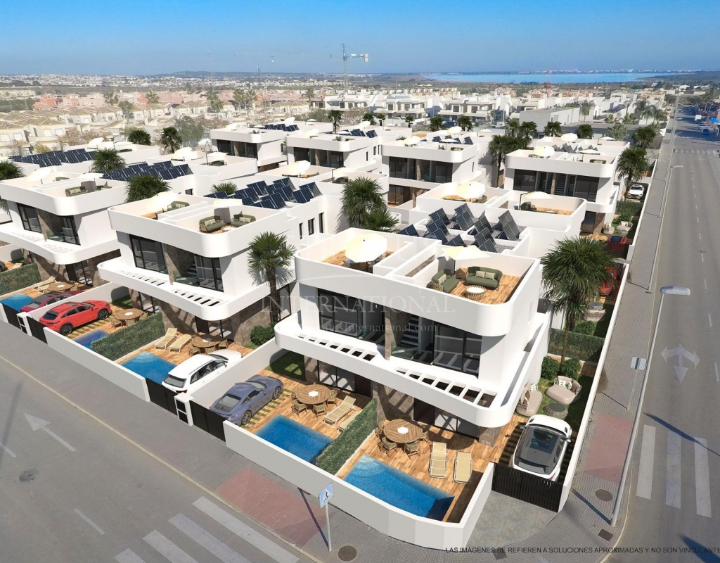VILLAS DE OBRA NUEVA EN LOS MONTESINOS Proyecto de Obra Nueva situado en La Herrada (Los Montesinos), en una ubicación privilegiada cerca de las mejores playas de Guardamar y con todas las comodidades que ofrece un gran municipio como Los Montesinos. Este proyecto cuenta con 32 villas, algunas pareadas en 2 plantas y otras independientes en una sola planta, que se entregan con el mejor equipamiento, incluyendo solarium, mamparas de baño, jardín acabado con césped artificial de la mejor calidad, elementos decorativos de jardinería, y preinstalación para placas solares, toma eléctrica y motor de puerta para vehículos. Villa dispone de 3 dormitorios, 3 baños, cocina americana con salón, armarios empotrados, terraza. El típico pueblo de Los Montesinos está estratégicamente situado a 10 minutos en coche de las playas y del ocio de Torrevieja (con todos los servicios de una gran ciudad: teatro, 2 hospitales, colegios internacionales, etc.), de varios campos de golf y con fácil acceso a la autopista A7 para llegar al aeropuerto de Alicante en 20 min. En la urbanización hay supermercados y bares para el servicio diario, siendo un entorno rural y tranquilo. El clima de esta zona garantiza 300 días de sol al año con una temperatura media de 20ºC, lo que unido a la rica gastronomía y oferta cultural y deportiva de sus alrededores, hacen de esta zona un lugar ideal para establecer una segunda residencia vacacional o un lugar tranquilo para vivir de forma permanente.Especificaciones