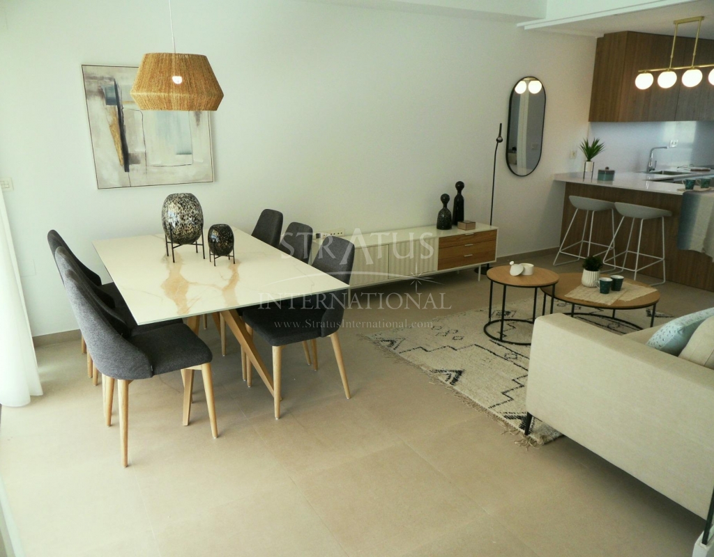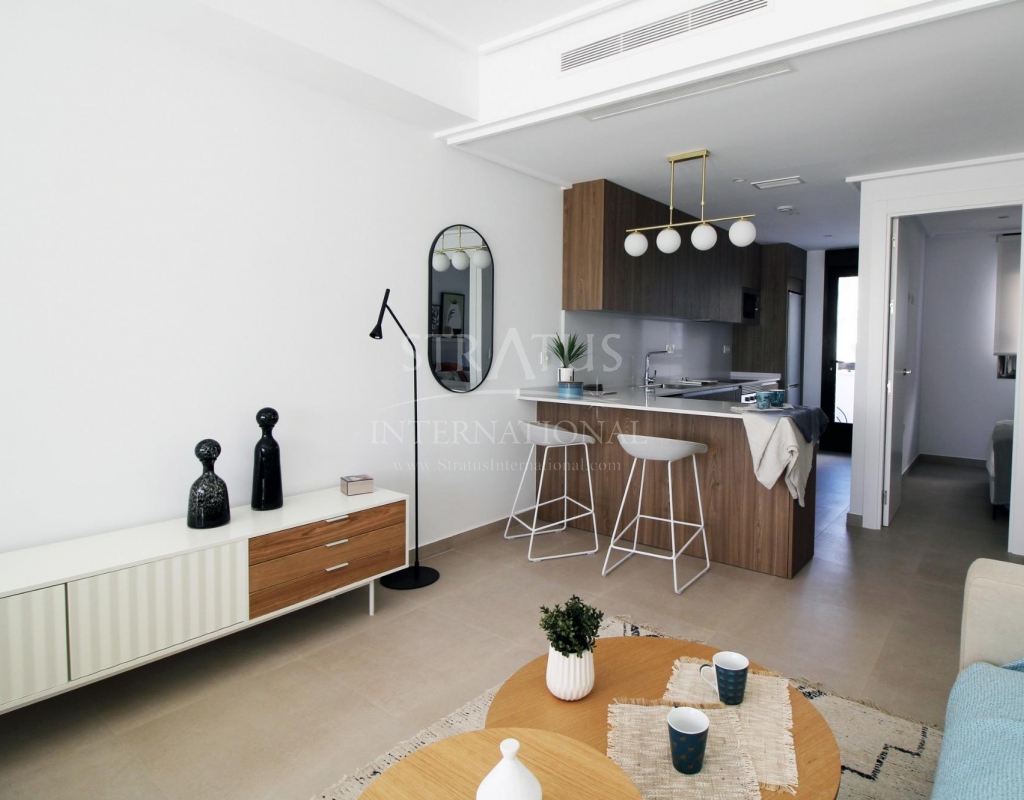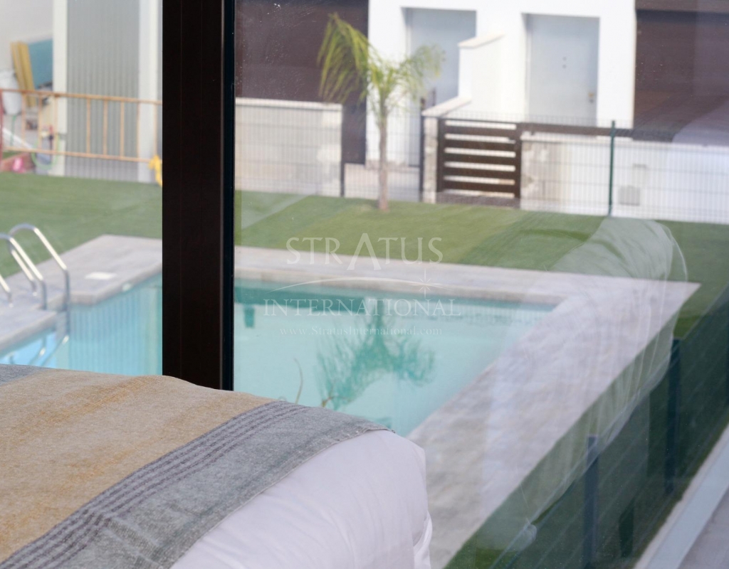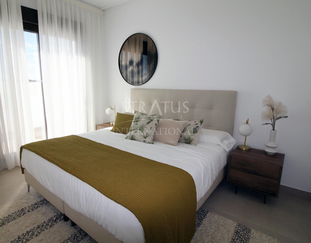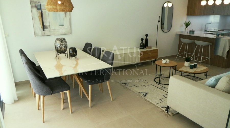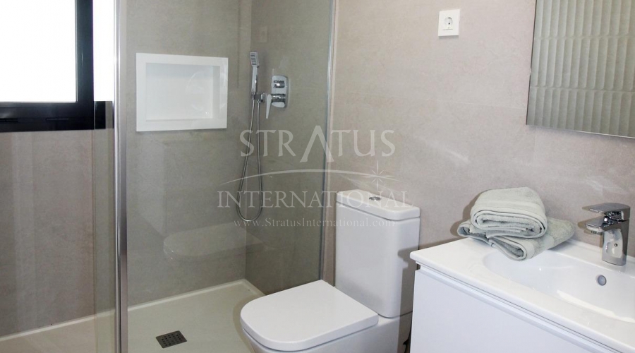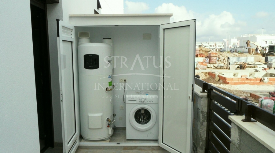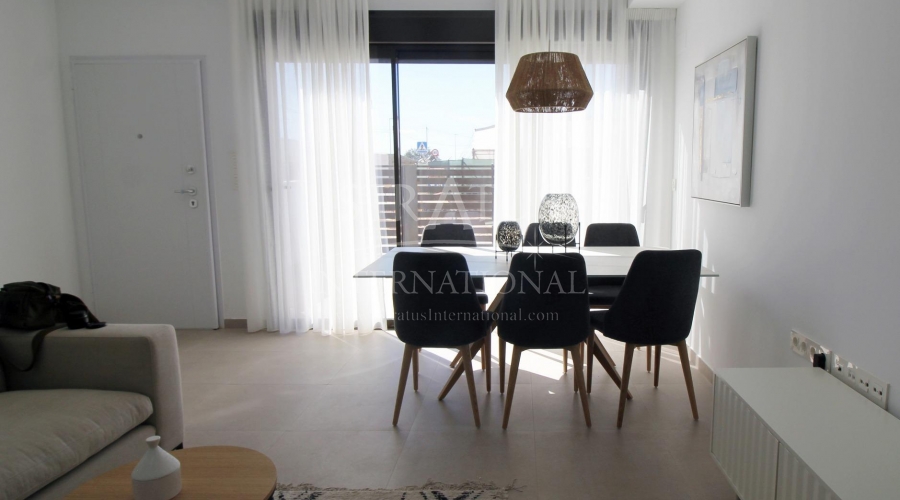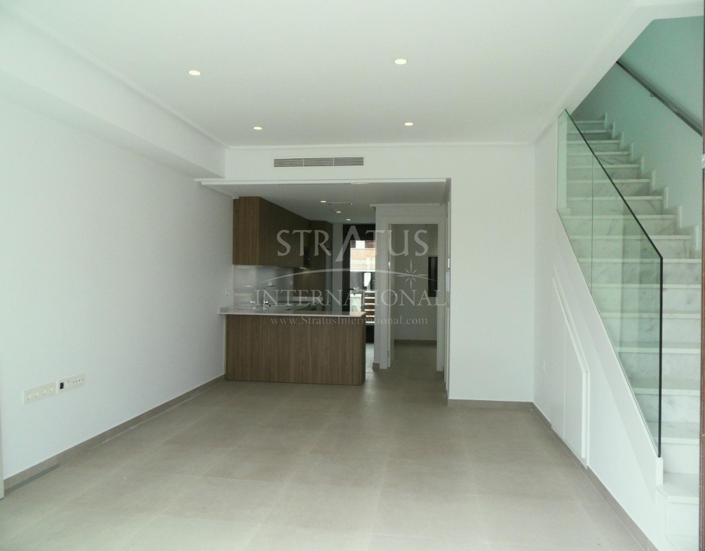 PAREADO DE OBRA NUEVA EN PILAR DE LA HORADADA Adosados y pareados modernos de nueva construcción en una zona tranquila de Pilar de la Horadada con proximidad a todo lo que necesitas. Viviendas tienen 3 dormitorios, 2 baños, cocina abierta, salón con acceso directo a la acogedora zona de la piscina, terraza en la parte trasera con plaza de aparcamiento, terraza y gran solarium en la azotea. Pilar de la Horadada es un típico pueblo español en la parte más meridional de la Costa Blanca. La gran calle principal tiene supermercados, muchas tiendas, restaurantes y bares y algunas plazas encantadoras. Las hermosas playas de Torre de la Horadada y Mil Palmeras con arena fina y paseo marítimo está a sólo 5 minutos. Los aeropuertos de Corvera (Murcia) y Alicante están a 40 y 55 minutos respectivamente.