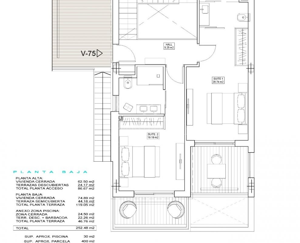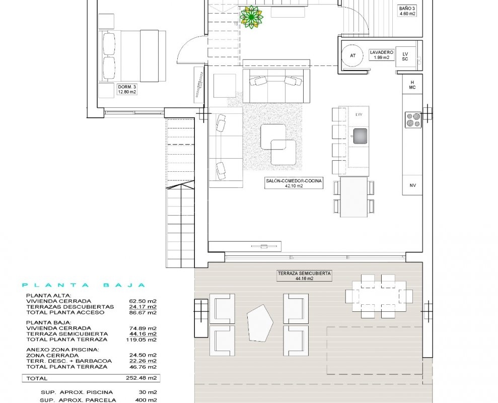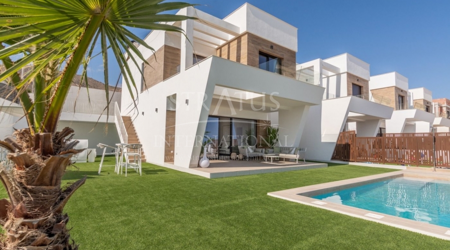 VILLAS DE OBRA NUEVA CON PISCINA PRIVADA Y CASA DE INVITADOS Nueva construcción de un exclusivo complejo residencial de villas ubicado en Finestrat cerca de las maravillosas playas de Benidorm. Nuevo modelo de hermosa villa con casa de invitados en la parcela. Hay 17 villas de este tipo a la venta. La villa está construida en dos plantas. En la planta baja, hay un luminoso salón, con grandes ventanales y acceso directo a la piscina y jardín, dormitorio y baño. En el primer piso, hay dos habitaciones tipo suite, con acceso a una terraza abierta. Se construye una casa de invitados en un nivel, que consta de un dormitorio y un baño, además de esto, hay una acogedora terraza con acceso a la villa principal, piscina y jardín. Residencial situado a 5 min en coche de todos los servicios que ofrece Benidorm y en un entorno con una temperatura media anual de 20ºC y 300 días de sol al año, a 44 km del aeropuerto de Alicante, a 3 km del mar y a 200 metros del golf.Especificaciones