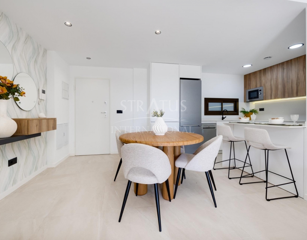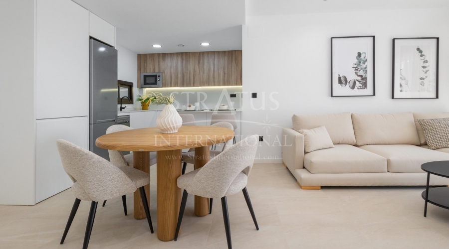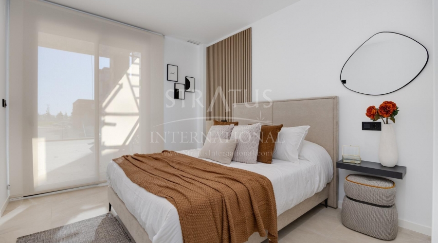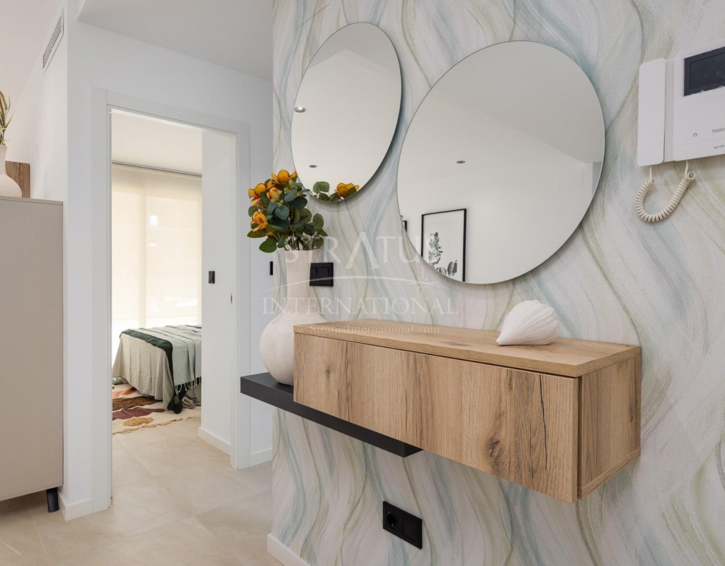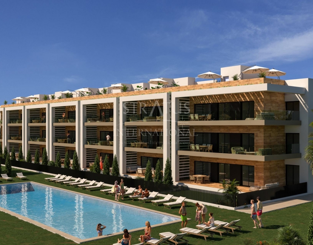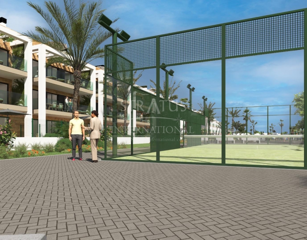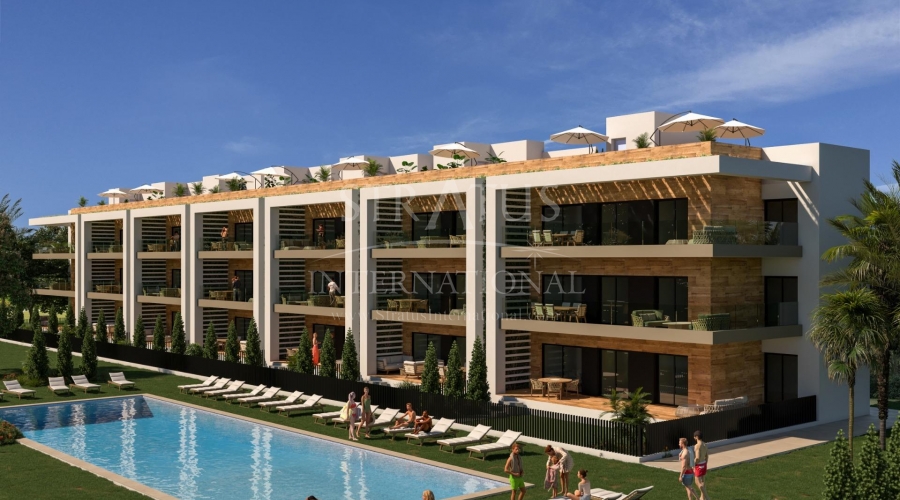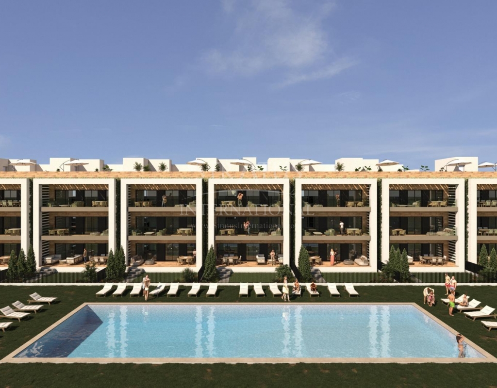 NUEVO COMPLEJO RESIDENCIAL CERCA DE LA SERENA GOLF, LOS ALCAZARES Este increíble complejo de obra nueva estará formado por 244 apartamentos de 2 y 3 dormitorios, divididos en 8 bloques y 20 Villas privadas. Apartamentos modernos en 3 plantas (planta baja más 2), planta baja con bonitos jardines, y algunos de ellos con piscina privada y segunda planta con bonitas terrazas y solariums privados. Apartamentos en esquina (4 por planta) y los de planta alta tienen 3 dormitorios y el resto 2 dormitorios. Viviendas orientadas al Este con vistas a las zonas comunes y al Oeste con maravillosas vistas al campo de golf. Complejo con piscina comunitaria y zonas comunes. Cada apartamento tiene su propia plaza de aparcamiento y trastero privado en el sótano, incluido en el precio. Residencial situado en primera línea del prestigioso campo de golf "La Serena Golf". Este campo de golf es muy conocido por sus lagos y vegetación que se entrelazan con el campo de golf. El agua y los lagos están presentes en 16 de los 18 hoyos, pero todo el recorrido está diseñado para ofrecer al golfista diferentes estrategias en cada hoyo. Otro aspecto que hace único a este campo de golf es que está conectado a pie con el centro de la ciudad, algo imposible de encontrar en otros lugares de golf que nos permiten disfrutar de la tranquilidad y la belleza de la zona sin renunciar al acceso a los servicios que ofrece Los Alcázares. Los Alcázares una zona excepcional en la Costa Cálida a tan sólo 25 minutos del aeropuerto de Murcia y 55 min del aeropuerto de Alicante. La zona está conectada a través de autovía con las ciudades de Cartagena, Murcia y Alicante y el resto de playas de la Costa Cálida y la Costa Blanca.