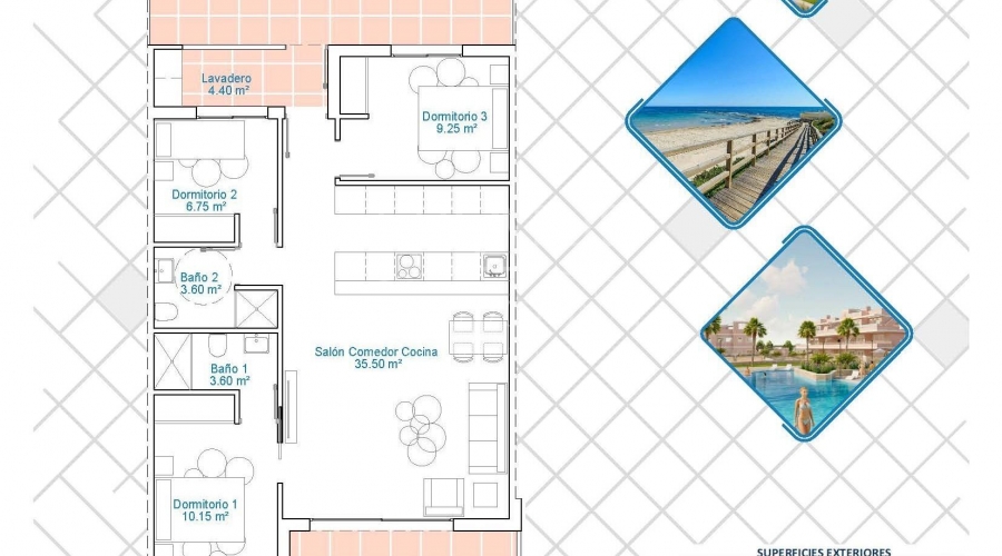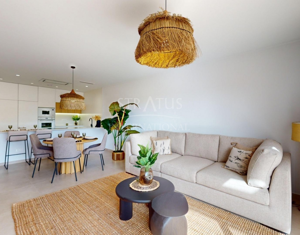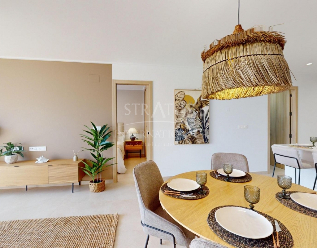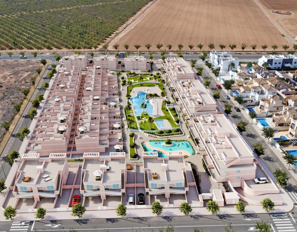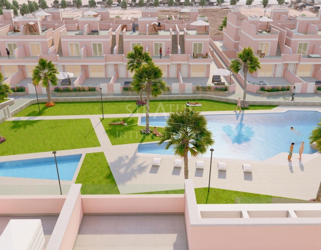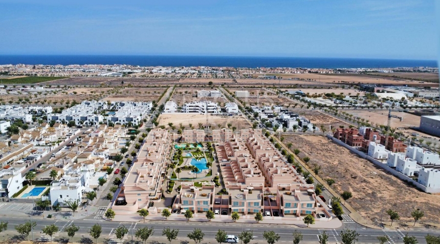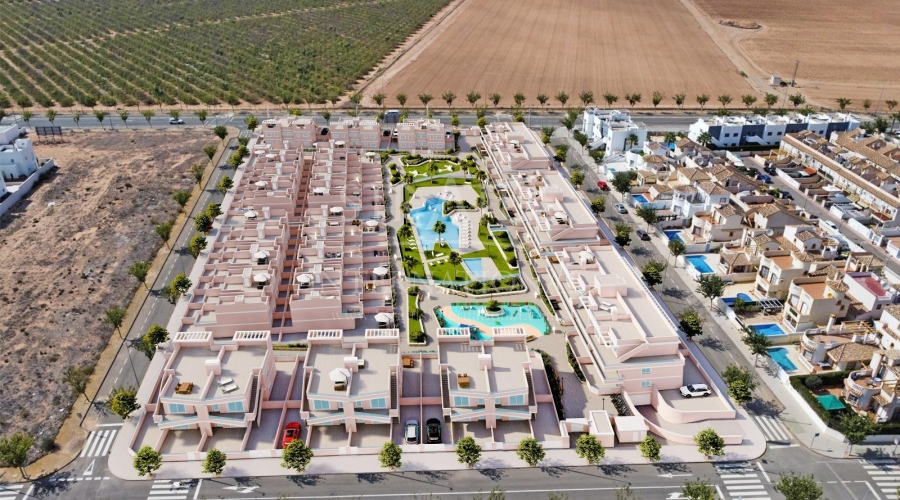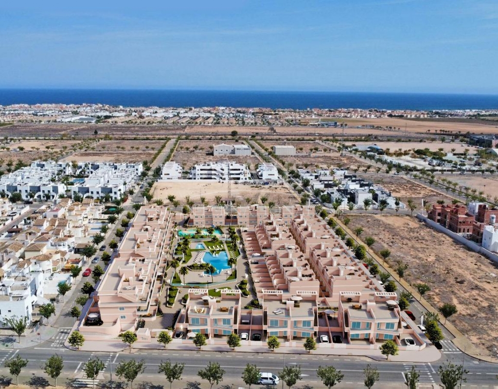 Exclusivo Residencial de Obra Nueva en Pilar de la Horadada, Costa Blanca Viviendas Modernas Cerca del Mar Descubra este nuevo complejo residencial en Pilar de la Horadada, una ubicación privilegiada en la Costa Blanca. A solo 2 km de la playa, este proyecto ofrece una amplia variedad de viviendas de 3 dormitorios y 2 baños, con aparcamiento privado incluido en el precio. El residencial cuenta con amplias zonas comunes, incluyendo una piscina comunitaria, jardines paisajísticos y una zona de juegos infantiles, ideales para el disfrute de toda la familia. Diferentes Tipologías para Adaptarse a su Estilo de Vida Esta promoción ofrece diversas opciones de vivienda: Plantas bajas con jardín privado. Apartamentos en planta intermedia con amplias terrazas. Áticos con solárium privado. Bungalows en planta baja con jardín privado. Bungalows en planta alta con jardín y solárium privado. Adosados y pareados con jardín y solárium. Todas las viviendas han sido diseñadas con un estilo moderno y funcional, utilizando materiales de alta calidad y acabados contemporáneos. Equipamiento y Calidades Las viviendas cuentan con: Preinstalación de aire acondicionado por conductos. Carpintería exterior de aluminio con rotura de puente térmico y doble acristalamiento. Puerta de acceso acorazada para mayor seguridad. Sistema de aerotermia para producción eficiente de agua caliente. Armarios empotrados con iluminación LED. Muebles de baño y mamparas incluidos. Pilar de la Horadada: Un Lugar Privilegiado para Vivir Pilar de la Horadada es un municipio costero en el extremo sur de la Costa Blanca, con un clima excepcional y una excelente calidad de vida. Su animada calle principal ofrece una amplia variedad de tiendas, supermercados, restaurantes y servicios esenciales. A solo 5 minutos en coche, encontrará las impresionantes playas de Torre de la Horadada y Mil Palmeras, con arena dorada y un encantador paseo marítimo. Además, la zona cuenta con carriles bici, rutas de senderismo y múltiples actividades deportivas. Distancias a Puntos Clave Campo de golf Lo Romero – 5 km (10 minutos en coche). Aeropuerto de Corvera (Murcia) – 40 km (40 minutos en coche). Aeropuerto de Alicante – 55 km (55 minutos en coche). Centro Comercial Zenia Boulevard – 15 km (15 minutos en coche). Puerto Deportivo Torre de la Horadada – 3 km (5 minutos en coche). Solicite Más Información Hoy Mismo No deje pasar esta oportunidad de adquirir una vivienda de obra nueva en una de las mejores zonas de la Costa Blanca. Contáctenos ahora para recibir más detalles y concertar una visita.