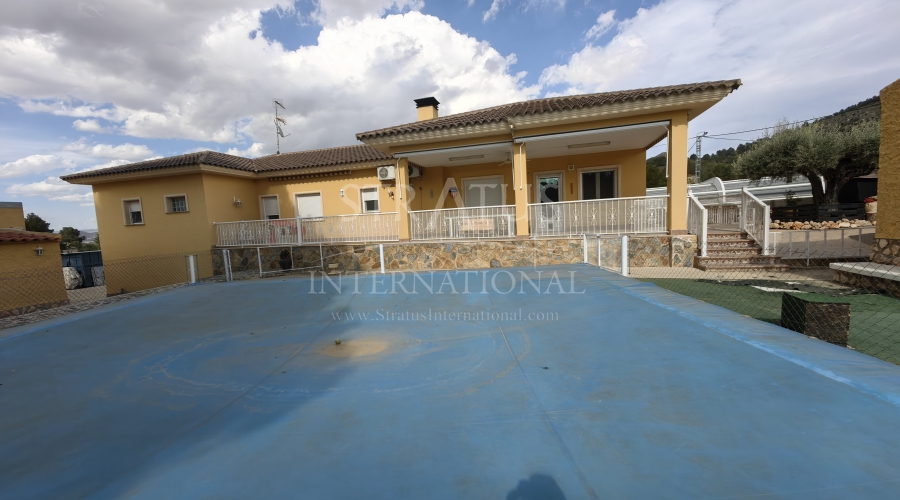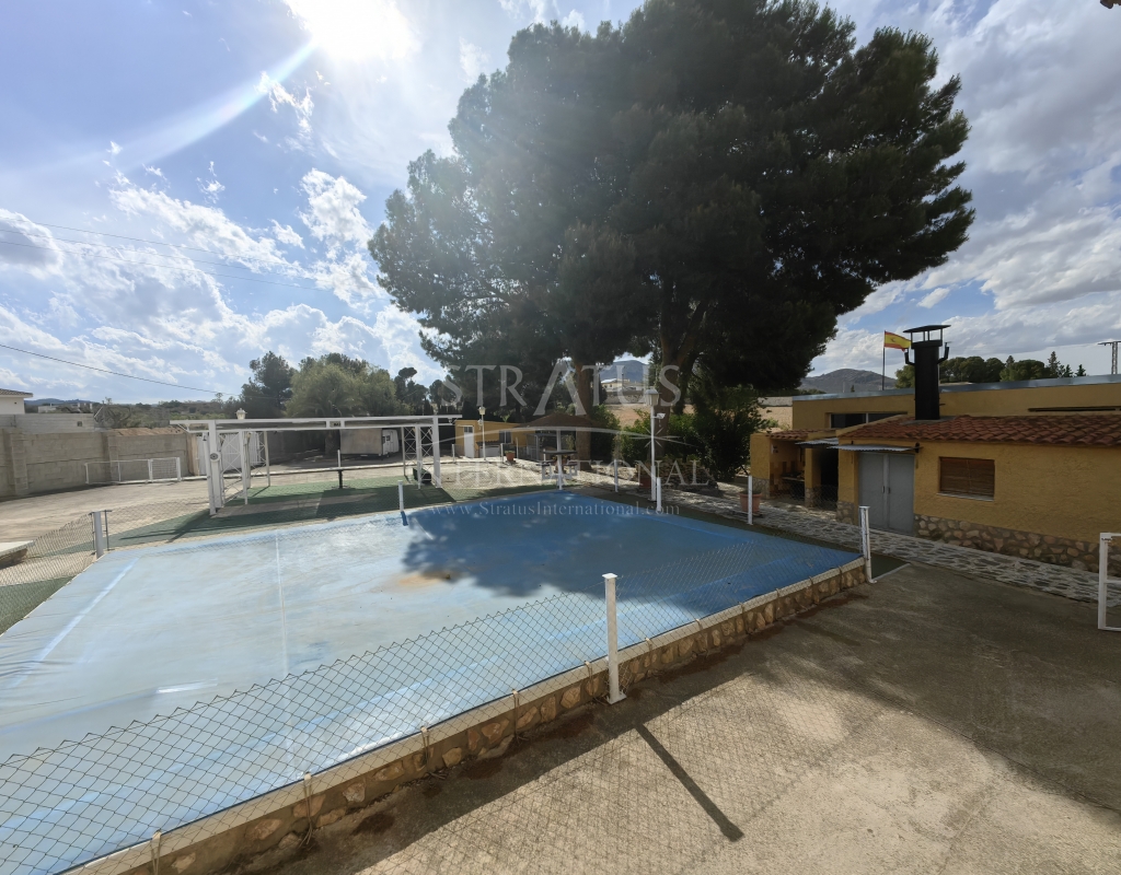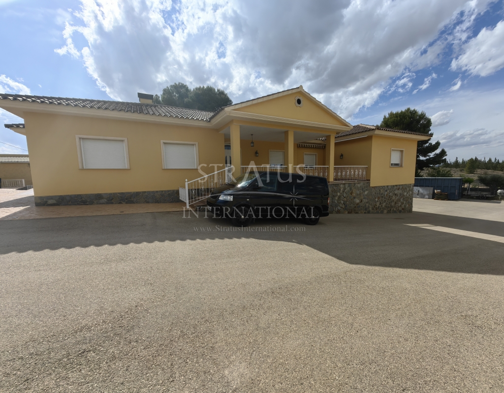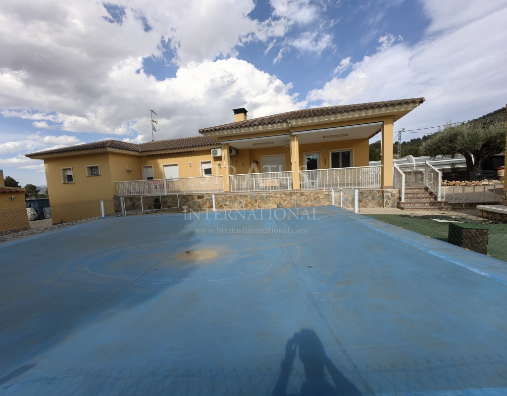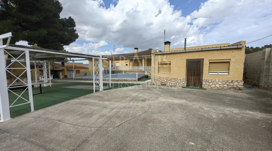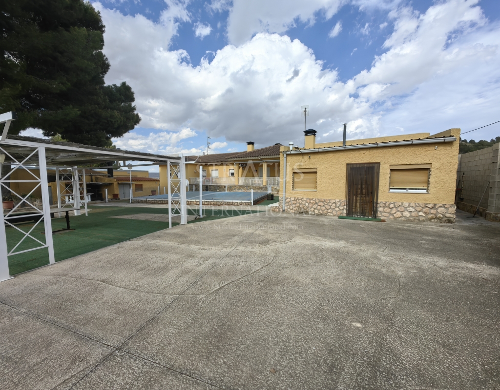 Maravillosos chalet a solo 3 minutos de Yecla con el coche, completamente privado en una parcela de 5.900 m2. La propiedad cuenta con 465 m2 construidos en su totalidad, incluyendo dos naves, casa de invitados, garaje y una maravillosa barbacoa. Se trata de una propiedad de lujo con todo lo necesario para disfrutar del maximo confort. La propiedad dispone en su casa principal de 5 habitaciones, salón espacioso, cocina completa, 3 baños, lavadero y garaje conectado con un ascensor. En la parte de delante dispone de una maravillosa marquesina con vistas a una bonita piscina y una maravillosa barbacoa. Justo al lado dispone de una casa para invitados con una pequeña cocina-salon, baño y habitacion. Tambien dispone en su exterior con una pergola para dos coches. La propiedad se vende completamente amueblada y se encuentra en perfecto estado de conservación. Una maravillosa oportunidad.Distancias