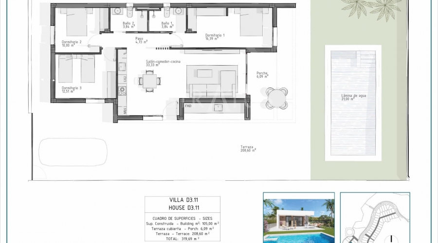 Villas de nueva construcción en Vera Playa, Almería: viviendas modernas cerca del mar Vida contemporánea en Pueblo Salinas, a solo 2 km de la playa Presentamos una impresionante nueva promoción residencial situada en la codiciada zona de Vera Playa, dentro de la exclusiva urbanización Pueblo Salinas. Este moderno complejo ofrece un estilo de vida privilegiado a solo 2 km de las playas de Vera (Almería), con espectaculares vistas al mar y un tranquilo entorno mediterráneo ideal para vivir todo el año o disfrutar de las vacaciones. Viviendas elegantes con comodidad y estilo modernos Esta nueva fase consta de 17 villas de alta calidad pudiendo elegir entre viviendas de 3 o 4 dormitorios y 2 o 3 baños completos en una planta para mayor comodidad. Con piscina privada con bomba de calor, y zona de aparcamiento en parcela que disponen de preinstalación de punto de carga eléctrica para vehículo, ofreciendo el máximo confort en una ubicación inmejorable, ideal para disfrutar del sol, la playa y la calidad de vida del Mediterráneo durante todo el año. Algunas de estas viviendas cuentan con sótano (brindando así un espacio adicional que se adapta a sus necesidades y estilo de vida) y/o solárium privado en azotea con cocina de verano y zona de pérgola con la colocación de placas solares. Las villas cuentan con interiores elegantes y funcionales, disponen de cocinas totalmente equipadas con todos los electrodomésticos, y además, incluyen preinstalación de climatización por conductos. Todas las viviendas cuentan con: Cocinas abiertas totalmente equipadas con frigorífico integrado, lavavajillas, placa de inducción, horno, microondas y campana extractora Espacios diáfanos y luminosos con iluminación LED en toda la vivienda (excepto en los dormitorios) Persianas motorizadas en los dormitorios Baños con acabados modernos, incluyendo calefactores para toallas, platos de ducha con mamparas de cristal y muebles empotrados Preinstalación de aire acondicionado por conductos Sistema aerotérmico para una producción eficiente de agua caliente Puerta de entrada de seguridad Ubicación privilegiada con excelentes conexiones Vera Playa es un popular destino costero conocido por sus amplias playas de arena y su estilo de vida relajado. La ubicación de la urbanización ofrece fácil acceso a los servicios y atracciones esenciales: Playa: 2 km Desert Springs Golf Resort: 8 km Centro de Vera: 5 km Puerto deportivo y restaurantes de Garrucha: 6 km Parque Comercial Mojácar: 10 km Aeropuerto de Almería: 85 km (1 hora en coche) Haga de Vera Playa su nuevo hogar Tanto si busca una residencia permanente, un refugio para las vacaciones o una inversión inteligente, estas villas de nueva construcción ofrecen un valor inigualable en una de las zonas más deseadas de la Costa de Almería. Póngase en contacto con nosotros hoy mismo para obtener más información y programar su visita.Especificaciones