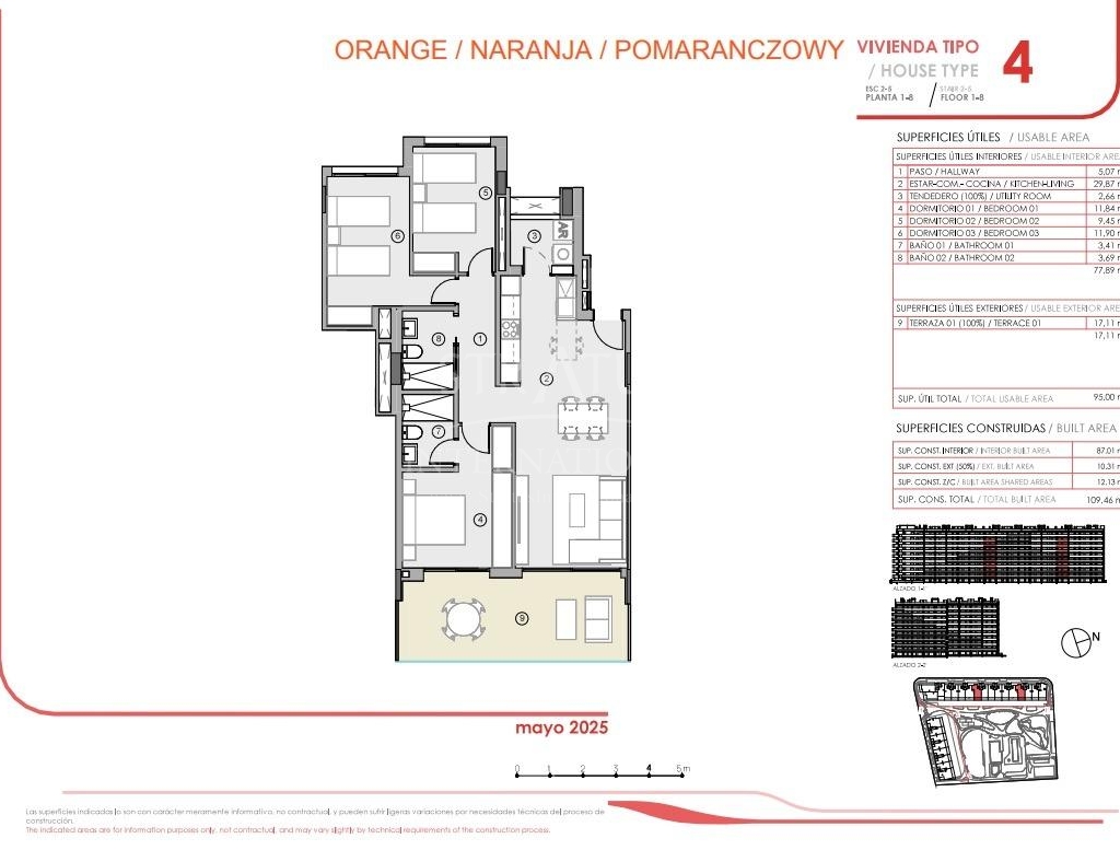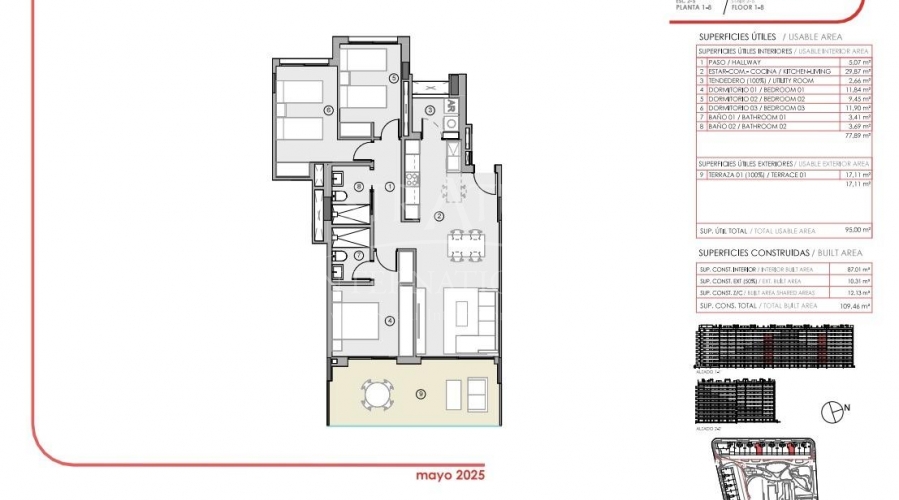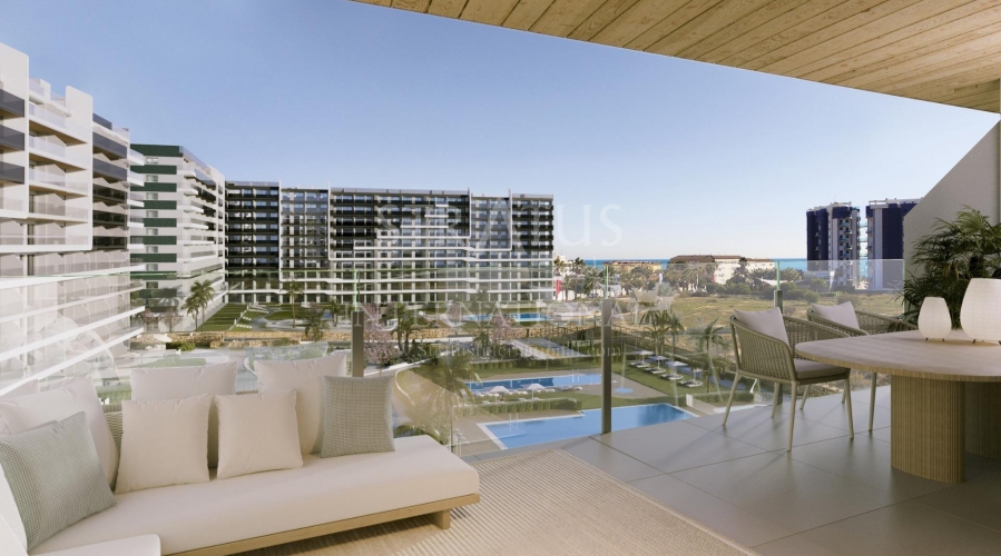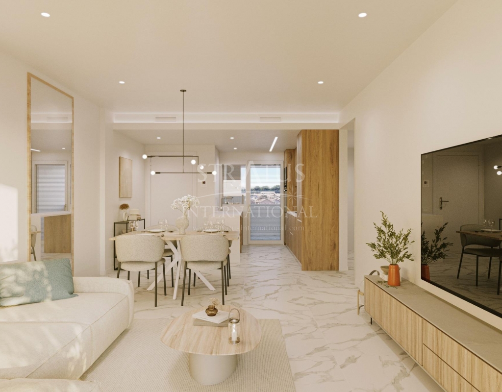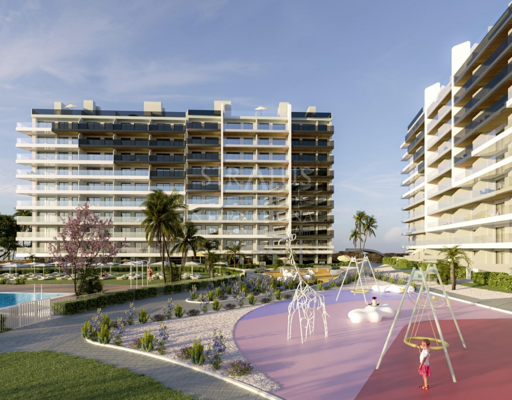 Apartamentos de Obra Nueva en Punta Prima a Solo 250 Metros del Mar Exclusivo complejo residencial con zonas comunes premium en la Costa Blanca Presentamos un moderno complejo residencial de obra nueva compuesto por 250 apartamentos en Punta Prima, una de las zonas más demandadas de Torrevieja. Ubicado a tan solo 250 metros del mar, este proyecto ofrece una oportunidad única de vivir cerca de la playa con todas las comodidades de un resort privado. Viviendas de 2 y 3 dormitorios con amplias terrazas Los apartamentos están disponibles en configuraciones de 2 o 3 dormitorios y 2 baños, todos con cocina americana integrada al salón, lo que maximiza la sensación de amplitud y luz natural. Las viviendas en planta baja disponen de jardín privado, los pisos intermedios ofrecen grandes terrazas, y los áticos cuentan con solárium para disfrutar del sol durante todo el año. Cada unidad incluye una plaza de garaje y trastero, lo que garantiza comodidad y espacio adicional para almacenamiento. Zonas comunes para toda la familia El residencial ha sido diseñado para ofrecer una calidad de vida excepcional. Entre sus zonas comunes destacan tres piscinas (una de ellas climatizada), gimnasio con jacuzzi, pista de pádel, petanca y jardines ajardinados. Los más pequeños disponen de su propia piscina infantil y un área de juegos pensada para su entretenimiento seguro. Acabados de alta calidad y eficiencia energética Carpintería exterior de PVC con rotura de puente térmico Doble acristalamiento y persianas motorizadas en dormitorios Cocina amueblada con electrodomésticos incluidos Baños equipados con mampara, mueble, espejo y suelo radiante Sistema de climatización mediante bomba de calor aerotérmica Puerta de entrada acorazada Aparcamiento para bicicletas Ubicación estratégica con servicios cercanos Punta Prima se sitúa a solo 5 km del centro de Torrevieja y cuenta con excelentes infraestructuras sanitarias, educativas y de transporte. El Aeropuerto Internacional de Alicante está a solo 45 km. Playa de Punta Prima: 250 m Campo de Golf Villamartín: 7 km Centro Comercial La Zenia Boulevard: 4 km Hospital Universitario de Torrevieja: 3 km Puerto deportivo de Torrevieja: 6 km Una inversión ideal para residencia o vacaciones Disfrute de un entorno mediterráneo con servicios abiertos todo el año, playas de calidad y excelente conectividad. No pierda la oportunidad de adquirir su nuevo hogar en uno de los enclaves más cotizados de la Costa Blanca. Contacte hoy mismo para más información o concertar una visita.Extras