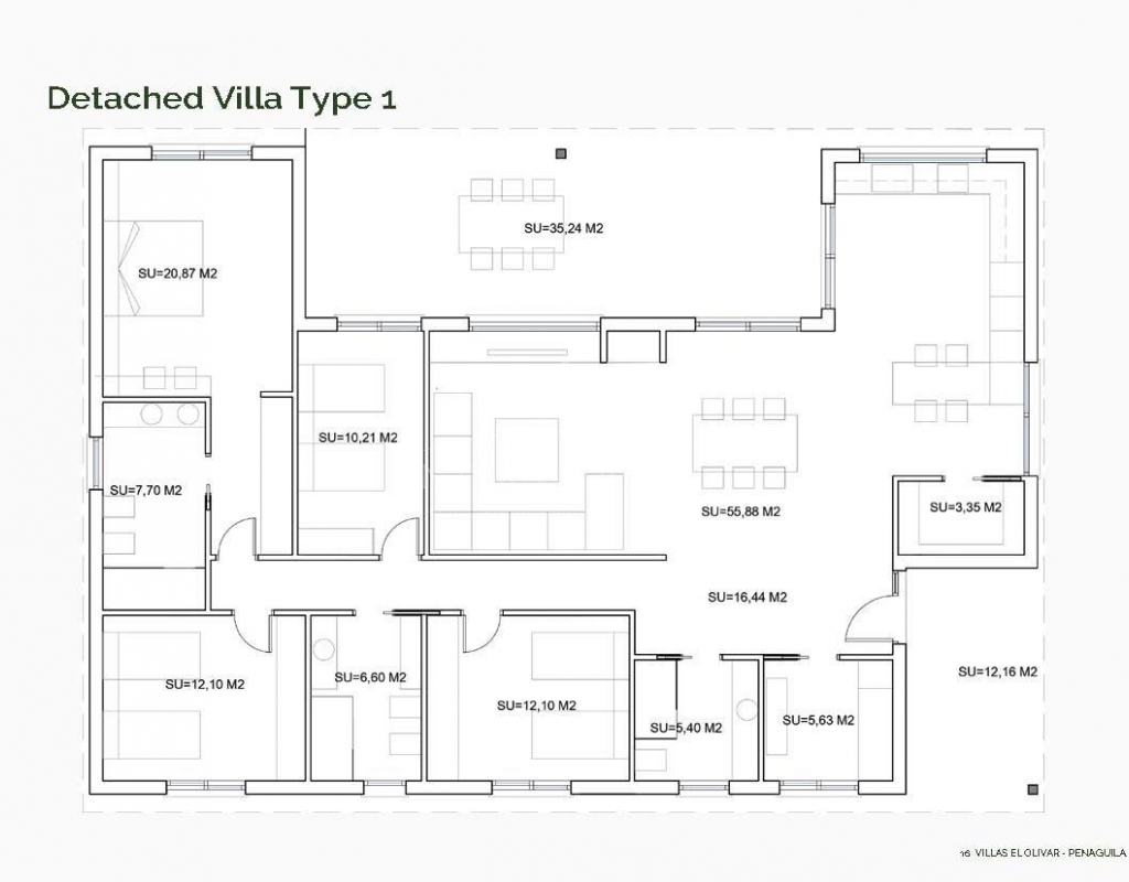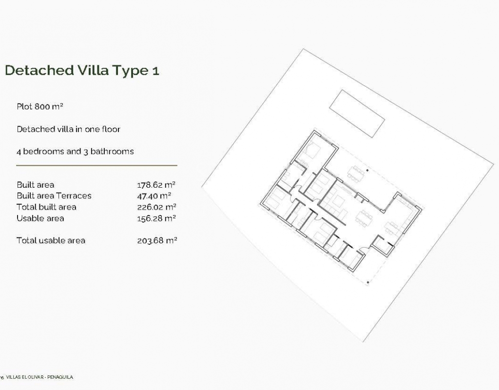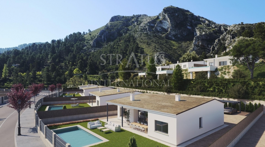Villas de nueva construcción en Penáguila: tranquilidad y naturaleza en el corazón de la Sierra de Aitana, Alicante Descubra una oportunidad excepcional para vivir rodeado de naturaleza en un entorno tranquilo con impresionantes vistas a la montaña. Esta nueva promoción de 35 villas de una sola planta se encuentra junto al encantador pueblo de Penáguila, enclavado en el corazón de la Sierra de Aitana, en Alicante. Con generosas parcelas de 800 m², estas viviendas ofrecen privacidad, comodidad y contacto directo con el entorno natural. Viviendas amplias con distribuciones personalizadas Cada villa se encuentra en una parcela privada de 800 m² y está distribuida en una sola planta, lo que ofrece el máximo confort y accesibilidad. Elija entre 5 distribuciones diferentes con 3 o 4 dormitorios, 2 o 3 baños y superficies construidas que van desde los 130 hasta los 178 m². Todas las viviendas cuentan con amplias terrazas cubiertas, ideales para disfrutar del aire libre durante todo el año. Esta promoción es perfecta para familias, jubilados o cualquier persona que busque una primera o segunda residencia en un entorno tranquilo y saludable, pero cerca de los servicios esenciales. Acabados de alta calidad y sistemas sostenibles Las villas están construidas con materiales de primera calidad y modernas instalaciones de bajo consumo, entre las que se incluyen: Carpintería exterior de PVC con doble acristalamiento y persianas eléctricas. Calefacción por suelo radiante mediante sistema aerotérmico. Agua caliente sanitaria también alimentada por energía aerotérmica. Aparcamiento cubierto con pérgola metálica y paneles solares fotovoltaicos. Cocinas totalmente equipadas con armarios altos y bajos. Este enfoque en la sostenibilidad no solo mejora el confort, sino que también reduce los costes energéticos a largo plazo. Una ubicación privilegiada entre la montaña y la costa Situadas a pocos minutos del centro de Penáguila, un pintoresco pueblo conocido por su ambiente tranquilo y su encanto tradicional, estas villas gozan de una ubicación perfecta entre la serenidad de la montaña y la comodidad de la costa. Distancias a los principales puntos de interés: Alcoy: 20 km Benidorm: 38 km Ciudad de Alicante: 52 km Aeropuerto de Alicante: 60 km Campo de golf más cercano (Alenda Golf): 45 km Playas de Villajoyosa y Benidorm: aproximadamente 45 km Esta ubicación ofrece un excelente acceso tanto al interior como a la costa, lo que la hace ideal para los amantes de la naturaleza que aún desean estar cerca de los servicios urbanos y los centros turísticos de playa. Reserve la villa de sus sueños en la Sierra de Aitana Ya hay dos villas en construcción y se entregarán en solo 4 meses. Las unidades restantes están disponibles con un plazo de entrega de 12 meses desde la reserva. Póngase en contacto con nosotros hoy mismo para obtener más información y asegurarse su nuevo hogar en Penáguila, donde el confort se une a la naturaleza.Especificaciones