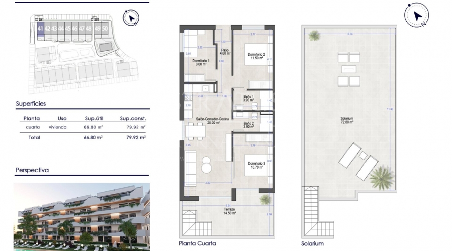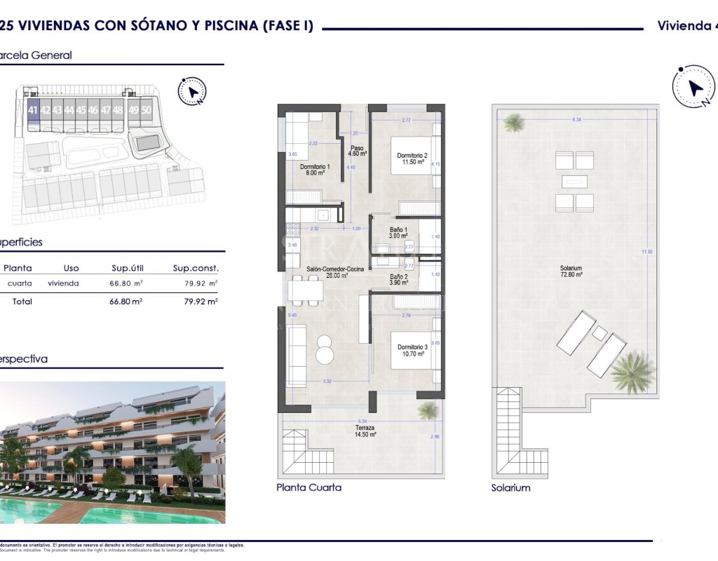 Apartamentos turísticos de nueva construcción en Santiago de la Ribera, San Javier, a solo 750 m de la playa Exclusiva promoción en la Costa Cálida Este exclusivo complejo residencial de 125 apartamentos turísticos se encuentra en Santiago de la Ribera (San Javier), una encantadora localidad costera de la Costa Cálida, famosa por sus hermosas playas de arena, su relajado estilo de vida mediterráneo y su excelente clima durante todo el año. Con el Mar Menor a solo 750 metros, estas viviendas ofrecen la combinación perfecta de comodidad, estilo y proximidad al mar. Apartamentos modernos con múltiples opciones La promoción ofrece amplios apartamentos de 3 dormitorios y 2 baños, incluyendo un dormitorio principal con baño en suite. Los compradores pueden elegir entre: Viviendas en planta baja con jardín privado Apartamentos en plantas intermedias con amplias terrazas Áticos con solárium privado Cada vivienda está diseñada para maximizar la luz natural y la vida al aire libre. Las características incluyen cocinas totalmente equipadas y amuebladas con electrodomésticos, iluminación interior y exterior, baños con muebles y mamparas de ducha. Todas las propiedades cuentan con una plaza de aparcamiento en superficie, mientras que el aparcamiento subterráneo y los trasteros están disponibles con un coste adicional. Servicios y comodidades de primera calidad Los propietarios disfrutarán de un edificio moderno equipado con ascensores, dos piscinas comunitarias y hermosos jardines. Las viviendas incluyen la preinstalación de aire acondicionado por conductos para disfrutar de comodidad durante todo el año. Una oportunidad de inversión inteligente Estos apartamentos cuentan con licencia turística ya concedida, lo que los convierte en una excelente inversión para alquileres vacacionales. Los propietarios pueden generar ingresos mediante alquileres a corto plazo, al tiempo que disfrutan de la propiedad para sus propias vacaciones familiares. Tenga en cuenta que estas residencias están destinadas a uso vacacional y no pueden utilizarse como viviendas permanentes. Ubicación privilegiada en San Javier La promoción está estratégicamente situada cerca de todos los servicios esenciales y actividades de ocio. Distancias a los principales puntos de interés: Playa del Mar Menor: 750 m Centro comercial La Ribera: 2 km Centro comercial Dos Mares: 3 km Roda Golf: 5 km Puerto deportivo de Lo Pagán: 4 km Aeropuerto de Murcia (Corvera): 40 km Cartagena: 30 km Ciudad de Murcia: 40 km Haga realidad su sueño costero Este nuevo proyecto de construcción en Santiago de la Ribera representa una oportunidad única para disfrutar del estilo de vida mediterráneo y, al mismo tiempo, realizar una inteligente inversión en alquiler. Póngase en contacto con nosotros hoy mismo para obtener más detalles o concertar una visita a estos modernos apartamentos turísticos a pocos pasos del Mar Menor.Especificaciones