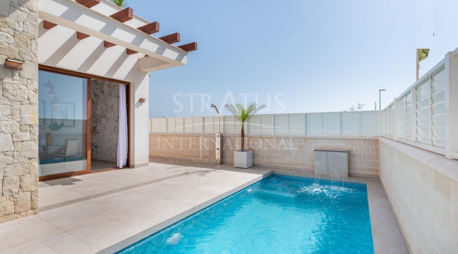 Residencial de obra nueva de bonitos chalets situados en la Costa de Almería, Vera. Residencial de obra nueva de chalets independientes a elegir entre dos modelos: de doble altura, con 3 dormitorios y tres baños y de 2/3 dormitorios con dos baños, todo en una planta. Ambos con piscina de 6x3 metros y sobre una parcela de 230 metros aproximadamente. Como opción, todas las villas pueden disponer de espacio en el sótano con un coste adicional. Chalets situados a tan sólo 200 metros de la playa de Vera. Vera es uno de los mejores lugares naturistas de Europa, reconocido por la calidad y pureza de sus aguas. Ofrece seis kilómetros de playas (Las Marinas-Bolaga, Puerto Rey, El Playazo, Quitapellejos). Vera limita con los famosos destinos turísticos como Mojácar y las Cuevas del Almanzora. Complejo residencial situado a una hora y media en coche del aeropuerto de Murcia - Corvera y a unas 2 horas del aeropuerto de Alicante.Especificaciones