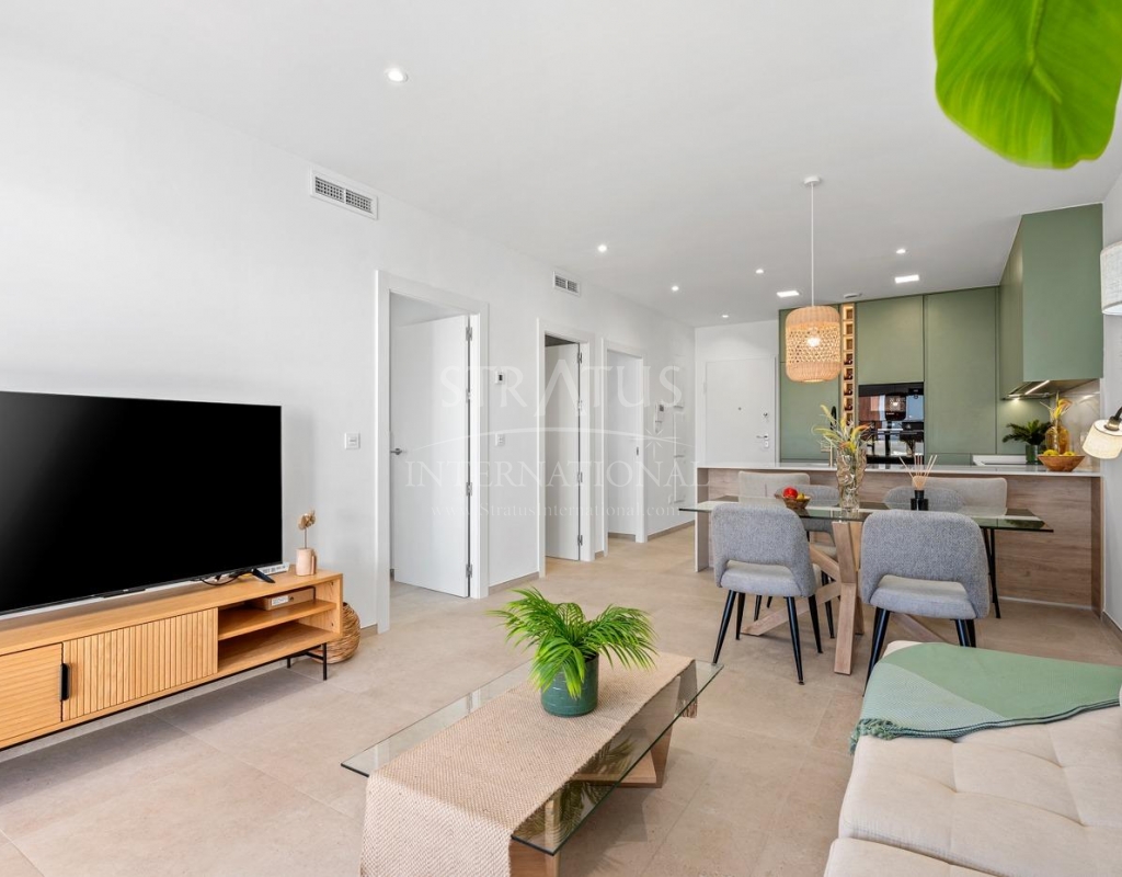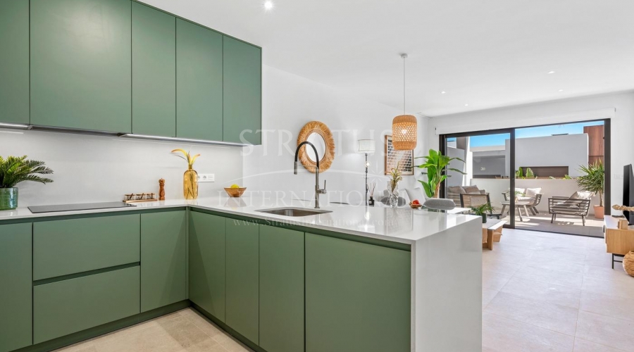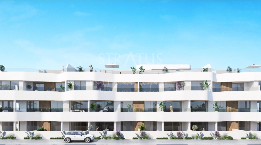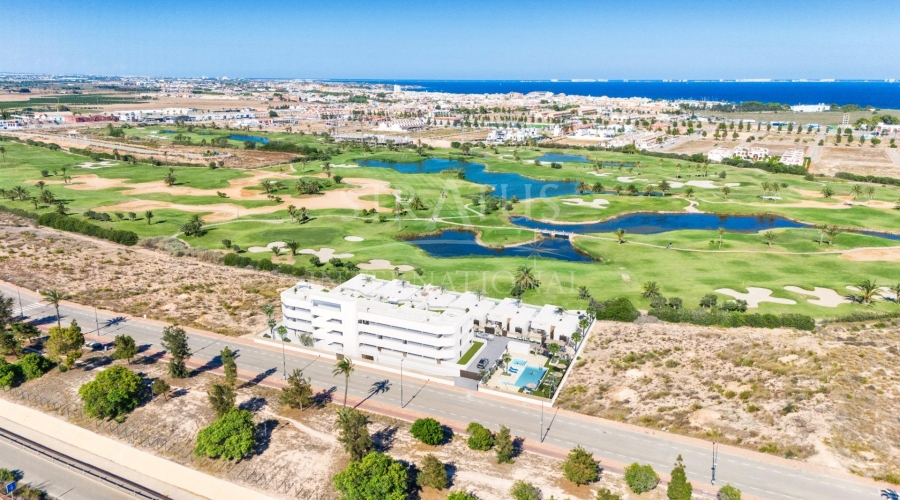 Complejo residencial de nueva construcción en Los Alcázares Viviendas exclusivas en la Costa Cálida Este nuevo complejo residencial en Los Alcázares ofrece una oportunidad única para disfrutar de una vida moderna en una de las zonas más deseadas de la Costa Cálida. A solo 1,2 km de la playa y situado en primera línea del prestigioso campo de golf La Serena, esta promoción combina a la perfección el estilo de vida costero con la tranquilidad del entorno golfístico. El encantador centro de Los Alcázares se encuentra a poca distancia, lo que permite acceder fácilmente a tiendas, restaurantes y todos los servicios esenciales. Apartamentos modernos y villas exclusivas La promoción consta de 13 apartamentos contemporáneos de 2, 3 o 4 dormitorios y 4 villas exclusivas de 3 dormitorios. Los compradores pueden elegir entre apartamentos en planta baja o en planta intermedia con amplias terrazas, o áticos con soláriums privados. Todas las propiedades incluyen una plaza de aparcamiento privada y un trastero en el garaje subterráneo, accesible por ascensor. Características de alta calidad Todas las viviendas han sido diseñadas con acabados modernos y pensando en el máximo confort. Las características principales incluyen: Baños totalmente equipados con muebles y mamparas de ducha Preinstalación de aire acondicionado por conductos Persianas motorizadas en los dormitorios Estos detalles garantizan que cada propiedad sea práctica, elegante y esté preparada para adaptarse a una gran variedad de estilos de vida. Una ubicación privilegiada con excelentes conexiones Los Alcázares goza de una ubicación estratégica tanto para el ocio como para la comodidad. La zona ofrece acceso directo a las principales autopistas y está bien comunicada con las ciudades y aeropuertos cercanos: Playas del Mar Menor: 1,2 km Club de golf La Serena: adyacente al complejo Cartagena: 20 km Aeropuerto de Murcia: 25 minutos Aeropuerto de Alicante: 55 minutos Varios campos de golf en un radio de 10 a 20 km Estilo de vida junto al mar y el golf Vivir en Los Alcázares significa disfrutar de lo mejor del estilo de vida mediterráneo. El cercano Mar Menor, la laguna de agua salada más grande de Europa, ofrece aguas cálidas y poco profundas, ideales para nadar, navegar y practicar una amplia variedad de deportes acuáticos. Los amantes del golf apreciarán el acceso directo a La Serena Golf, famoso por su desafiante diseño con obstáculos de agua en 16 de sus 18 hoyos. Su hogar mediterráneo le espera Tanto si busca una residencia permanente, un refugio vacacional o una oportunidad de inversión, esta nueva promoción en Los Alcázares ofrece el equilibrio perfecto entre comodidad moderna, belleza natural y una ubicación excelente. Póngase en contacto con nosotros hoy mismo para concertar una visita y asegurarse la casa de sus sueños en la Costa Cálida.Especificaciones