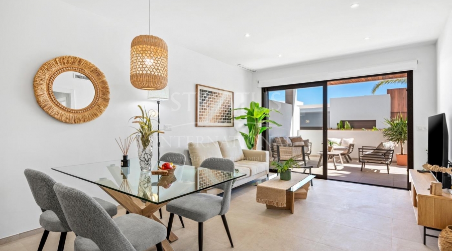 Complejo residencial de nueva construcción en Los Alcázares Viviendas exclusivas en la Costa Cálida Este nuevo complejo residencial en Los Alcázares ofrece una oportunidad única para disfrutar de una vida moderna en una de las zonas más deseadas de la Costa Cálida. A solo 1,2 km de la playa y situado en primera línea del prestigioso campo de golf La Serena, esta promoción combina a la perfección el estilo de vida costero con la tranquilidad del entorno golfístico. El encantador centro de Los Alcázares se encuentra a poca distancia, lo que permite acceder fácilmente a tiendas, restaurantes y todos los servicios esenciales. Apartamentos modernos y villas exclusivas La promoción consta de 13 apartamentos contemporáneos de 2, 3 o 4 dormitorios y 4 villas exclusivas de 3 dormitorios. Los compradores pueden elegir entre apartamentos en planta baja o en planta intermedia con amplias terrazas, o áticos con soláriums privados. Todas las propiedades incluyen una plaza de aparcamiento privada y un trastero en el garaje subterráneo, accesible por ascensor. Características de alta calidad Todas las viviendas han sido diseñadas con acabados modernos y pensando en el máximo confort. Las características principales incluyen: Baños totalmente equipados con muebles y mamparas de ducha Preinstalación de aire acondicionado por conductos Persianas motorizadas en los dormitorios Estos detalles garantizan que cada propiedad sea práctica, elegante y esté preparada para adaptarse a una gran variedad de estilos de vida. Una ubicación privilegiada con excelentes conexiones Los Alcázares goza de una ubicación estratégica tanto para el ocio como para la comodidad. La zona ofrece acceso directo a las principales autopistas y está bien comunicada con las ciudades y aeropuertos cercanos: Playas del Mar Menor: 1,2 km Club de golf La Serena: adyacente al complejo Cartagena: 20 km Aeropuerto de Murcia: 25 minutos Aeropuerto de Alicante: 55 minutos Varios campos de golf en un radio de 10 a 20 km Estilo de vida junto al mar y el golf Vivir en Los Alcázares significa disfrutar de lo mejor del estilo de vida mediterráneo. El cercano Mar Menor, la laguna de agua salada más grande de Europa, ofrece aguas cálidas y poco profundas, ideales para nadar, navegar y practicar una amplia variedad de deportes acuáticos. Los amantes del golf apreciarán el acceso directo a La Serena Golf, famoso por su desafiante diseño con obstáculos de agua en 16 de sus 18 hoyos. Su hogar mediterráneo le espera Tanto si busca una residencia permanente, un refugio vacacional o una oportunidad de inversión, esta nueva promoción en Los Alcázares ofrece el equilibrio perfecto entre comodidad moderna, belleza natural y una ubicación excelente. Póngase en contacto con nosotros hoy mismo para concertar una visita y asegurarse la casa de sus sueños en la Costa Cálida.Especificaciones
