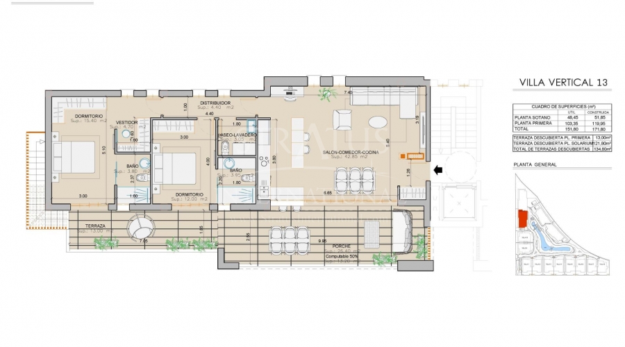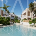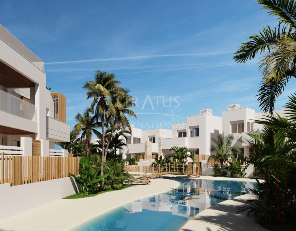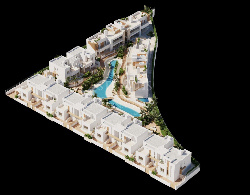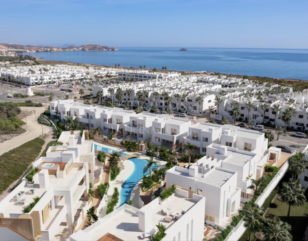 Villas y bungalows de nueva construcción a solo 250 metros de la playa en Mar de Pulpí Exclusivo proyecto residencial con villas y bungalows cerca del mar Descubra una excepcional promoción nueva situada a solo 250 metros de la playa de La Entrevista, en Mar de Pulpí, Almería. Este exclusivo complejo residencial ofrece dos opciones de vivienda diferenciadas: 10 villas independientes y 8 bungalows, cada uno de ellos diseñado para ofrecer amplios interiores y zonas exteriores de gran calidad. Situado en una de las zonas más tranquilas y pintorescas de la Costa de Almería, este proyecto es ideal para quienes buscan una vivienda moderna y confortable cerca del mar, rodeada de belleza natural y con todos los servicios esenciales. Villas de lujo con garajes subterráneos y terrazas privadas Las villas cuentan con tres amplios dormitorios, cada uno con su propio cuarto de baño en suite. En la planta baja se encuentra un generoso dormitorio, mientras que la planta superior incluye dos dormitorios más con acceso a terrazas privadas. El garaje subterráneo, conectado directamente a la villa, ofrece espacio para al menos dos vehículos y bicicletas, con iluminación y ventilación naturales, además de un generoso espacio de almacenamiento. Elegante bungalows con jardines privados o soláriums Elija entre bungalows en planta baja con jardines privados u opciones en la planta superior con soláriums privados. Cada bungalow incluye dos dormitorios, dos baños y una piscina privada o jacuzzi. También cuentan con ascensores, lo que mejora la accesibilidad y el confort. Los dormitorios principales incluyen vestidores y amplios armarios empotrados, mientras que las amplias terrazas con zona de bar hacen que el entretenimiento y el relax sean un placer. Confort, estilo y características premium Todas las viviendas de la promoción están equipadas con: Ventanas de doble acristalamiento con protección solar y rotura de puente térmico Calefacción eléctrica por suelo radiante en todos los baños Aire acondicionado (frío y calor) Persianas motorizadas Baños modernos con muebles suspendidos, espejos y mamparas de ducha Producción de agua caliente con sistemas aerotérmicos de bajo consumo La comunidad residencial también cuenta con una piscina comunitaria de varios niveles, que ofrece un espacio compartido para el descanso y el disfrute. Ubicación privilegiada en la Costa de Almería Situado a solo 250 m de la playa de arena y a solo 3 km de San Juan de los Terreros, los residentes pueden disfrutar de una amplia gama de servicios, como supermercados, restaurantes, tiendas y servicios esenciales. Distancias a puntos de interés: Playas de La Entrevista: 0,25 km San Juan de los Terreros: 3 km Campo de golf El Aguilón: 7 km Centro de Águilas y puerto deportivo: 12 km Aeropuerto de Murcia-Corvera: 95 km Aeropuerto de Almería: 115 km Asegúrese la casa de sus sueños junto al mar Tanto si elige una villa como un bungalow, esta urbanización ofrece una combinación perfecta de calidad, ubicación y estilo de vida. Póngase en contacto con nosotros hoy mismo para obtener más información o concertar una visita: su casa ideal en la costa le espera en Mar de Pulpí.