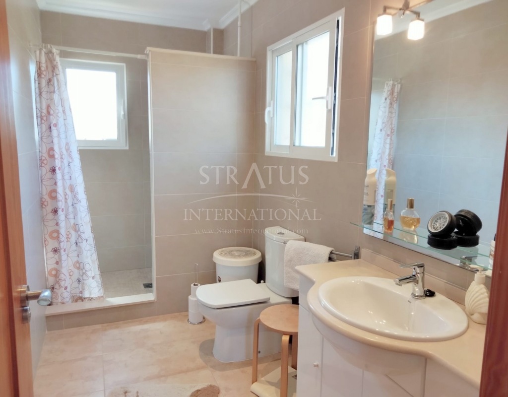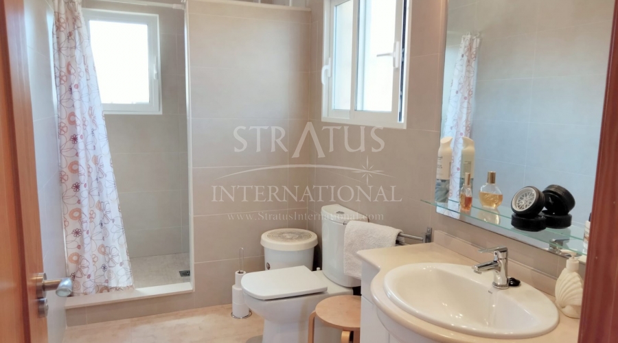 En el interior, encontrará una cocina bellamente diseñada y totalmente equipada, así como baños modernos y contemporáneos que brindan la máxima comodidad y conveniencia. El diseño de la casa es magnífico, ofreciendo un solárium donde podrá disfrutar de la belleza de las increíbles vistas. Cada aspecto de esta propiedad es de la más alta calidad, lo que garantiza que disfrutará de un estilo de vida cómodo y lujoso.