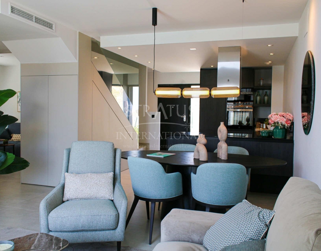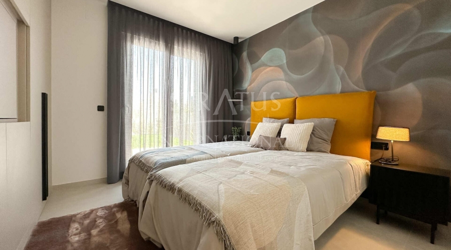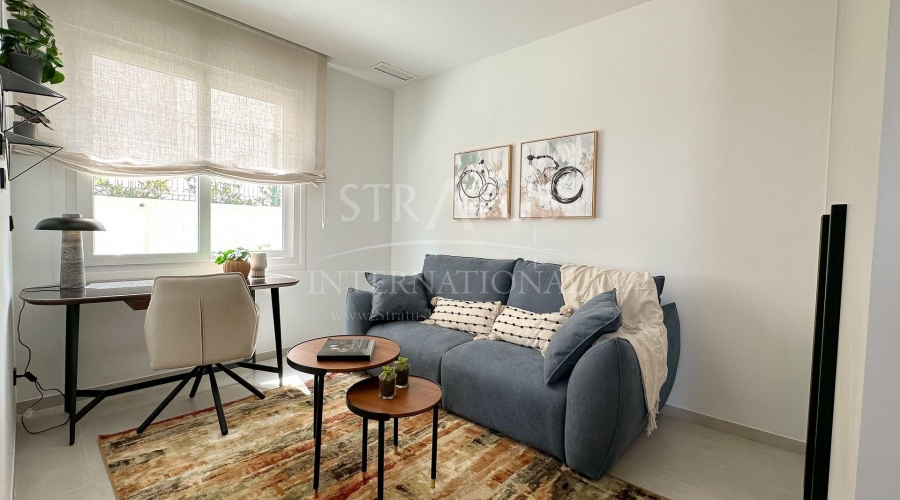 Villas adosadas de nueva construcción con piscina privada en La Finca Golf Resort, Algorfa Vida mediterránea exclusiva en La Finca Golf Descubra esta excepcional nueva promoción residencial situada en el prestigioso complejo La Finca Golf Resort, en Algorfa, Costa Blanca Sur. Puede elegir entre apartamentos de 2/3 dormitorios con piscina comunitaria o villas adosadas o independientes con piscina privada. Rodeada de exuberantes calles de golf y paisajes naturales, esta comunidad ofrece un estilo de vida idílico en un entorno tranquilo y seguro. La encantadora localidad de Algorfa es conocida por su carácter tradicional español, su excelente gastronomía y su ambiente relajado, lo que la convierte en un destino ideal tanto para casas de vacaciones como para vivir de forma permanente. Modernas villas adosadas con piscina privada Estas villas adosadas de bonito diseño cuentan con 3 dormitorios y 2 baños, y combinan funcionalidad, comodidad y estilo moderno. Detalles de la distribución Planta baja Luminoso salón-comedor diáfano conectado a una cocina amueblada Grandes puertas correderas que dan acceso directo al jardín y a la piscina privada Dos amplios dormitorios con armarios empotrados Un cuarto de baño completo Aparcamiento privado dentro de la parcela Planta superior Estudio con cuarto de baño, ideal para oficina, salón o zona de invitados Acceso a una terraza privada abierta de 30 m2, perfecta para tomar el sol y relajarse Características y acabados de alta calidad Construidas con los mejores estándares, estas villas ofrecen comodidades contemporáneas para vivir todo el año, incluyendo Armarios empotrados en todos los dormitorios Persianas eléctricas en el salón y los dormitorios Baños totalmente equipados con espejos y mamparas de ducha Aire acondicionado por conductos totalmente instalado Jardín y piscina privados Ubicación privilegiada cerca de playas, golf y servicios La Finca Golf Resort es uno de los destinos de golf más famosos de la Costa Blanca y ofrece una amplia gama de servicios, como un hotel de lujo, restaurantes, spa e instalaciones deportivas. La urbanización goza de un rápido acceso a las ciudades, playas y aeropuertos cercanos, lo que proporciona comodidad y conectividad. Distancias a puntos clave Club de golf La Finca: a poca distancia Playas de Guardamar del Segura: 15 km Torrevieja y Orihuela Costa: 15 km Almoradí, Benijófar y Ciudad Quesada: a poca distancia en coche Aeropuerto de Alicante: 35 km Disfrute de lo mejor de la vida en la Costa Blanca Con un diseño moderno, espacios exteriores privados y una ubicación privilegiada, estas villas son una excelente opción para familias, inversores y amantes del golf que buscan un estilo de vida de calidad en el sur de España. Póngase en contacto con nosotros hoy mismo para concertar una visita o recibir más información sobre esta exclusiva promoción de nueva construcción en La Finca Golf Resort, Algorfa.Especificaciones