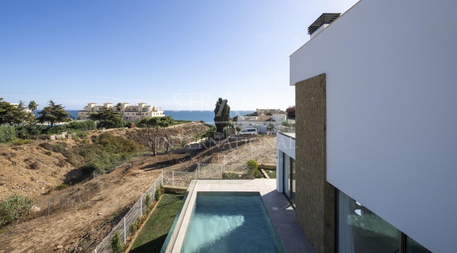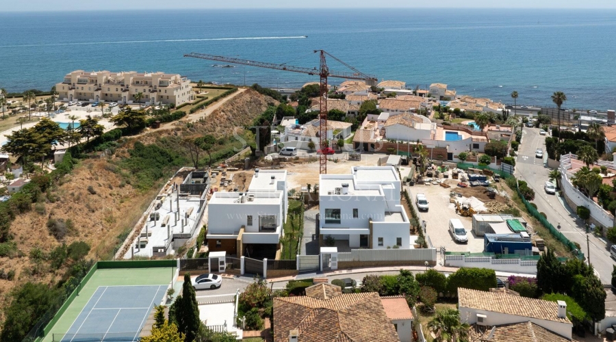 Exclusivas villas nuevas en venta en Las Farolas, Mijas Costa Ubicación privilegiada junto al mar en la Costa del Sol Descubra esta nueva promoción de 7 villas de lujo situadas en la prestigiosa y consolidada urbanización Las Farolas, entre Fuengirola y La Cala de Mijas. A solo 100 metros de la playa, estas excepcionales viviendas disfrutan de vistas parciales al mar y a la montaña y de un fácil acceso directo desde la carretera costera N-340 (A7). La zona es conocida por su tranquilidad, su proximidad al Mediterráneo y sus excelentes conexiones con Málaga, Marbella y el aeropuerto. Diseño elegante y calidad de construcción superior Construido por un promotor con amplia experiencia en la Costa del Sol, este proyecto refleja los más altos estándares de calidad, seguridad y diseño moderno. Cada villa combina el encanto mediterráneo con la arquitectura contemporánea para ofrecer un espacio vital luminoso, funcional y elegante. Amplia distribución en tres niveles Cada villa se distribuye en tres plantas, ofreciendo generosos espacios interiores y exteriores: Sótano: garaje para dos coches, sala técnica y lavandería. Planta principal: amplio salón-comedor con cocina, un dormitorio o despacho y un baño. La zona de estar se abre a una amplia terraza con piscina privada y jardín. Planta superior: dormitorios adicionales, incluida la suite principal con bañera independiente y acceso a terrazas privadas, algunas con vistas al mar. Acabados de lujo y comodidad moderna Todas las villas están equipadas con materiales de primera calidad y la última tecnología, incluyendo: Electrodomésticos de cocina Bosch totalmente equipados Persianas motorizadas en todos los dormitorios Calefacción por suelo radiante mediante sistema aerotérmico y aire acondicionado por conductos. Domótica inteligente para controlar persianas, iluminación y climatización Jardines con sistema de riego automático Distancias a los principales puntos de interés: Playa: 100 m La Cala de Mijas: 3 km Centro de Fuengirola: 6 km Marbella: 22 km Aeropuerto Internacional de Málaga: 30 km Campo de golf más cercano (Chaparral Golf): 2 km Centro de Málaga: 40 km Un estilo de vida de confort y prestigio Estas villas en Las Farolas ofrecen una combinación inigualable de privacidad, lujo y proximidad al mar, lo que las hace ideales como residencia permanente, casa de vacaciones o inversión en la Costa del Sol. Póngase en contacto con nosotros hoy mismo para concertar una visita y descubrir la villa de sus sueños en Mijas Costa.Especificaciones