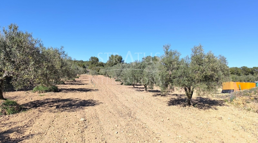 La parcela de 22.000 m², parcialmente vallada, cuenta con 250 olivos productivos y diversos árboles frutales, lo que le permitirá cultivar su propia tierra. Es un entorno excepcional para los amantes de la naturaleza y especialmente adecuado para perros y caballos, gracias a su amplio terreno abierto y su entorno tranquilo, sin vecinos cercanos.