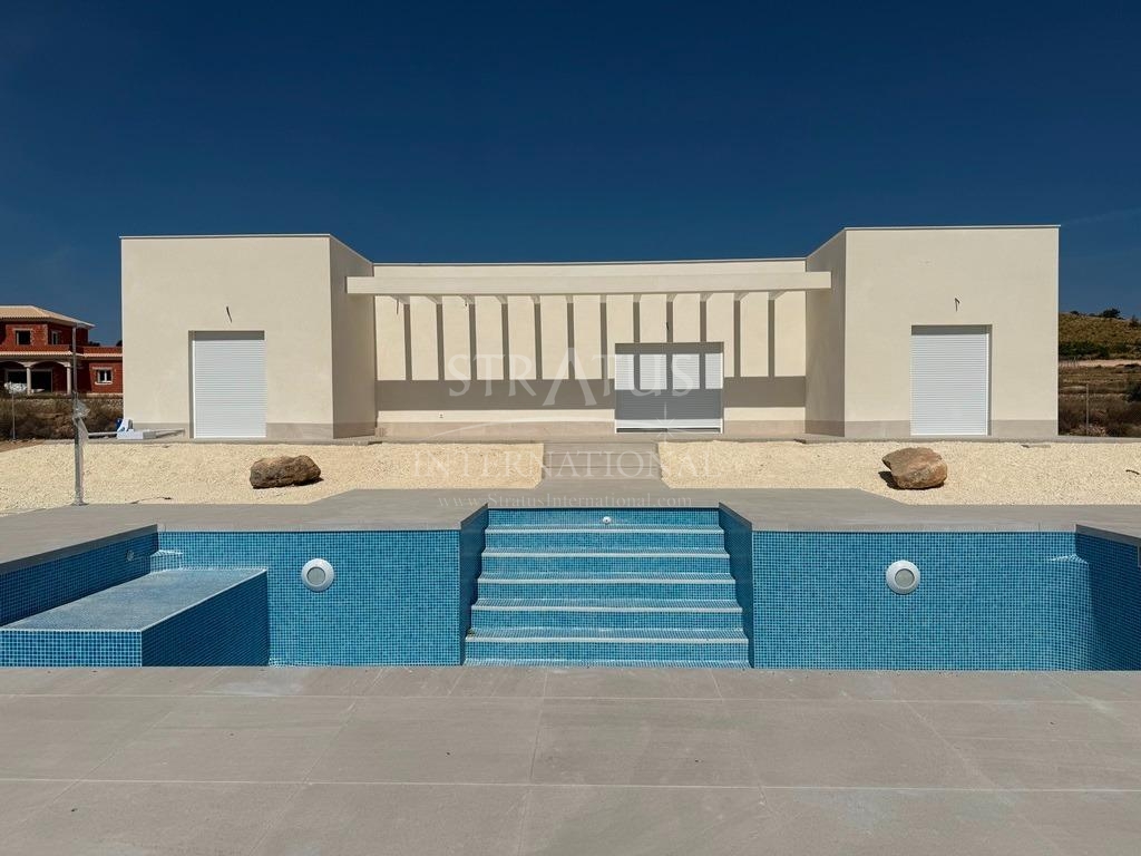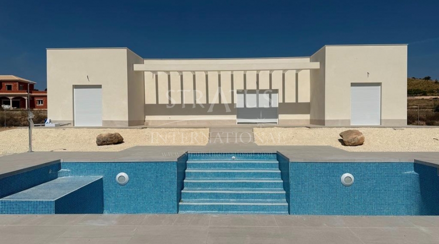 Villas de Obra Nueva en Pinoso en parcelas rústicas Puede elegir villas con toques tradicionales españoles o acabados super modernos, luminosos y limpios. Hay varios tamaños a elegir entre 3 y 6 dormitorios y con 1 o 2 plantas. Diferentes parcelas legales disponibles a elegir (rústicas con un mínimo de 10.000 m2), algunas a poca distancia de la ciudad, algunas totalmente privadas y las más populares están a 5-10 minutos en coche de una ciudad. Tenemos una parcela para cada gusto, todas con vistas impresionantes y todas tienen agua de red + electricidad incluida en el precio e internet de alta velocidad disponible. En el precio publicado hay incluidos 30.000 eur destinados a la parcela, si la parcela elegida tiene un coste superior, se pagará la diferencia. Del mayor y mejor constructor de la zona y utilizamos materiales de primera calidad para un acabado perfecto. Todas las casas incluyen terraza de hormigón estampado de 2m alrededor de la piscina (color y patrón a elegir), 1m alrededor de la casa, entrada cerrada, vallado de 3.000 m2, preinstalación de aire acondicionado por conductos, cocina estándar, puerta de seguridad, ventanas oscilobatientes alemanas (o correderas si se prefiere), chimenea empotrada (en acabado tradicional), preinstalación de televisión e internet, camino de grava más unos metros alrededor de la casa, fosa séptica. Los baños incluyen columna de ducha, plato de ducha o bañera, muebles de lavabo (varios colores a elegir) con fregaderos, grifos y espejos, además de una gran selección de azulejos de pared. Amplia selección de baldosas cerámicas para el suelo, de distintos colores, efecto madera, etc. Las cocinas incluyen armarios con puertas y tiradores estándar, fregadero y grifo de acero inoxidable, preinstalación para horno, lavavajillas, extractor. Varias encimeras de granito a elegir. Electrodomésticos no incluidos. Escalera de mármol (crema, blanco o gris) y barandillas incluidas, más barandillas para el porche delantero. Puede personalizar la casa a su gusto, la mayoría de los cambios internos son gratuitos, pudiendo elegir acabados en los azulejos, bancadas de cocina, mármol para las escaleras o repisas, etc. Las casas se pueden ampliar e incluso podemos construir su propio diseño. Puede contratar varios extras como una piscina más grande, garaje individual o doble, casa de invitados, etc., con un coste adicional. La ciudad de Pinoso está aproximadamente a 45 minutos hacia el interior de Alicante y las playas de arena blanca de la Costa Blanca y cerca de la frontera de Murcia, Alicante. Tiene una población de poco menos de 8.000 habitantes. Pinoso, también conocido como El Pinos debe su nombre a los pinos que cubren las sierras de la zona. Pinoso ofrece un estilo de vida rural español, sin semáforos, casi sin tráfico, prácticamente los únicos atascos son causados por los tractores que llevan las uvas a la Bodega. Los campos están plantados de viñas, almendros y olivos. En febrero los campos se llenan de almendros en flor de color rosa. Pinoso tiene muchos bares, restaurantes y tiendas, un nuevo centro médico 24 horas, dentistas, dos escuelas primarias y 1 secundaria, un teatro. Hay un excelente centro deportivo con piscinas al aire libre, pistas de tenis, campos de fútbol y gimnasio, biblioteca y muchas otras instalaciones, incluyendo una hermosa zona de picnic entre los pinos, con barbacoas, zonas de estar y agua corriente.Especificaciones