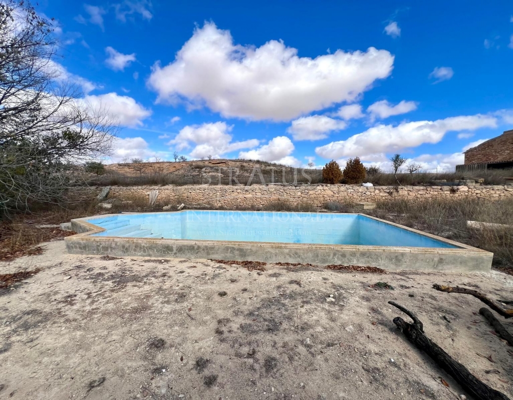 Esta casa de campo bien cuidada ofrece una vida cómoda a solo cinco minutos del pueblo de Pinoso. La propiedad cuenta con cuatro dormitorios y un baño, ofreciendo un espacio práctico para la familia o invitados. El salón incluye una cocina americana y una acogedora chimenea, creando un espacio central cálido y funcional. El tejado está en buen estado y la casa cuenta con agua potable y de riego. Otras comodidades incluyen garaje, despensa y terreno completamente vallado para mayor privacidad y seguridad. En el exterior, podrá disfrutar de una piscina privada, ideal para relajarse y entretenerse.