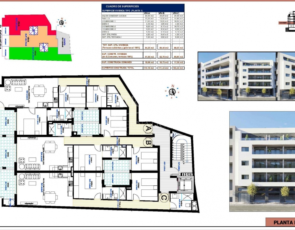 Apartamentos de nueva construcción en Torrevieja A solo 400 m de la Playa del Cura Ubicación privilegiada en el corazón de Torrevieja Descubra estos apartamentos y áticos a estrenar en una de las zonas más cotizadas de Torrevieja, a solo 400 m de la Playa del Cura y a 150 m del paseo marítimo. Situado en el centro de la ciudad, este animado barrio ofrece todos los servicios esenciales a poca distancia, incluyendo supermercados, tiendas, restaurantes, cafeterías y transporte público. Torrevieja es una conocida ciudad costera de la Costa Blanca, famosa por su clima mediterráneo templado, su animado ambiente y su estilo de vida junto al mar durante todo el año. Apartamentos modernos con distribuciones espaciosas Esta exclusiva promoción nueva consta de solo 12 apartamentos y áticos de 2 o 3 dormitorios, diseñados para ofrecer comodidad, funcionalidad y estilo contemporáneo. Los apartamentos de las plantas intermedias cuentan con amplias terrazas, mientras que los áticos disfrutan de un solárium privado adicional, ideal para tomar el sol o comer al aire libre. Todas las viviendas incluyen una cocina abierta conectada con el salón-comedor, lo que crea interiores luminosos y acogedores. Los dormitorios cuentan con armarios empotrados y los baños están totalmente equipados con muebles, espejos y mamparas de ducha. Hay plazas de aparcamiento subterráneo y trasteros opcionales disponibles con un coste adicional. Acabados de calidad y características de eficiencia energética Los apartamentos están construidos con materiales de alta calidad y un fuerte enfoque en la eficiencia energética. La carpintería exterior de aluminio incluye tecnología de rotura de puente térmico y doble acristalamiento para el aislamiento térmico y acústico. Las persianas motorizadas añaden comodidad y seguridad. Cada vivienda cuenta con preinstalación de aire acondicionado y calefacción por conductos, puertas de entrada reforzadas y puertas interiores lacadas en blanco. El agua caliente se produce mediante un sistema aerotérmico, lo que reduce el consumo de energía y mejora la sostenibilidad. Solárium en la azotea con piscina comunitaria Los residentes pueden disfrutar de un solárium exclusivo en la azotea con piscina comunitaria, accesible por ascensor o escaleras. Esta zona privada es perfecta para relajarse, tomar el sol y disfrutar de las vistas panorámicas de la ciudad. Ofrece un refugio tranquilo sobre las animadas calles de Torrevieja y añade un valor significativo a la promoción. Estilo de vida y alrededores de Torrevieja Torrevieja es conocida por su extenso litoral, sus playas de arena y sus emblemáticas salinas. El Parque Natural de las Lagunas de La Mata y Torrevieja se encuentra a unos 5 km y ofrece rutas de senderismo y paisajes únicos. Varios campos de golf, como Villamartin Golf y Las Colinas Golf, se encuentran a entre 12 y 18 km. El puerto deportivo y el puerto de Torrevieja están a aproximadamente 1 km. El aeropuerto de Alicante está a unos 45 km y el aeropuerto internacional de Murcia a unos 65 km, ambos con excelentes conexiones europeas. Su hogar en la costa le espera No pierda esta oportunidad de adquirir un moderno apartamento de nueva construcción cerca de la playa en Torrevieja. Póngase en contacto con nosotros hoy mismo para obtener más información o concertar una visita privada.Especificaciones