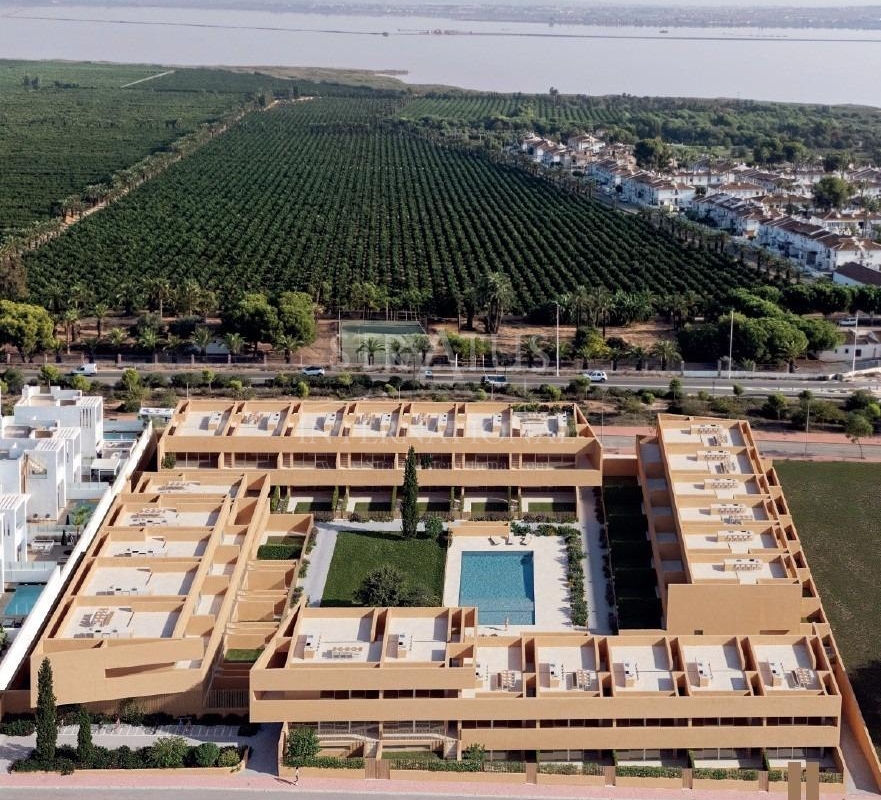 Apartamentos residenciales de nueva construcción en Los Balcones, Torrevieja Viviendas modernas en una zona residencial privilegiada Descubra este atractivo complejo residencial de nueva construcción situado en Los Balcones, uno de los barrios más populares y consolidados de las afueras de Torrevieja. Ubicado en un entorno tranquilo con excelente acceso a todos los servicios esenciales, este complejo se encuentra a solo 4 km de las playas de arena de la Costa Blanca. Los Balcones es conocido por su ambiente relajado, sus amplias calles, sus zonas verdes y su proximidad a hospitales, supermercados, restaurantes y centros comerciales, lo que lo hace ideal para vivir todo el año o para pasar las vacaciones. Apartamentos contemporáneos con espacios exteriores privados El complejo consta de 52 apartamentos modernos construidos en una superficie total de 6700 m2. Cada propiedad incluye una plaza de aparcamiento privada y un trastero en el sótano. Las viviendas ofrecen 2 o 3 dormitorios y 2 baños, uno de ellos en suite. Los compradores pueden elegir entre apartamentos en planta baja con jardín privado o viviendas en plantas superiores con una amplia terraza y solárium privado. Estas distribuciones están diseñadas para maximizar la luz natural y proporcionar cómodos espacios interiores y exteriores para disfrutar del clima mediterráneo durante todo el año. Zonas comunes diseñadas para el relax El proyecto se distribuye en cuatro bloques que rodean una gran zona común central. Este corazón verde de la urbanización cuenta con una piscina con zona infantil y unos jardines con un bonito diseño paisajístico. Estos espacios compartidos son perfectos para relajarse, socializar y pasar tiempo en familia en un entorno seguro y agradable. Características de calidad y diseño energéticamente eficiente Cada apartamento está construido según los estándares modernos e incluye la preinstalación de aire acondicionado por conductos, un sistema de agua caliente aerotérmica para mejorar la eficiencia energética, iluminación exterior y carpintería exterior con doble acristalamiento. Las cocinas están completamente equipadas, ofreciendo un espacio funcional y elegante para la vida diaria. Estas características garantizan un alto nivel de confort, un bajo mantenimiento y un consumo energético reducido, lo que hace que las viviendas sean prácticas y sostenibles. Excelente ubicación cerca de playas y campos de golf Los Balcones ofrece una ubicación estratégica cerca de muchos puntos de interés. Las playas de Torrevieja están a unos 4 km. Varios campos de golf de renombre, como Villamartin Golf, Las Ramblas Golf y Campoamor Golf, se encuentran a entre 10 y 15 km. El Hospital Universitario de Torrevieja está a menos de 2 km, lo que añade comodidad y tranquilidad. El centro de Torrevieja está a unos 5 km, conectado por autobús con Los Balcones, donde encontrará una amplia gama de tiendas, restaurantes, locales culturales y un animado puerto deportivo. El aeropuerto internacional de Alicante se encuentra a unos 42 km, lo que facilita las conexiones internacionales. El puerto de Torrevieja está a unos 6 km. Ideal para vivir o invertir Con su diseño moderno, sus excelentes zonas comunes y su ubicación privilegiada cerca de playas, campos de golf y servicios, este nuevo complejo residencial en Los Balcones Torrevieja es perfecto como residencia permanente, casa de vacaciones o oportunidad de inversión. Póngase en contacto con nosotros hoy mismo para obtener más información o concertar una visita a estos apartamentos de nueva construcción en Los Balcones, Torrevieja.Especificaciones