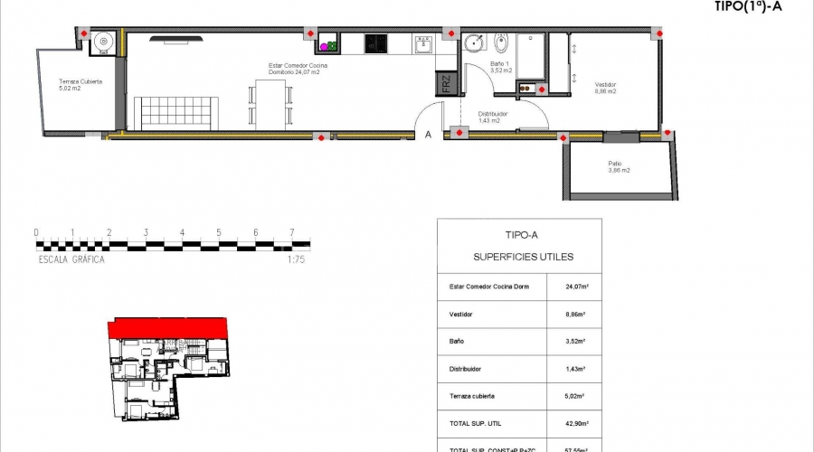 Apartamentos de nueva construcción en Torrevieja a solo 600 m de la Playa del Cura Ubicación privilegiada en el corazón de Torrevieja Descubra estos apartamentos y áticos a estrenar en una de las zonas más cotizadas de Torrevieja, a solo 600 m de la Playa del Cura y a 400 m del paseo marítimo. Situado en el centro de la ciudad, este animado barrio ofrece todos los servicios esenciales a poca distancia, incluyendo supermercados, tiendas, restaurantes, cafeterías y transporte público. Torrevieja es una conocida ciudad costera de la Costa Blanca, famosa por su clima mediterráneo templado, su animado ambiente y su estilo de vida junto al mar durante todo el año. Apartamentos modernos con distribuciones espaciosas Esta exclusiva promoción nueva consta de solo 14 apartamentos y áticos entre estudios, 1 o 2 dormitorios, diseñados para ofrecer comodidad, funcionalidad y estilo contemporáneo. Todas las viviendas incluyen una cocina abierta conectada con el salón-comedor, equipada con electrodomésticos, lo que crea interiores luminosos y acogedores. Los dormitorios cuentan con armarios empotrados y los baños están totalmente equipados con muebles, espejos, suelo radiante y mamparas de ducha. Acabados de calidad y características de eficiencia energética Los apartamentos están construidos con materiales de alta calidad y un fuerte enfoque en la eficiencia energética. La carpintería exterior de aluminio incluye tecnología de rotura de puente térmico y doble acristalamiento para el aislamiento térmico y acústico. Las persianas motorizadas añaden comodidad y seguridad. Cada vivienda cuenta con preinstalación de aire acondicionado y calefacción por conductos, puertas de entrada reforzadas, pack de iluminación y puertas interiores lacadas en blanco. El agua caliente se produce mediante un sistema aerotérmico, lo que reduce el consumo de energía y mejora la sostenibilidad. Solárium en la azotea con piscina comunitaria Los residentes pueden disfrutar de un solárium exclusivo en la azotea con piscina comunitaria, barbacoa, sauna y zona de solarium con tumbonas, accesible por ascensor o escaleras. Esta zona privada es perfecta para relajarse, tomar el sol y disfrutar de las vistas panorámicas de la ciudad. Ofrece un refugio tranquilo sobre las animadas calles de Torrevieja y añade un valor significativo a la promoción. Estilo de vida y alrededores de Torrevieja Torrevieja es conocida por su extenso litoral, sus playas de arena y sus emblemáticas salinas. El Parque Natural de las Lagunas de La Mata y Torrevieja se encuentra a unos 5 km y ofrece rutas de senderismo y paisajes únicos. Varios campos de golf, como Villamartin Golf y Las Colinas Golf, se encuentran a entre 12 y 18 km. El puerto deportivo y el puerto de Torrevieja están a aproximadamente 1 km. El aeropuerto de Alicante está a unos 45 km y el aeropuerto internacional de Murcia a unos 65 km, ambos con excelentes conexiones europeas. Su hogar en la costa le espera No pierda esta oportunidad de adquirir un moderno apartamento de nueva construcción cerca de la playa en Torrevieja. Póngase en contacto con nosotros hoy mismo para obtener más información o concertar una visita privada.Especificaciones