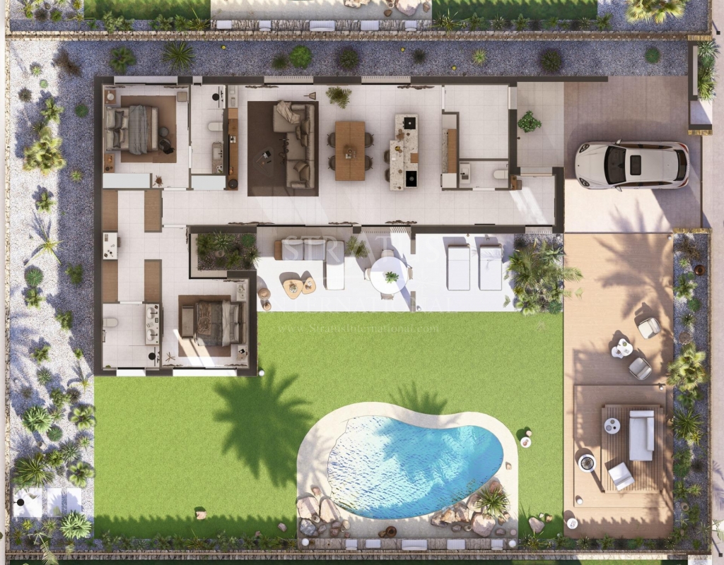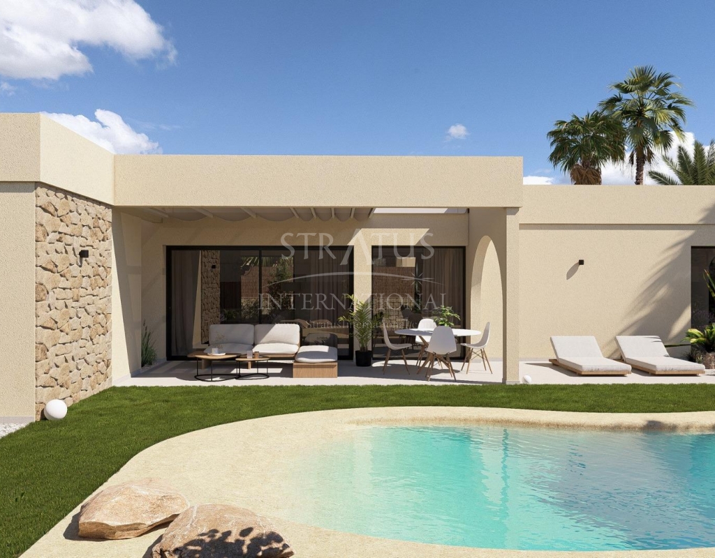 Villas contemporáneas de una sola planta en Altaona Golf Resort Murcia Ubicación privilegiada en un complejo de golf cerca de la ciudad de Murcia Descubra esta exclusiva colección de villas independientes de nueva construcción situadas en el prestigioso complejo Altaona Golf Resort en Murcia. Ubicada en un entorno seguro y tranquilo, rodeada de naturaleza y de un campo de golf de 18 hoyos, esta comunidad residencial ofrece el equilibrio perfecto entre tranquilidad y accesibilidad. Altaona Golf se encuentra a solo 15 km del centro de Murcia, donde encontrará centros comerciales, restaurantes, colegios y servicios médicos, mientras que las playas de la Costa Cálida están a solo 20 km. El aeropuerto de Murcia-Corvera está convenientemente situado a 15 km del complejo, lo que lo convierte en un lugar ideal tanto para vivir de forma permanente como para pasar las vacaciones. Diseño moderno de una sola planta con jardín y piscina privados Estas elegantes villas están diseñadas en una sola planta para ofrecer el máximo confort y funcionalidad. Los compradores pueden elegir entre 2, 3 o 4 dormitorios y 2 o 3 baños, además de un aseo para invitados. Cada vivienda cuenta con una cocina y una sala de estar diáfanas que conectan a la perfección con la terraza exterior y el jardín privado con piscina. La parcela incluye una plaza de aparcamiento privada, lo que garantiza la comodidad y la privacidad. Viviendas energéticamente eficientes con características de alta calidad Todas las villas cuentan con un certificado energético de clase A, lo que garantiza una excelente eficiencia energética y bajos costes de funcionamiento. Las propiedades incluyen aire acondicionado por conductos con bomba de calor en toda la casa, excepto en los baños, y calefacción eléctrica por suelo radiante en el salón y los baños con termostatos independientes por zonas. Un sistema de ventilación mecánica renueva el aire de las cocinas, los baños, el lavadero y el aseo de invitados, mejorando el confort interior. La cocina está equipada con campana extractora y placa de inducción eléctrica. La iluminación LED está incluida en el salón, el pasillo y las zonas exteriores, mientras que el resto de habitaciones están preparadas para que el propietario personalice la iluminación. Los dormitorios están equipados con puntos de carga USB para mayor comodidad. Tecnología domótica y comunidad segura Cada villa incluye un sistema de videoportero, domótica con dos interruptores inteligentes y acceso motorizado para vehículos a la comunidad cerrada. El jardín privado se entrega ajardinado con un sistema de riego por goteo y una atractiva piscina privada, ideal para disfrutar del clima mediterráneo durante todo el año. Distancias a puntos de interés clave Campo de golf Altaona 0,1 km Centro de la ciudad de Murcia 15 km Playas de Los Alcázares y Mar Menor 20 km Aeropuerto de Murcia Corvera 15 km Centros comerciales y servicios 10 km Hacienda Riquelme Golf Resort 12 km Su nuevo estilo de vida en Altaona Golf le espera Disfrute del golf, la naturaleza, la seguridad y el confort moderno en uno de los complejos turísticos más atractivos de la región de Murcia. Póngase en contacto con nosotros hoy mismo para recibir más información o concertar una visita a estas hermosas villas de nueva construcción.Especificaciones