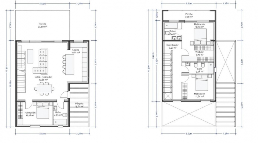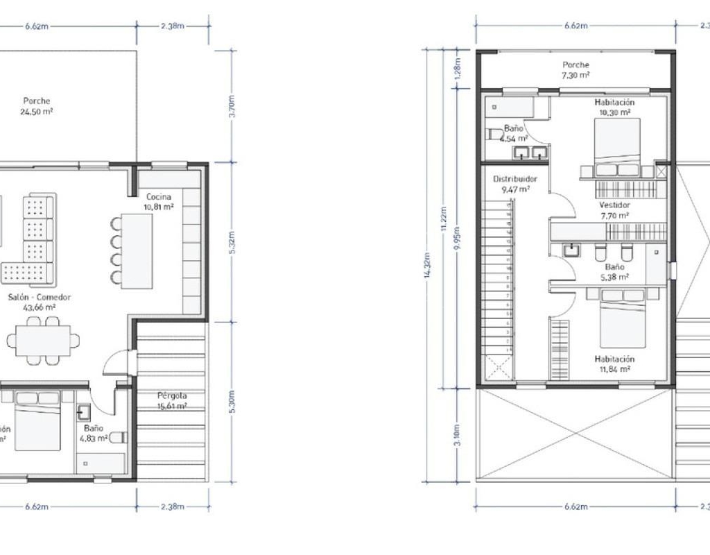 Modernas villas de nueva construcción cerca de Estepona, cerca de la playa y del campo de golf Valle Romano Vida mediterránea contemporánea en la Costa del Sol Descubra este elegante proyecto de villas de nueva construcción situado junto a Estepona, en la Costa del Sol. Diseñadas con una arquitectura minimalista, líneas limpias y espacios abiertos y luminosos, estas viviendas combinan simplicidad, eficiencia y un estilo mediterráneo atemporal. Con orientación oeste, las villas disfrutan de una hermosa luz por la tarde y están idealmente situadas cerca de campos de golf, servicios y la playa. Estepona es una de las localidades más atractivas de la Costa del Sol, conocida por su encantador casco antiguo, su puerto deportivo, sus playas de arena y sus más de 320 días de sol al año. La zona ofrece una calidad de vida excepcional, que combina la gastronomía internacional, las tradiciones locales y un ambiente costero relajado. Los compradores pueden elegir entre dos tamaños de villa para adaptarse a sus necesidades: 160 m2 de superficie construida en una parcela de 434 m2 210 m2 de superficie construida en una parcela de 629 m2 Cada villa se distribuye en un semisótano y dos plantas principales, lo que ofrece una distribución equilibrada y práctica. El sótano incluye una sauna, un lavadero y un trastero, creando un espacio privado de bienestar y utilidad. En la planta baja, el salón y la cocina de planta abierta conectan directamente con la terraza delantera y la piscina ecológica privada. Esta planta también cuenta con un dormitorio y un cuarto de baño completo. La primera planta ofrece dos dormitorios adicionales y dos baños, uno de ellos en suite, junto con dos terrazas descubiertas en la parte delantera y trasera de la propiedad. Las amplias terrazas y el sistema de balcones dobles amplían las zonas de estar al aire libre, mejorando la conexión entre los espacios interiores y el entorno mediterráneo. Diseño energéticamente eficiente y especificaciones de alta calidad Estas villas están diseñadas para la vida moderna, priorizando el confort, la sostenibilidad y el bajo consumo energético. Las características principales incluyen: Cocinas y baños totalmente equipados Preinstalación para aire acondicionado por conductos con sistema aerotérmico o bomba de calor Sistema de energía renovable para agua caliente Iluminación LED empotrada en toda la vivienda Preinstalación para domótica Paneles fotovoltaicos para autoconsumo de 4 kW Clasificación energética de clase A El plazo de construcción es de aproximadamente 14 meses desde la compra. Excelente ubicación y distancias Playa a 1,8 km Valle Romano Golf a 1 km Marbella a 15 km Puerto Banús a 20 km Aeropuerto de Málaga a 75 km Asegúrese su villa contemporánea en Estepona Este proyecto ofrece una oportunidad única de adquirir una villa moderna y energéticamente eficiente en una ubicación privilegiada cerca del golf y del mar. Póngase en contacto con nosotros hoy mismo para recibir más información y reservar su nueva vivienda en la Costa del Sol.Especificaciones