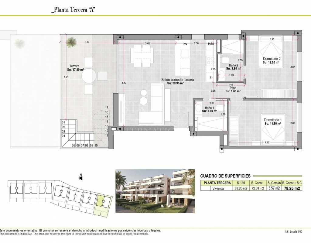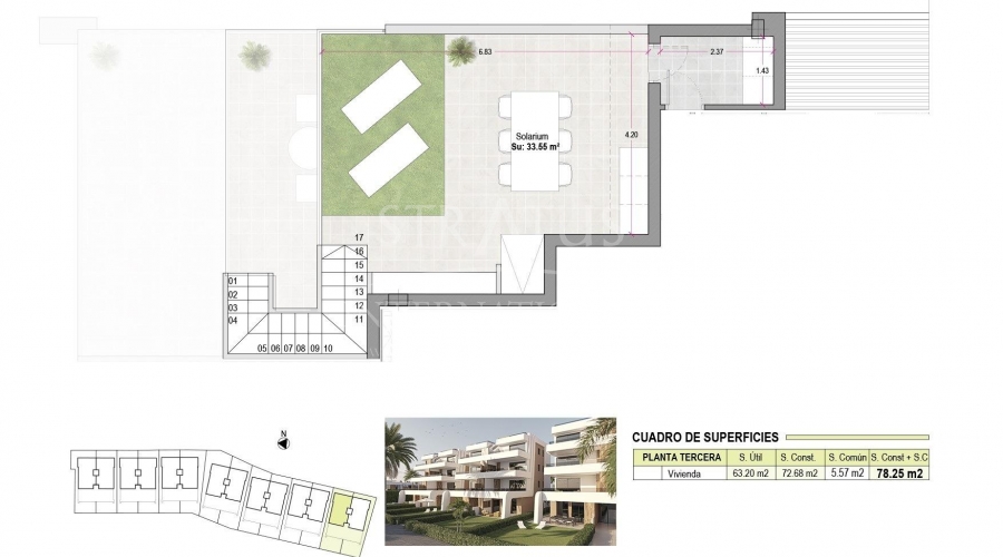 Apartamentos de nueva construcción en Condado de Alhama Golf Resort Murcia Vida moderna en un prestigioso complejo de golf Descubra estos apartamentos de nueva construcción situados en el famoso Condado de Alhama Golf Resort, en la región de Murcia. Este exclusivo complejo residencial de villas y apartamentos se encuentra en un complejo seguro rodeado de naturaleza, instalaciones deportivas y un campo de golf de campeonato, y ofrece un estilo de vida excepcional en un tranquilo entorno mediterráneo. Condado de Alhama es un complejo de golf bien establecido con un centro comercial, supermercados, bares, restaurantes, zonas deportivas y jardines paisajísticos. Es una opción ideal tanto para vivir de forma permanente como para pasar las vacaciones, ya que combina comodidad, seguridad y ocio. Apartamentos contemporáneos con terrazas y soláriums Los apartamentos se distribuyen en bloques de baja altura de 8 unidades, con viviendas en la planta baja, primera, segunda y tercera planta. Cada bloque cuenta con un ascensor que facilita el acceso a todos los niveles. Las propiedades de la planta baja ofrecen 3 dormitorios y 2 baños completos, con la opción de adaptarse a 2 dormitorios para obtener una zona de estar más amplia si se desea. Las demás unidades cuentan con 2 dormitorios y 2 baños. Los apartamentos de la última planta incluyen un solárium privado, perfecto para tomar el sol y disfrutar de vistas panorámicas. Todas las viviendas están diseñadas con un concepto contemporáneo de planta abierta, integrando una cocina totalmente equipada con la sala de estar y el comedor. Las amplias terrazas con cocina de verano amplían el espacio habitable al aire libre, lo que permite a los residentes disfrutar del clima cálido durante todo el año. Especificaciones de alta calidad y zonas comunes La promoción está construida con altos estándares e incluye: Cocina totalmente amueblada y equipada con frigorífico y lavavajillas integrados, placa de inducción, campana extractora, horno y microondas en columna Preinstalación para aire acondicionado por conductos Sistema aerotérmico para agua caliente Puerta de entrada blindada Baños completamente equipados con mueble de lavabo, inodoro suspendido y mamparas de ducha Iluminación interior y exterior Plaza de aparcamiento exterior para cada apartamento Trastero en algunas viviendas Los residentes disfrutan de varias piscinas comunitarias rodeadas de zonas verdes, lo que crea un ambiente relajante y familiar. Ubicación privilegiada y distancias Alhama Signature Golf, diseñado por Jack Nicklaus, dentro del complejo Playas de Mazarrón y Bolnuevo a 20 km Aeropuerto Internacional de Murcia a 20 km Ciudad de Murcia a 40 km Cartagena a 35 km Mazarrón ofrece más de 35 km de costa, incluyendo varias playas con bandera azul reconocidas por su calidad y belleza natural. Su hogar en Condado de Alhama le espera Estos apartamentos de nueva construcción ofrecen golf, sol y excelentes servicios en uno de los complejos turísticos más completos de Murcia. Póngase en contacto con nosotros hoy mismo para recibir más información y asegurar su propiedad en Condado de Alhama Golf Resort.Especificaciones
