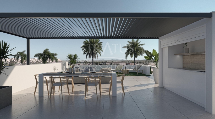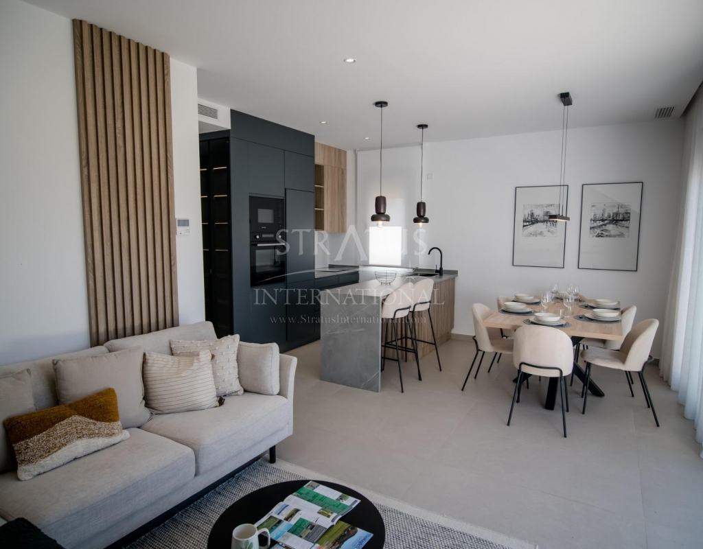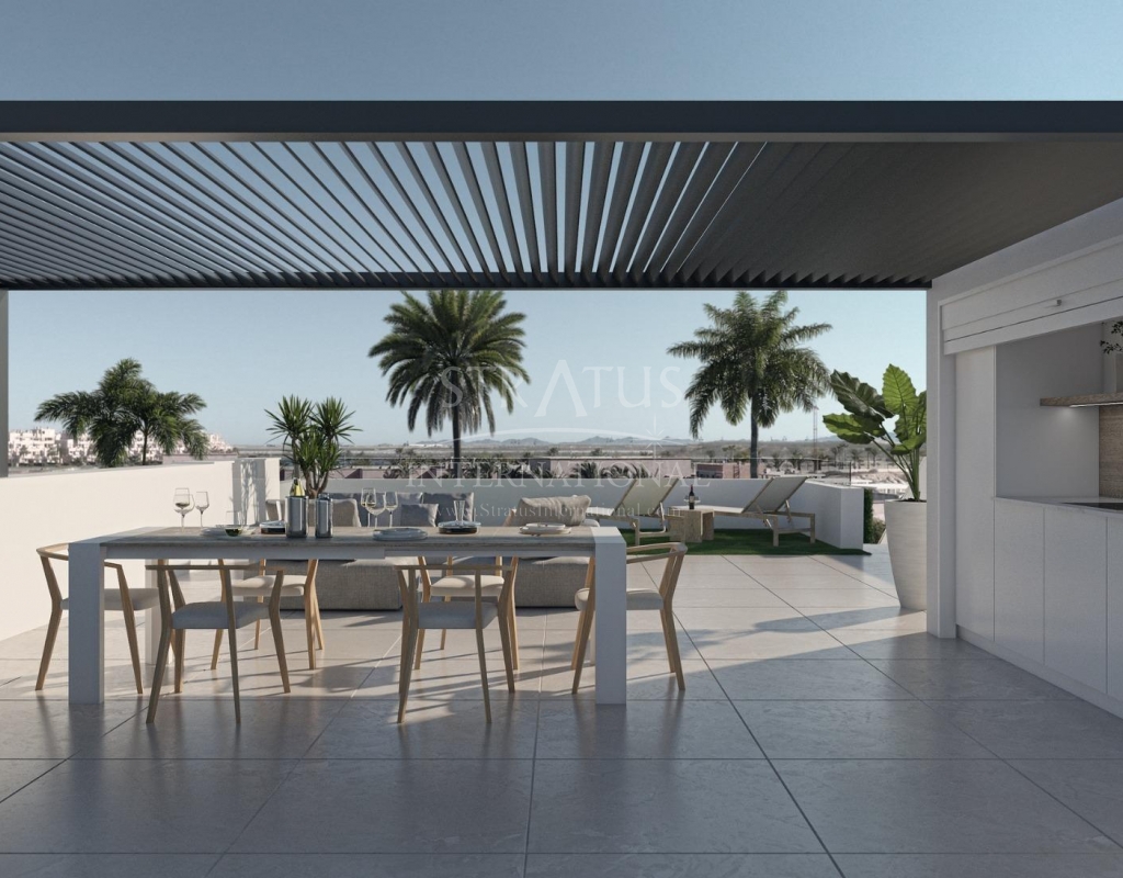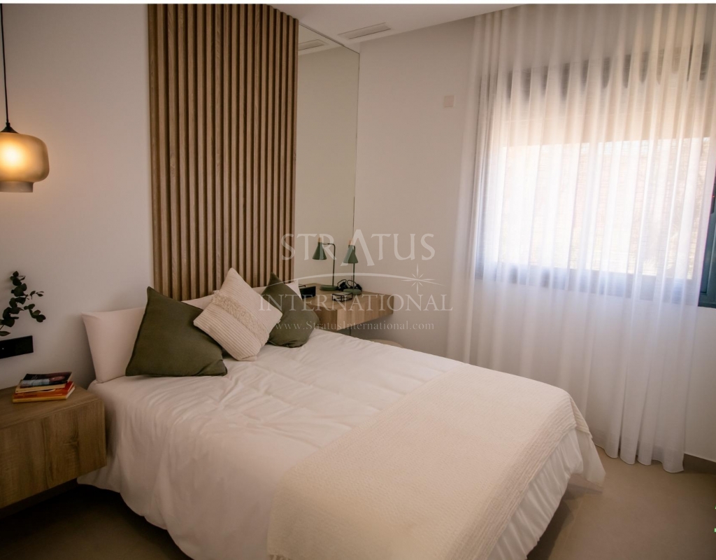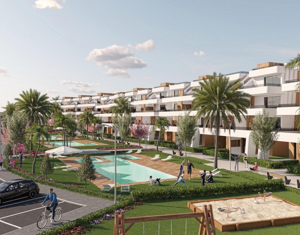 Apartamentos de nueva construcción en Condado de Alhama Golf Resort Murcia Vida moderna en un prestigioso complejo de golf Descubra estos apartamentos de nueva construcción situados en el famoso Condado de Alhama Golf Resort, en la región de Murcia. Este exclusivo complejo residencial de villas y apartamentos se encuentra en un complejo seguro rodeado de naturaleza, instalaciones deportivas y un campo de golf de campeonato, y ofrece un estilo de vida excepcional en un tranquilo entorno mediterráneo. Condado de Alhama es un complejo de golf bien establecido con un centro comercial, supermercados, bares, restaurantes, zonas deportivas y jardines paisajísticos. Es una opción ideal tanto para vivir de forma permanente como para pasar las vacaciones, ya que combina comodidad, seguridad y ocio. Apartamentos contemporáneos con terrazas y soláriums Los apartamentos se distribuyen en bloques de baja altura de 8 unidades, con viviendas en la planta baja, primera, segunda y tercera planta. Cada bloque cuenta con un ascensor que facilita el acceso a todos los niveles. Las propiedades de la planta baja ofrecen 3 dormitorios y 2 baños completos, con la opción de adaptarse a 2 dormitorios para obtener una zona de estar más amplia si se desea. Las demás unidades cuentan con 2 dormitorios y 2 baños. Los apartamentos de la última planta incluyen un solárium privado, perfecto para tomar el sol y disfrutar de vistas panorámicas. Todas las viviendas están diseñadas con un concepto contemporáneo de planta abierta, integrando una cocina totalmente equipada con la sala de estar y el comedor. Las amplias terrazas con cocina de verano amplían el espacio habitable al aire libre, lo que permite a los residentes disfrutar del clima cálido durante todo el año. Especificaciones de alta calidad y zonas comunes La promoción está construida con altos estándares e incluye: Cocina totalmente amueblada y equipada con frigorífico y lavavajillas integrados, placa de inducción, campana extractora, horno y microondas en columna Preinstalación para aire acondicionado por conductos Sistema aerotérmico para agua caliente Puerta de entrada blindada Baños completamente equipados con mueble de lavabo, inodoro suspendido y mamparas de ducha Iluminación interior y exterior Plaza de aparcamiento exterior para cada apartamento Trastero en algunas viviendas Los residentes disfrutan de varias piscinas comunitarias rodeadas de zonas verdes, lo que crea un ambiente relajante y familiar. Ubicación privilegiada y distancias Alhama Signature Golf, diseñado por Jack Nicklaus, dentro del complejo Playas de Mazarrón y Bolnuevo a 20 km Aeropuerto Internacional de Murcia a 20 km Ciudad de Murcia a 40 km Cartagena a 35 km Mazarrón ofrece más de 35 km de costa, incluyendo varias playas con bandera azul reconocidas por su calidad y belleza natural. Su hogar en Condado de Alhama le espera Estos apartamentos de nueva construcción ofrecen golf, sol y excelentes servicios en uno de los complejos turísticos más completos de Murcia. Póngase en contacto con nosotros hoy mismo para recibir más información y asegurar su propiedad en Condado de Alhama Golf Resort.Especificaciones