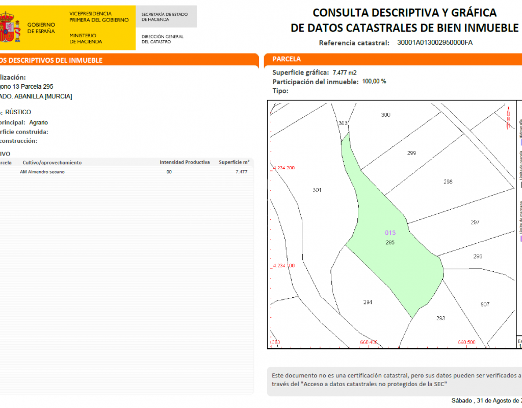 Ubicada cerca de los encantadores pueblos de Mahoya y Abanilla, esta parcela combina la tranquilidad rural con fácil acceso a los servicios locales. Abanilla es conocida por su rico patrimonio cultural y belleza natural, con vistas panorámicas y rutas de senderismo. El cercano pueblo de Mahoya ofrece restaurantes, tiendas y servicios esenciales, lo que la convierte en un lugar ideal tanto para relajarse como para las necesidades diarias. Esta propiedad es ideal para quienes buscan un refugio tranquilo y al mismo tiempo mantenerse conectados con la comunidad local.
