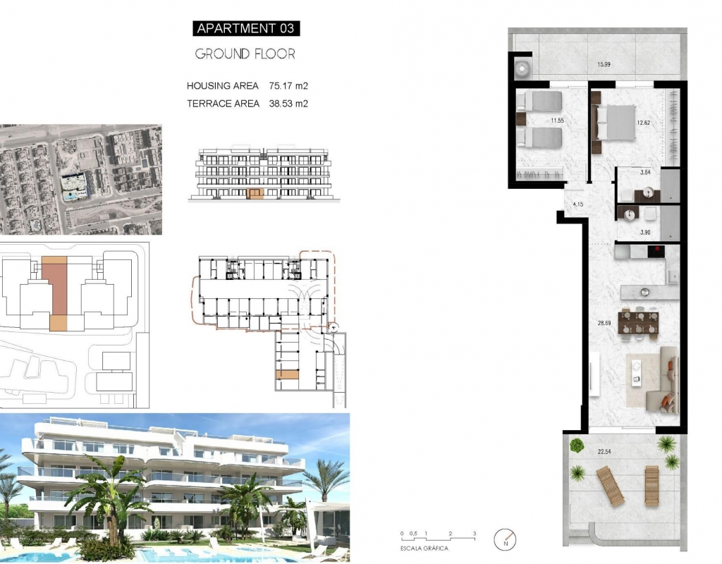 COMPLEXE RÉSIDENTIEL NEUF À LOMAS DE CABO ROIG Nouveau complexe résidentiel de luxe situé à Lomas de Cabo Roig. Complexe de 24 appartements et penthouses avec 2 et 3 chambres, 2 salles de bains, avec de grands espaces communs, jardin et aire de jeux autour, grande piscine (y compris la zone pour enfants et jacuzzi) relax/BBQ, club de fitness et espace de coworking, toilettes publiques et parking souterrain. Le complexe a installé un gymnase entièrement équipé et un espace de coworking entièrement équipé avec de belles vues sur le jardin. L'expérience luxueuse de l'excellence architecturale assure un complexe intime, offrant sécurité et intimité. Lomas de Cabo Roig situé à un kilomètre à l'intérieur des terres de la côte de Cabo Roig avec de belles plages, une partie de la Costa Orihuela. Elle est située dans une zone bien desservie par les routes, avec de nombreuses installations et des centres commerciaux à proximité. Lomas de Cabo Roig se trouve à 30 minutes de l'aéroport d'Alicante et à 1 heure de l'aéroport de Murcie - Corvera.Extras