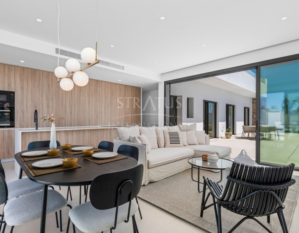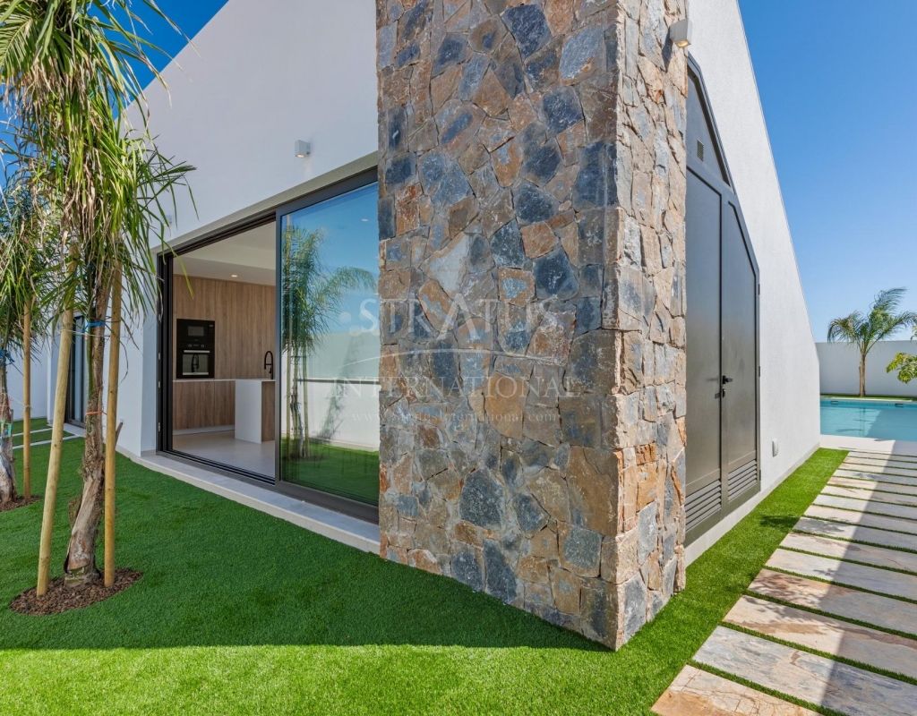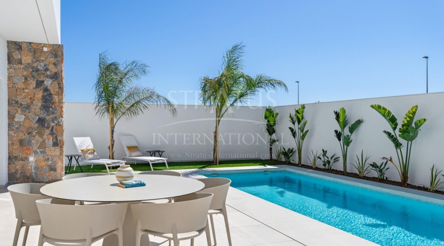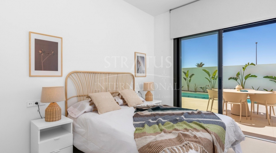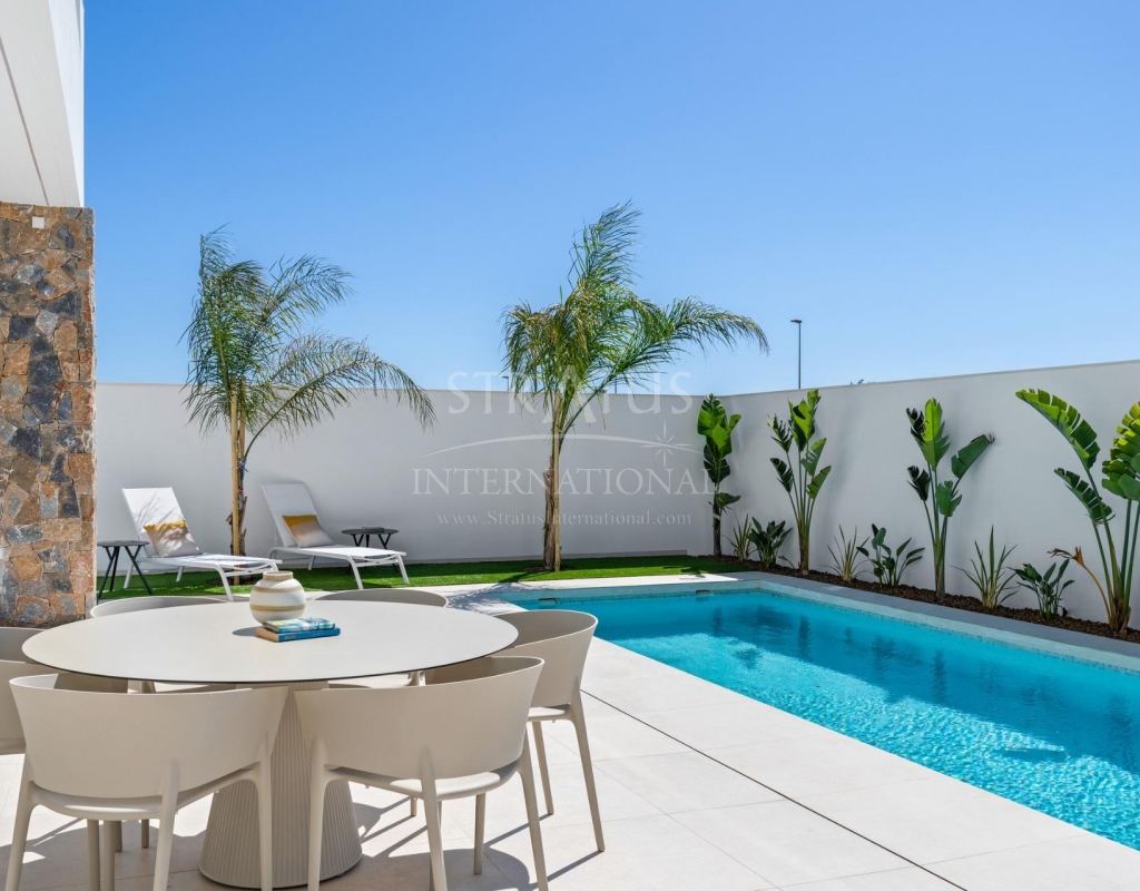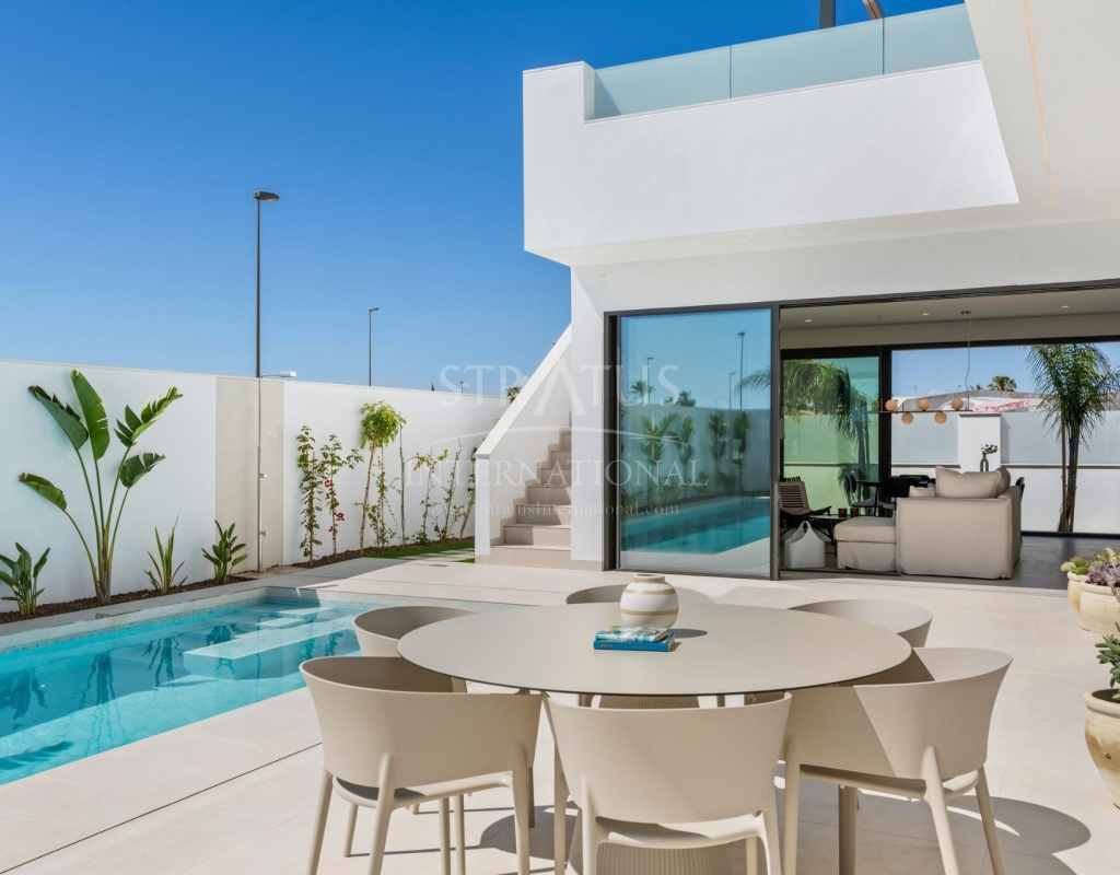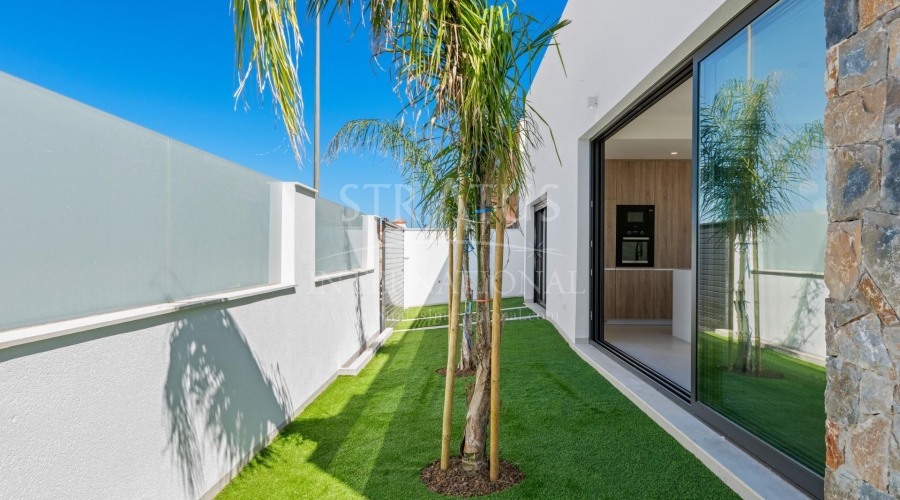 VILLAS NEUVES À SAN JAVIER Résidence neuve de villas à San Javier, à 2,5 km de la plage. Villas construites sur un seul étage et composées de 3 chambres, 2 salles de bains et 1 WC, cuisine américaine, salon avec vue dégagée sur la terrasse, jardin privé avec piscine et solarium. Cuisine entièrement équipée en blanc brillant ou en bois, comprenant une plaque à induction avec hotte intégrée, un four, un micro-ondes, un lave-linge, un réfrigérateur intégré et un lave-vaisselle intégré. Installation complète de climatisation par conduits. La piscine est pré-équipée pour une pompe à chaleur. San Javier est proche de toutes les commodités et offre un accès facile à la plage, aux sports nautiques, aux commerces et au réseau de transport. Vous pourrez profiter de toutes les installations que San Javier a à offrir, telles que les magasins locaux, les bars et les restaurants, tout en étant à proximité des centres commerciaux, de l'aéroport de Murcie et de tous les beaux endroits qui se trouvent le long de la Mar Menor. L'aéroport de Corvera/Murcie est à 30 minutes et l'aéroport d'Alicante à 45 minutes.Features