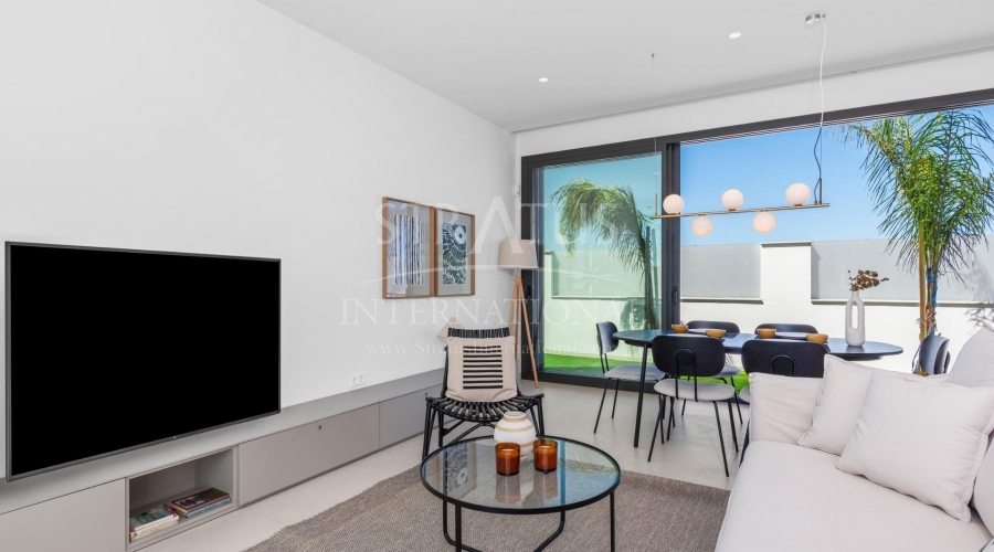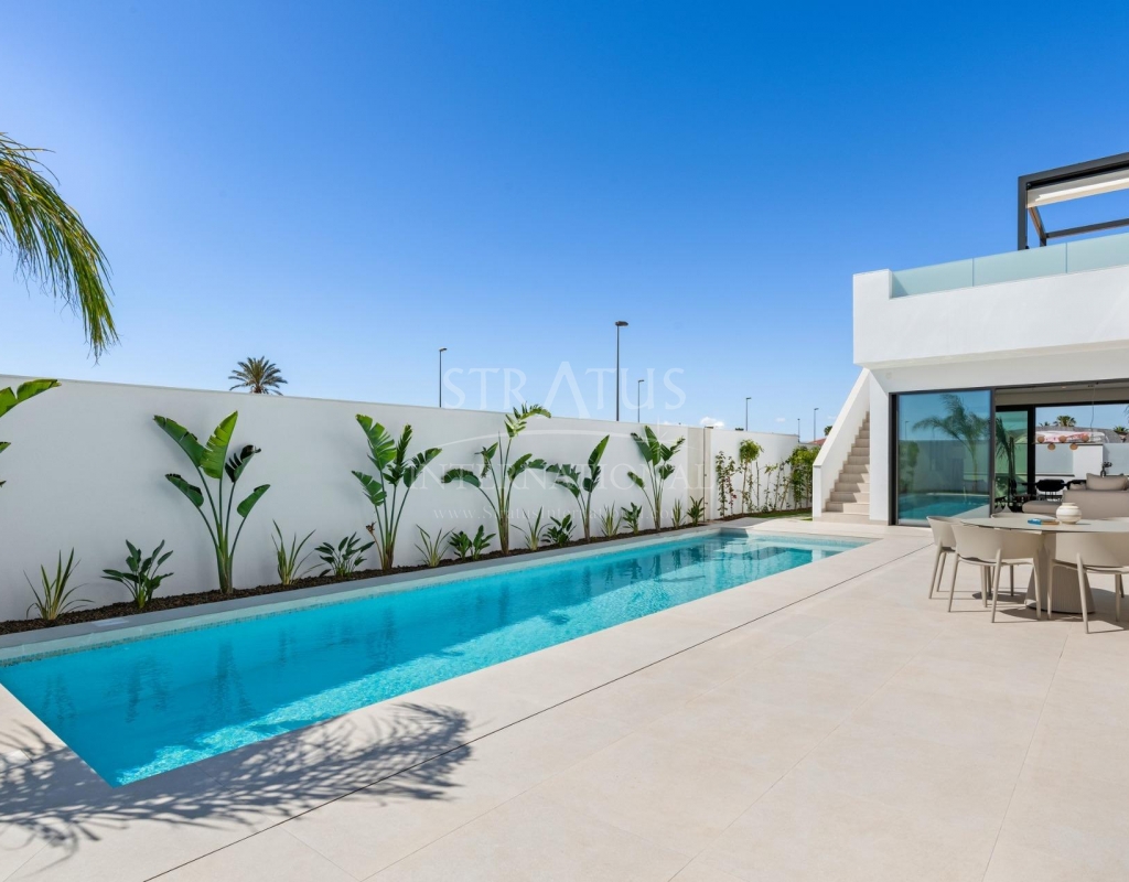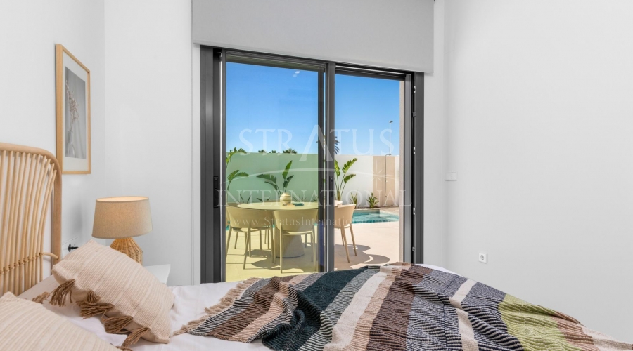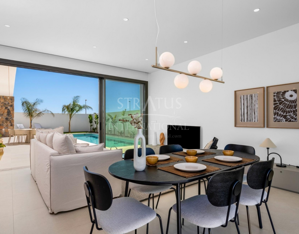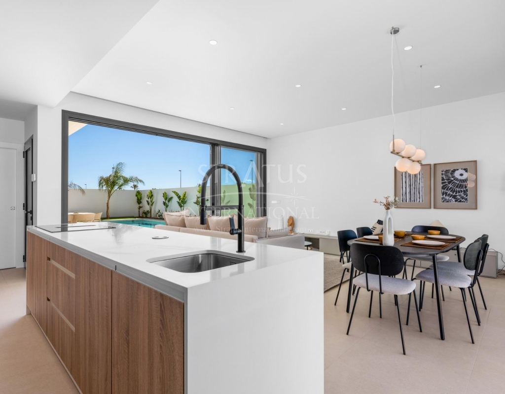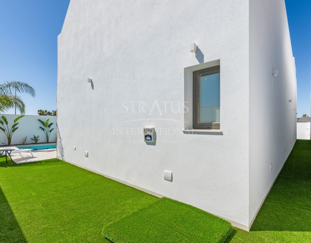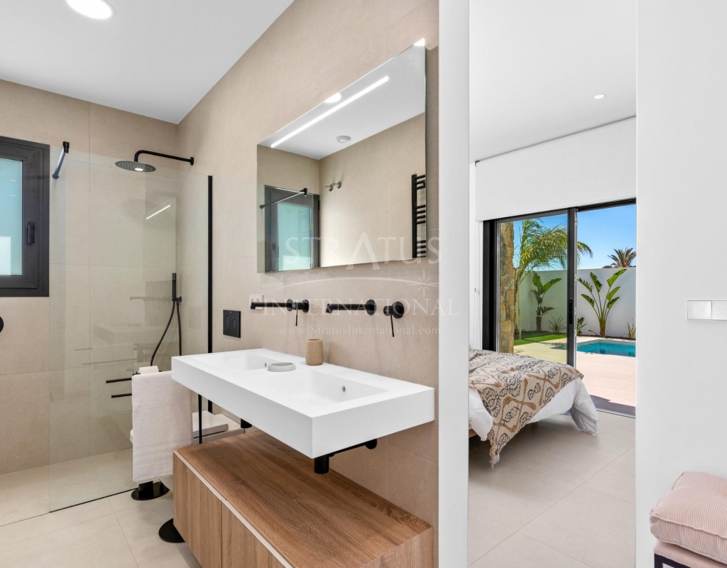 VILLAS NEUVES À SAN JAVIER Résidence neuve de villas à San Javier, à 2,5 km de la plage. Villas construites sur un seul étage et composées de 3 chambres, 2 salles de bains et 1 WC, cuisine américaine, salon avec vue dégagée sur la terrasse, jardin privé avec piscine et solarium. Cuisine entièrement équipée en blanc brillant ou en bois, comprenant une plaque à induction avec hotte intégrée, un four, un micro-ondes, un lave-linge, un réfrigérateur intégré et un lave-vaisselle intégré. Installation complète de climatisation par conduits. La piscine est pré-équipée pour une pompe à chaleur. San Javier est proche de toutes les commodités et offre un accès facile à la plage, aux sports nautiques, aux commerces et au réseau de transport. Vous pourrez profiter de toutes les installations que San Javier a à offrir, telles que les magasins locaux, les bars et les restaurants, tout en étant à proximité des centres commerciaux, de l'aéroport de Murcie et de tous les beaux endroits qui se trouvent le long de la Mar Menor. L'aéroport de Corvera/Murcie est à 30 minutes et l'aéroport d'Alicante à 45 minutes.Features