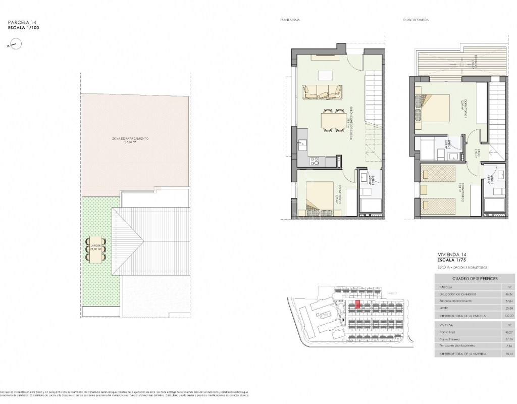 BUNGALOWS DE 3 CHAMBRES DANS RÉSIDENTIEL EXCLUSIF À GRAN ALACANT! Découvrez cette résidence exclusive de bungalows de 86.28m² avec un jardin de 64m², et avec 2 ou 3 chambres. C'est une urbanisation privée, qui dispose d'une piscine commune, de jardins et d'une aire de jeux pour enfants pour profiter du temps libre. La résidence est située au Cap de Santa Pola, entre les montagnes et la plage de Carabassí. Avec la fourniture de tous les services, mettant en évidence un centre commercial à quelques mètres, avec la mode, une large zone de loisirs, des services et des restaurants, une station-service, un arrêt de bus, etc... Il borde la route principale, sur un main, et la mer Méditerranée sur son côté est, avec des plages de sable fin et de vastes forêts de pins. Les bungalows sont sur deux étages, avec des finitions de haute qualité, de grands parkings et des terrasses pour profiter du soleil toute l'année ! Il est livré avec l'installation de deux climatiseurs, d'une cuisine équipée d'un four, d'une plaque vitrocéramique à induction et d'une hotte aspirante. -12 km de l'aéroport international d'Alicante-Elche -6 km de Santa Pola -23 km d'Alicante Profitez du confort des espaces dans un quartier privilégié !Features