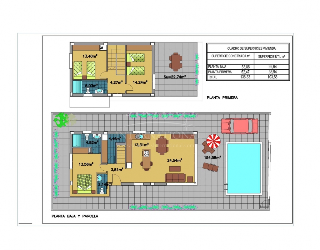 VILLA NEUVE A PILAR DE LA HORADADA Villa neuve à Pilar de la Horadada. Villa moderne construite sur 2 étages, dispose de 3 chambres, 2 salles de bains, cuisine ouverte sur le salon, terrasse, jardin avec piscine privée et place de parking. Pilar de la Horadada est un village espagnol typique situé dans la partie la plus méridionale de la Costa Blanca. La grande rue principale abrite des supermarchés, de nombreux magasins, des restaurants et des bars, ainsi que de jolies places. Les belles plages de Torre de la Horadada et de Mil Palmeras, avec leur promenade de sable fin, ne sont qu'à 5 minutes. Les aéroports de Corvera (Murcia) et d'Alicante sont respectivement à 40 et 55 minutes.Features