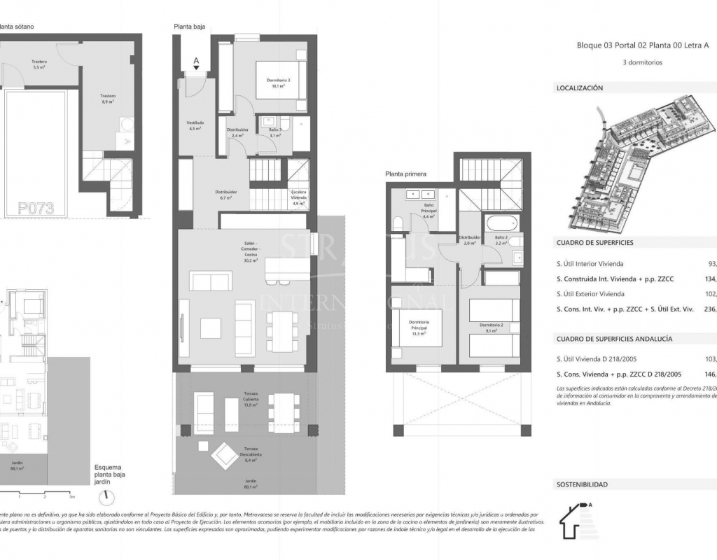 NOUVEAU COMPLEXE RÉSIDENTIEL PRÈS D'ESTEPONA Nouvelle construction d'un développement exclusif situé à Cancelada, l'un des meilleurs quartiers du nouveau Golden Mile d'Estepona. Le complexe résidentiel comprend 82 propriétés réparties sur 4 étages, principalement des duplex, avec 2 et 3 chambres à coucher avec terrasses et/ou jardins, ainsi que des penthouses avec solariums. Toutes les propriétés disposent d'un débarras et d'un garage, et la plupart d'entre elles offrent une vue magnifique sur la mer Méditerranée. Le complexe dispose d'une piscine, idéale pour profiter de plus de 320 jours de soleil et de beau temps que la Costa del Sol a à offrir, seul ou en famille. Vous aurez également accès à une salle de sport intérieure équipée, à une aire de sport extérieure, à deux terrains de pétanque et au Club House exclusif de Cancelada. Située dans un endroit privilégié, à côté d'Estepona, à quelques minutes de la plage et à proximité des terrains de golf. À seulement 10 minutes de Marbella et 45 minutes de l'aéroport international de Malaga. Vous pourrez profiter d'une réelle qualité de vie, avec une température moyenne annuelle de 20º et plus de 320 jours de soleil par an. Vous pourrez profiter d'une grande variété de terrains de golf, de kilomètres de côtes tranquilles, du soleil, de la nature et de la gastronomie de la région, de ses restaurants internationaux à sa cuisine locale accueillante. L'hôtel allie parfaitement la tradition de ses rues pavées, de ses maisons blanchies à la chaux et de ses patios avec leurs pots de fleurs colorés, à la modernité et aux meilleures installations de loisirs de la Costa del Sol. Sa situation privilégiée entre la mer et la montagne en fait l'une des destinations touristiques les plus attrayantes de la province.Features