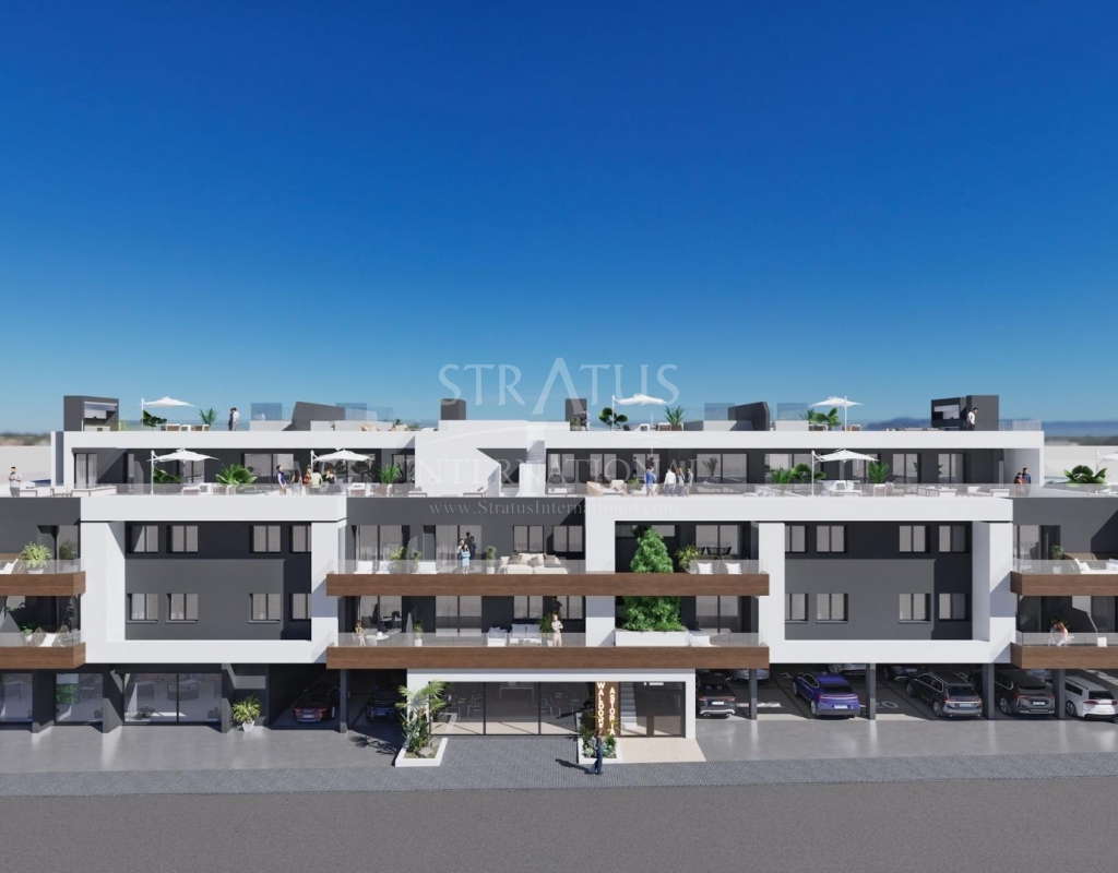 NOUVELLE CONSTRUCTION RÉSIDENTIELLE À BENIJOFAR Nouvelle construction résidentielle avec piscine commune sur le toit, située au centre du charmant village de Benijofar. Vous pouvez choisir des appartements modernes avec terrasses ou des penthouses avec solarium. Propriétés modernes avec cuisine ouverte et salon, 2 et 3 chambres à coucher, 2 salles de bains, terrasses. Un parking souterrain est disponible en option moyennant un supplément. Benijofar est un joli village avec une charmante église et une place attrayante située à l'intérieur des terres sur la Costa Blanca sud, à proximité des stations touristiques de Guardamar del Segura et Torrevieja. Benijofar est également un lieu de séjour populaire pour les vacances d'été, car il est suffisamment proche des stations balnéaires, tout en étant assez calme pour pouvoir s'en éloigner. Il y a plusieurs terrains de golf à proximité, ainsi que des parcs aquatiques à Rojales et Torrevieja. Les plages les plus proches et les plus belles de Benijofar se trouvent à environ quinze minutes en voiture et font partie des meilleures plages du sud de la Costa Blanca, à Guardamar del Segura et Torrevieja. Des bus partent régulièrement de Benijofar pour Guardamar del Segura et Torrevieja, ce qui permet d'accéder facilement aux plages. L'aéroport d'Alicante se trouve à 20 minutes en voiture et propose des vols réguliers dans toute l'Europe.