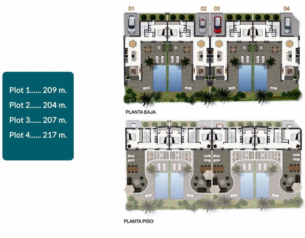 VILLAS NEUVES PRÈS DE ROJALES Projet de construction de 4 villas modernes à Las Heredades, près de Rojales. Les villas sont construites sur 2 étages, avec 3 chambres, 3 salles de bains, cuisine ouverte sur le salon, placards équipés, terrasse. Piscine privée en option. Rojales est un charmant village avec tous les services tels que supermarchés, pharmacies, banques, restaurants et parc naturel situé très près des villas. Il y a plusieurs terrains de golf à proximité ainsi que des parcs aquatiques à Rojales et Torrevieja. Les aéroports d'Alicante et de Murcie sont à 45 minutes en voiture.