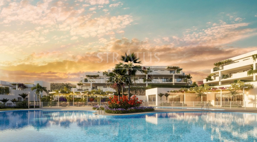 Résidence de golf de luxe à Casares, Costa del Sol Découvrez un style de vie exceptionnel dans ce complexe résidentiel exclusif situé en première ligne du Casares Costa Golf, une oasis de sérénité avec seulement 74 appartements et 17 penthouses. Avec des unités de 2 et 3 chambres, ce développement à faible densité offre un environnement paisible et des vues imprenables sur le terrain de golf, la mer Méditerranée et les montagnes environnantes. Situation privilégiée à Casares, Costa del Sol Situé dans la ville pittoresque de Casares, ce complexe se trouve à seulement 10 minutes de la marina de Sotogrande, à 30 minutes de Puerto Banús et à 35 minutes de Marbella. Il se trouve également à une courte distance en voiture des plages immaculées de Tarifa et de la province de Cadix. Les amateurs de golf apprécieront la proximité de certains des meilleurs terrains de golf d'Europe, situés à seulement 10 minutes. La station est bien desservie, avec un accès facile à la N340 et à l'autoroute AP-7. Elle se trouve à environ 1 heure de l'aéroport international de Malaga et à 25 minutes de l'aéroport de Gibraltar. Des maisons spacieuses avec des vues imprenables Chaque résidence dispose de vastes terrasses ou de grands jardins qui s'intègrent parfaitement au climat méditerranéen et aux vues imprenables sur le terrain de golf, la mer et les montagnes. Les espaces de vie ouverts renforcent la sensation d'espace et encouragent les échanges entre les membres de la famille. Les cuisines de style italien sont entièrement équipées d'appareils électroménagers haut de gamme, créant ainsi un espace à la fois élégant et fonctionnel. Aménagements de classe mondiale Le complexe dispose de deux grandes piscines entourées de jardins luxuriants, avec des vues à couper le souffle sur le terrain de golf et la mer. Les amateurs de fitness disposent d'une salle de sport entièrement équipée et d'un simulateur de golf. Un salon gastronomique et des zones de détente offrent un espace de relaxation et d'interaction avec la communauté, tandis que l'espace barbecue extérieur est parfait pour des moments inoubliables en famille et entre amis. Distances principales Aéroport de Málaga : 91 km Aéroport de Gibraltar : 37 km Marina de Sotogrande : 12 km Puerto Banús : 43 km Marbella : 50 km Ce complexe est un mélange idéal de divertissement et de détente, offrant un mode de vie luxueux et sain dans un cadre inégalé sur la Costa del Sol.Features