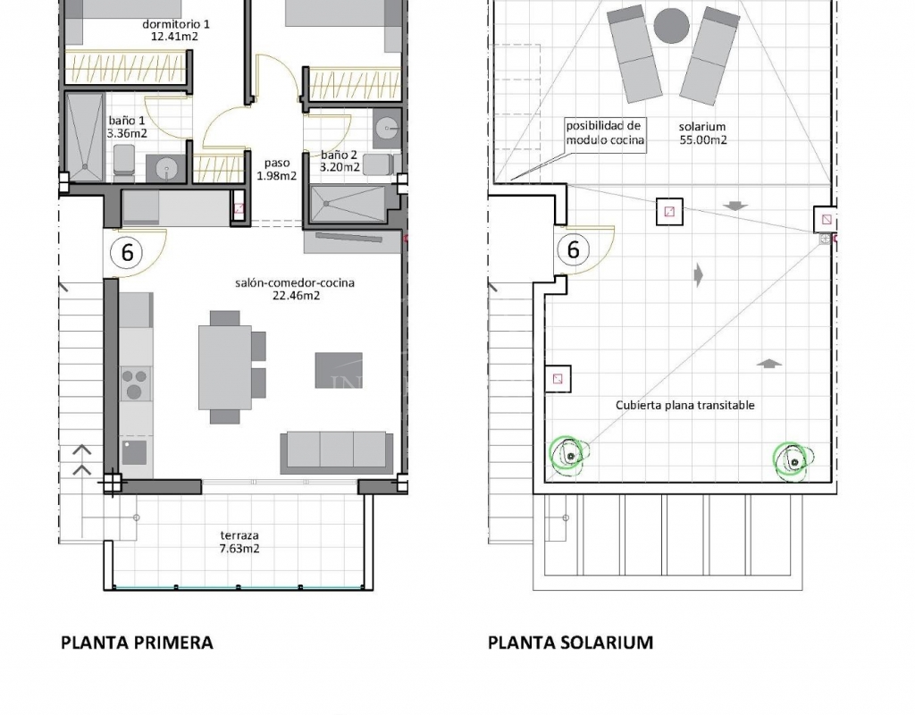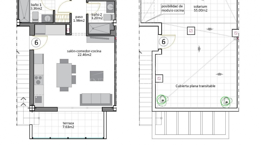 Bungalows nouvellement construits à San Pedro del Pinatar - Situation privilégiée à 500 m de la plage Maisons exclusives de style boutique près de la côte Découvrez ces élégants bungalows neufs au cœur de San Pedro del Pinatar, à seulement 500 mètres des superbes plages de la Mar Menor. Ce lotissement de charme ne comprend que huit maisons caractéristiques, alliant design moderne, confort et mode de vie côtier paisible. Modèles disponibles pour s'adapter à votre style de vie Modèle rez-de-chaussée/jardin : Ce modèle comprend une terrasse à l'avant et un patio spacieux à l'arrière, parfaits pour vivre à l'extérieur. Modèle Penthouse Loft : Comprend un solarium privé sur le toit et une terrasse avant, offrant des vues dégagées et une abondance de lumière. Détails du modèle rez-de-chaussée/jardin Entrez dans un espace de vie lumineux qui se connecte de manière transparente à la salle à manger et à une cuisine entièrement équipée. De grandes portes coulissantes en verre laissent entrer la lumière naturelle, créant une ambiance ouverte et accueillante. L'aménagement comprend deux chambres spacieuses, dont la chambre principale dotée d'une salle de bains attenante, ainsi qu'une salle de bains familiale moderne. Points forts du modèle Penthouse L'accès au penthouse se fait par un escalier privé menant à une grande terrasse. À l'intérieur, un salon et une salle à manger ouverts se mêlent à une cuisine entièrement équipée. Deux chambres à coucher sont incluses, la chambre principale disposant d'une salle de bains attenante. Un solarium privé sur le toit, accessible depuis la cuisine, constitue un endroit idéal pour se détendre ou se divertir. Des rangements supplémentaires au rez-de-chaussée assurent la commodité de l'ensemble. Principales caractéristiques et commodités Éclairage LED intérieur et extérieur. Cuisine entièrement équipée avec plaque de cuisson à induction, four, lave-vaisselle et réfrigérateur/congélateur. Climatisation installée. Place de parking réservée. Jardin commun paysager avec piscine pour les résidents. San Pedro del Pinatar : charme côtier et commodité Situé sur les magnifiques côtes de la Mar Menor et de la Méditerranée, San Pedro del Pinatar est un paradis pour les amateurs de sports nautiques, de voile et de plage. La région voisine de Lo Pagán offre des bains de boue naturels, des eaux calmes et des services tout au long de l'année, notamment des boutiques, des restaurants et des installations de loisirs. Distances des principaux centres d'intérêt : Centre commercial Dos Mares : Centre commercial Dos Mares : 5 km Aéroport de Murcia/Corvera : 30 km Aéroport d'Alicante : 75 km Terrains de golf locaux : 10-20 km Marina et clubs de voile : 2 km Réservez votre maison de rêve dès aujourd'hui L'achèvement des travaux étant prévu pour la fin de l'année 2025, c'est le moment idéal pour réserver votre nouvelle maison à San Pedro del Pinatar. Ne manquez pas cette occasion de profiter d'un mélange d'élégance moderne et de tranquillité côtière. Contactez-nous dès aujourd'hui pour en savoir plus ou pour organiser une visite !