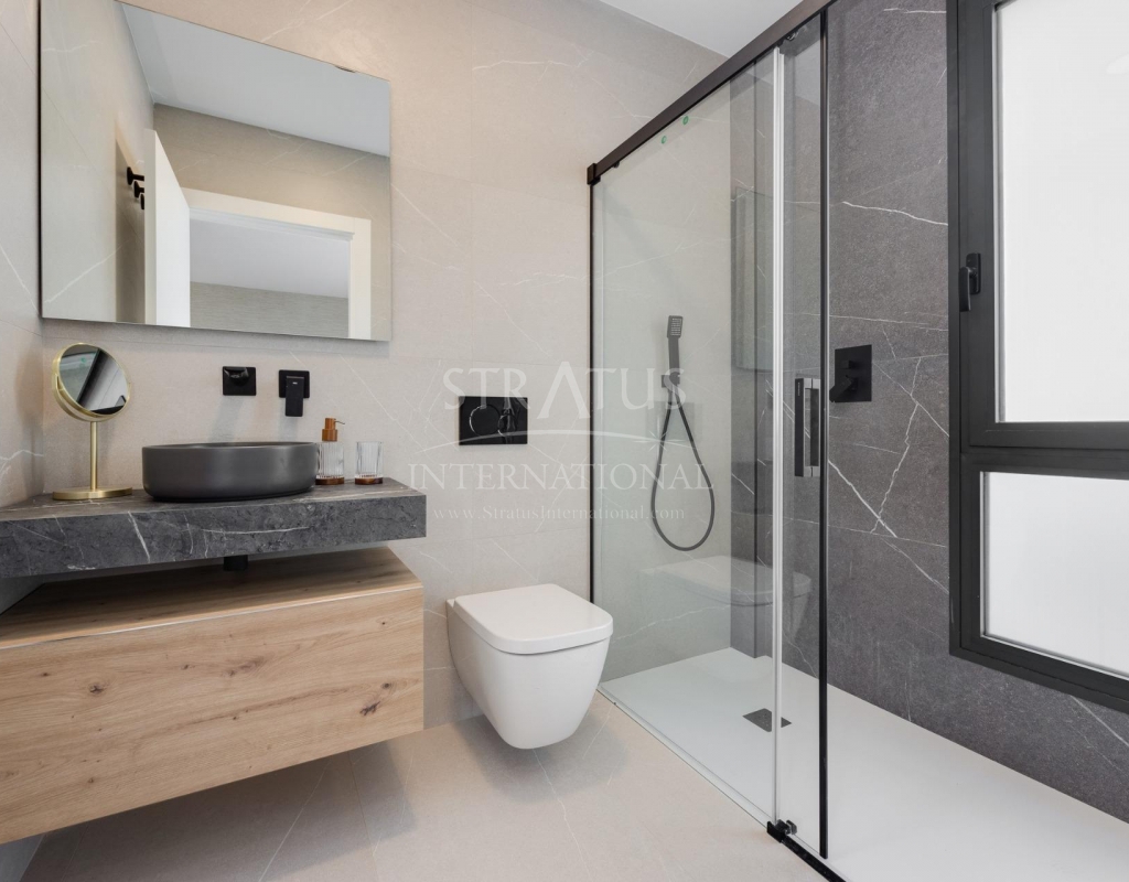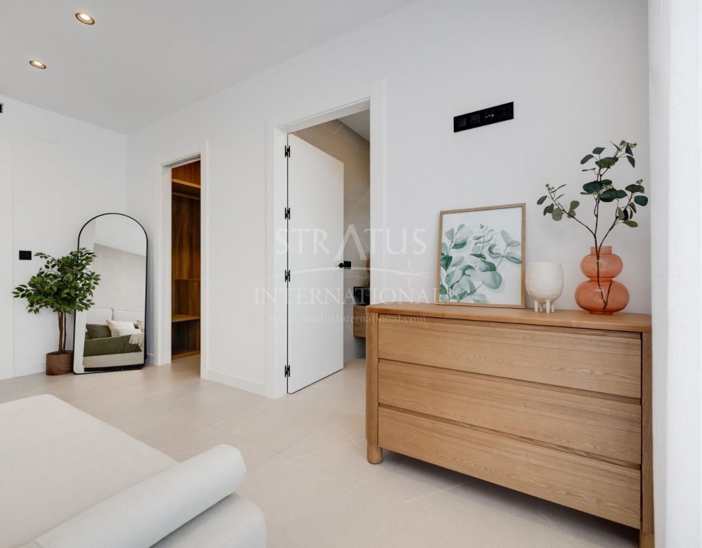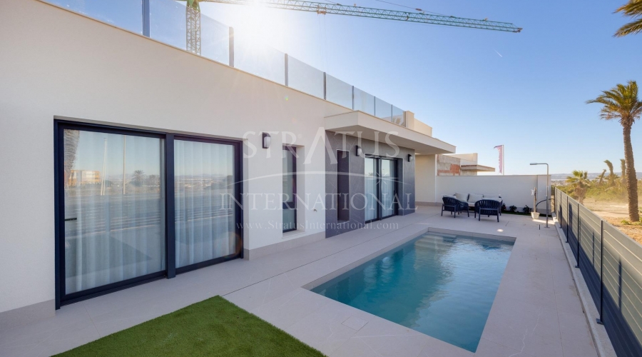Villas neuves à vendre à Torrevieja - 2 km de la mer Découvrez ces superbes villas neuves situées dans le quartier recherché de Torrevieja, à seulement 2 km de la côte méditerranéenne. Offrant un mélange parfait de luxe, de confort et de praticité, ces maisons de 3 chambres et 2 salles de bains sont conçues pour ceux qui recherchent un style de vie sophistiqué avec tous les avantages de la vie côtière. Conception spacieuse et finitions de haute qualité Ces villas de plain-pied ont été conçues pour offrir un maximum de confort et de facilité de vie. Avec un plan ouvert, elles offrent un vaste espace pour la détente et le divertissement. Les villas présentent des finitions de haute qualité, notamment des fenêtres en aluminium à rupture de pont thermique, du double vitrage Climalit et la pré-installation d'un système d'air conditionné. Pour plus de commodité, les maisons comprennent des volets électriques, des salles de bains modernes avec des bacs à douche en résine et des robinets noirs intégrés, ainsi qu'un parking privé dans le garage souterrain avec un espace de stockage supplémentaire. Piscine privée et solarium avec vue imprenable Sortez dans votre oasis privée, où vous pourrez profiter du luxe d'une piscine privée dans votre propre jardin. Depuis le solarium sur le toit, profitez de la vue imprenable sur la lagune salée de La Mata et les environs, et admirez les spectaculaires couchers de soleil chaque soir. La propriété est située dans la partie la plus élevée de Torrevieja, ce qui garantit à la fois l'intimité et des vues impressionnantes. Aménagements communautaires exclusifs Le projet propose plusieurs équipements collectifs, notamment des jardins paysagers, un circuit de gymnastique suédoise et un terrain de pétanque, parfaits pour se détendre et se divertir. Que vous passiez du temps seul ou que vous vous réunissiez avec vos voisins, cette villa offre un environnement parfait pour une vie paisible et une interaction dynamique avec la communauté. Situation privilégiée à Torrevieja Ces villas sont entourées de services essentiels et d'options de loisirs. L'aéroport d'Alicante-Elche se trouve à 45 minutes en voiture (43 km), ce qui facilite les déplacements internationaux. Pour le shopping et la restauration, le centre commercial Habaneras est à seulement 3 km, offrant une variété de magasins, de restaurants et d'options de divertissement. Découvrez le style de vie méditerranéen Torrevieja, sur la côte sud d'Alicante, bénéficie de plus de 300 jours de soleil par an et d'une température moyenne annuelle agréable de 20°C. La ville est réputée pour ses belles plages, ses promenades animées et sa délicieuse cuisine méditerranéenne, ce qui en fait l'endroit idéal pour la détente et l'aventure. Avec ses activités familiales et son riche patrimoine culturel, Torrevieja promet un mode de vie épanouissant tout au long de l'année. La maison de vos rêves vous attend Ne manquez pas l'occasion de posséder une villa de luxe dans l'une des villes côtières les plus prisées d'Espagne. Que vous soyez à la recherche d'une résidence permanente ou d'une retraite de vacances, ce développement exclusif offre le cadre idéal pour expérimenter le meilleur de la vie méditerranéenne. Planifiez une visite dès aujourd'hui et faites le premier pas pour que la maison de vos rêves devienne une réalité !Features