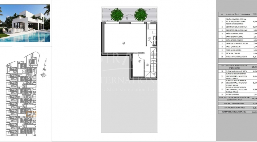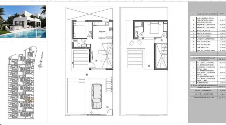 Villas neuves à Finestrat - Luxe, nature et vues sur la mer Résidence exclusive à Sierra Cortina, Benidorm-Finestrat Découvrez ce nouveau projet résidentiel de luxe à Sierra Cortina, Finestrat, l'une des zones les plus exclusives de la Costa Blanca. Ce lotissement propose 30 villas au design avant-gardiste, avec des options de villas jumelées et individuelles, toutes avec des vues spectaculaires sur la mer et les montagnes. Situé dans un cadre paisible, mais proche de toutes les commodités, ce lotissement est idéal pour ceux qui recherchent l'intimité, le confort et l'accès aux meilleures plages et aux meilleurs services de Benidorm. Design moderne et espace de vie Les villas ont été conçues dans un style contemporain, optimisant la lumière naturelle et les vues panoramiques. Vous pourrez choisir parmi différents modèles avec des options de 2 à 4 chambres, et certains modèles comprennent un sous-sol avec patio anglais, offrant la possibilité d'ajouter des chambres supplémentaires. Chaque maison présente les caractéristiques suivantes 2 étages avec terrasses privées avec vue sur la mer. Piscine privée et jardin pour votre plaisir. Garage sur le terrain, avec espace pour votre véhicule. Cuisine ouverte intégrée au salon. Placards aménagés et espaces de rangement. Buanderie pour plus de commodité. Situation privilégiée sur la Costa Blanca Cette résidence exclusive est située à Sierra Cortina, l'une des zones les plus prestigieuses de la Costa Blanca, entourée par la nature et avec un accès à des services de première classe. À seulement 3 km de la mer, ce projet est situé à côté de deux terrains de golf et à proximité du parc à thème Terra Mitica et de l'hôtel de luxe Asia Gardens. Il bénéficie également de connexions rapides avec les principaux axes routiers et aéroports de la région. Distances des principaux points d'intérêt Plages de Benidorm - 3 km. Terrains de golf Villaitana et Sierra Cortina - 2 km. Centre commercial La Marina - 2 km. Parc à thème Terra Mitica - 1,5 km. Aéroport d'Alicante - 40 km. Vivre dans une zone exclusive avec toutes les commodités Finestrat est une charmante commune de la Marina Baixa, située à quelques minutes de Benidorm. La combinaison de la montagne et de la mer, ainsi que l'infrastructure moderne, en font un endroit idéal pour vivre ou investir. Ne manquez pas l'occasion d'acquérir une villa neuve dans cet endroit privilégié. Contactez-nous dès aujourd'hui pour plus d'informations et pour organiser une visite.Features