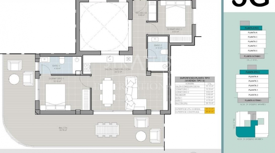 Élégant immeuble résidentiel à 60 m de la plage El Acequion à Torrevieja 23 logements fonctionnels avec un choix d'appartements de 1, 2 et 3 chambres et de penthouses avec de grandes terrasses privées. Places de parking en sous-sol en option pour plus de commodité. Profitez de la vie à quelques pas de la Méditerranée. Entouré de tout ce dont vous avez besoin (supermarchés, écoles, restaurants, parcs et bars de plage), c'est l'endroit idéal pour vivre toute l'année ou profiter d'une résidence secondaire. Chaque logement est soigneusement conçu pour maximiser la lumière naturelle, l'espace et la fonctionnalité. Certaines maisons disposent d'une terrasse privée ou d'une buanderie. Sur le toit, les résidents peuvent profiter d'un solarium commun avec un espace lounge relaxant et une piscine, idéal pour profiter du soleil et de la brise marine toute l'année. Distances des points clés : Plage d'Acequión : 60 m Centre-ville de Torrevieja : 500 m Port de plaisance Marina Salinas : 1,5 km Hôpital universitaire de Torrevieja : 5,5 km Parcours de golf Villamartín : 10 km Centre commercial Habaneras : 3 km Aéroport d'Alicante : 45 km Finitions haut de gamme dans chaque logement Les logements ont été construits avec des matériaux de première qualité et un design contemporain : Menuiserie extérieure en aluminium avec rupture de pont thermique et double vitrage Stores motorisés dans les chambres. Porte d'entrée blindée Cuisine équipée avec éléments hauts et bas Eau chaude produite par un système aérothermique Pré-installation de la climatisation Salles de bains avec meubles, miroirs et vitres fixes dans les douches. Ascenseur dans l'immeuble Vivez à deux pas de la mer et du centre-ville Torrevieja est l'une des villes côtières les plus dynamiques et les plus en expansion de la Costa Blanca, célèbre pour son climat, ses plages, ses salines et sa vie culturelle. Ce complexe est idéal comme résidence permanente, investissement ou résidence secondaire pour les vacances. Contactez-nous dès aujourd'hui pour obtenir plus d'informations ou pour organiser une visite et vous assurer votre maison en bord de mer à Torrevieja. Torrevieja est l'une des villes côtières les plus dynamiques et en pleine croissance de la Costa Blanca, célèbre pour son climat, ses plages, ses salines et sa vie culturelle. Cette promotion est idéale comme résidence principale, investissement ou résidence secondaire pour les vacances. Contactez-nous dès aujourd'hui pour plus d'informations ou pour organiser une visite et assurez-vous votre maison en bord de mer à Torrevieja.Features