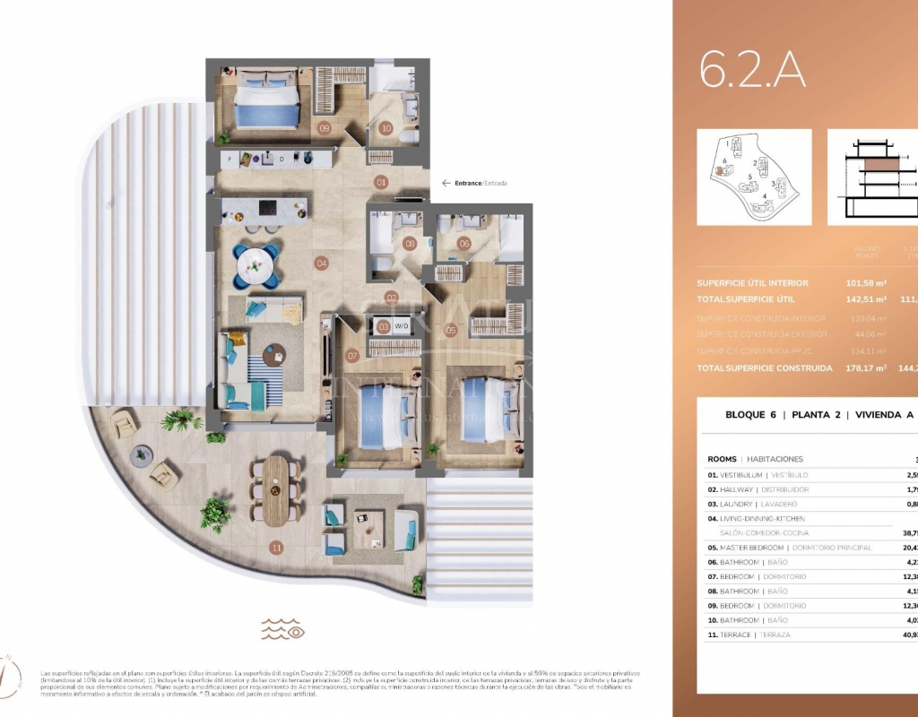 Appartements neufs de luxe à Cerrado del Águila Golf, Mijas, avec vue sur la mer et le golf Découvrez un style de vie exclusif dans ce complexe moderne récemment construit, situé dans le prestigieux quartier de Cerrado del Águila Golf, à Mijas. Entouré par la nature et offrant une vue panoramique à 360º sur la mer Méditerranée, les montagnes et le terrain de golf, ce complexe offre la combinaison parfaite entre élégance, confort et commodité sur la Costa del Sol. Emplacement privilégié à Mijas Idéalement situé entre Fuengirola et Mijas, à seulement 20 minutes de l'aéroport de Malaga, ce complexe résidentiel fermé bénéficie d'une position privilégiée avec un accès facile à Marbella, aux plages, aux zones commerciales et aux attractions culturelles. La plage est à moins de 3 km, tandis que les amateurs de golf apprécieront la proximité des parcours de golf Cerrado del Águila et El Chaparral, situés à moins de 5 km. Le nouveau Costa del Sol Park se trouve à proximité et offre des espaces verts et des zones de loisirs. Distances des principaux points d'intérêt : Plage : 3 km Cerrado del Águila Golf Club : 200 m El Chaparral Golf : 5 km Fuengirola : 6 km Marbella : 30 km Aéroport de Malaga : 25 km Des maisons élégantes au design moderne Le projet se compose de 6 bâtiments de charme comprenant au total 71 appartements haut de gamme, allant de 1 à 4 chambres. Vous avez le choix entre des appartements au rez-de-chaussée avec jardin privé, des appartements aux étages intermédiaires avec grandes terrasses ou des penthouses avec vastes terrasses ouvertes. Les intérieurs sont baignés de lumière naturelle grâce à des baies vitrées, tandis que les grands espaces extérieurs offrent une vue imprenable sur la mer et le golf. Les prestations haut de gamme comprennent : Porte d'entrée blindée Climatisation entièrement installée avec système aérothermique Chauffage au sol (électrique dans les salles de bains) Salles de bains avec armoires, miroirs et parois de douche fixes Cuisines entièrement équipées avec appareils électroménagers Équipements de style resort Profitez d'équipements communs exceptionnels conçus pour la détente et le divertissement, notamment : Piscines pour adultes et enfants Spa avec sauna infrarouge, jacuzzi et hammam Salle de sport moderne avec vue sur la mer Salle de yoga et salon gastro-bar Aire de jeux pour enfants, salle de jeux et centre de jeux vidéo Espaces de coworking avec vue panoramique Complexe sécurisé avec vidéosurveillance Votre nouvelle vie sur la Costa del Sol Ce projet allie design durable, luxe moderne et emplacement privilégié pour offrir une expérience de vie unique. Que ce soit comme résidence permanente, maison de vacances ou investissement, c'est une occasion rare de devenir propriétaire d'une maison dans l'un des quartiers les plus exclusifs de Mijas. Contactez-nous dès aujourd'hui pour réserver votre appartement dans ce complexe exceptionnel.Extras