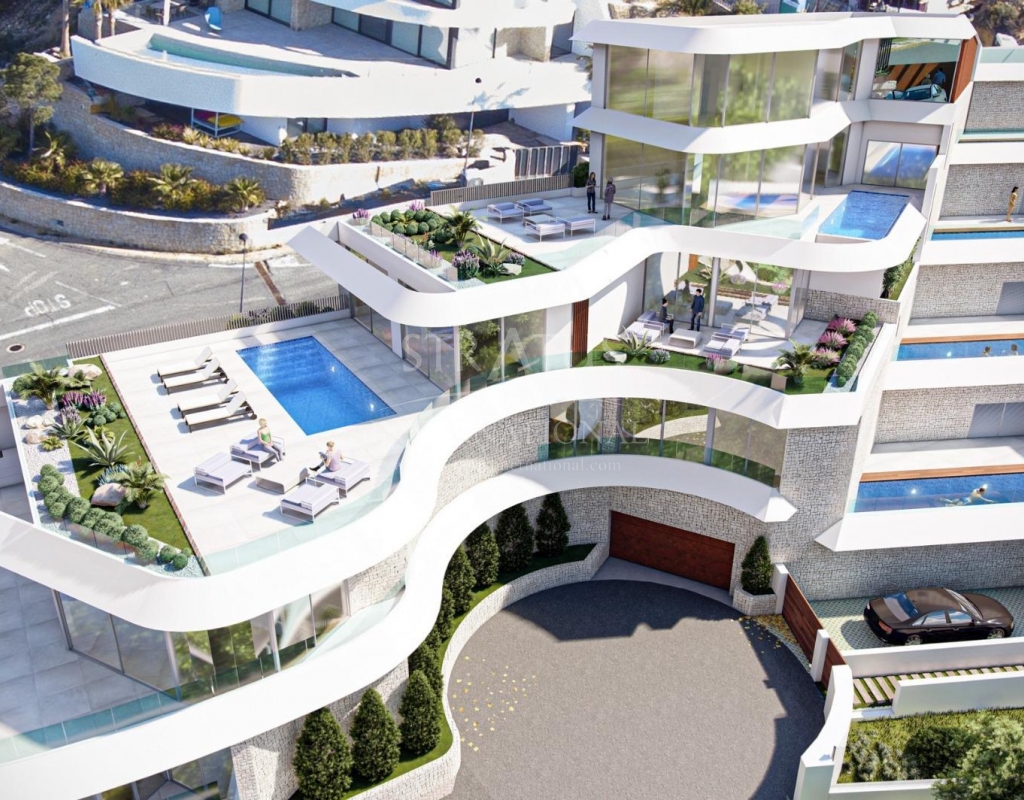 Appartements et villas de luxe en bord de mer à Mascarat, Calpe: la vie méditerranéenne redéfinie Promotion exclusive de logements neufs avec vue sur la mer près du port de Mascarat, Calpe Découvrez un nouveau niveau de luxe côtier avec cette promotion immobilière exceptionnelle située près du port pittoresque de Mascarat, entre Calpe et Altea, sur la Costa Blanca. Ce projet exclusif comprend 4 villas design, 2 penthouses et 8 appartements élégants, tous dotés d'une piscine privée et d'une vue panoramique sur la mer Méditerranée et le port de plaisance animé. À seulement 400 mètres de la côte, ce lotissement unique combine une architecture moderne, des finitions de première qualité et un emplacement imbattable pour profiter d'un style de vie extraordinaire. Emplacement privilégié avec d'excellentes connexions et services Stratégiquement située à seulement 55 km de l'aéroport international d'Alicante, la résidence est facilement accessible en voiture en moins de 50 minutes. Le pittoresque port de plaisance de Mascarat se trouve à seulement 350 mètres, tandis que le supermarché le plus proche est à seulement 1,1 km de la résidence. Les centres-villes de Calpe et d'Altea, connus pour leur charme historique, leurs restaurants, leurs boutiques et leurs événements culturels, ne sont qu'à quelques minutes. Les amateurs de golf trouveront le célèbre Altea Club de Golf à seulement 8 km, et le prestigieux club nautique Marina Greenwich est pratiquement à deux pas. Appartements élégants avec piscine privée et vue sur la mer La promotion propose 6 appartements exclusifs, chacun doté de grandes terrasses, de beaux jardins et d'une piscine privée. Tous les appartements disposent de trois chambres, de deux salles de bains et d'un WC supplémentaire pour les invités. Tous les logements disposent de deux places de parking attribuées dans le garage souterrain surveillé, ainsi que d'un accès à une grande piscine semi-olympique communautaire et à un funiculaire panoramique qui relie les différents niveaux de la communauté. Chaque appartement dispose d'un espace de type cave avec buanderie et débarras relié au logement. Magnifiques penthouses en duplex De véritables joyaux dans les hauteurs, avec de grandes terrasses, un accès privé par ascenseur privé et tout le confort d'une villa, mais avec la magie des plus belles vues panoramiques. Ils disposent de 4 chambres, 3 salles de bains et un WC. Piscine privée et espace en sous-sol avec buanderie et débarras et accès au logement depuis l'ascenseur privé. Villas design avec des caractéristiques haut de gamme et une intimité totale Les 4 villas luxueuses disposent de quatre chambres, trois salles de bains réparties sur 2 étages, avec des intérieurs ouverts et lumineux qui s'ouvrent sans effort sur de grands espaces extérieurs. Chaque villa dispose d'un ascenseur et d'une piscine privée, de son propre garage et d'un accès aux installations communes de style resort. Les finitions de haute qualité et le souci du détail architectural garantissent que chaque logement offre un maximum de confort, d'élégance et d'intimité. Spécifications haut de gamme et technologie domotique Porte d'entrée avec sécurité renforcée Menuiserie extérieure en aluminium laqué avec rupture de pont thermique Volets occultants motorisés avec commande domotique Cuisines design avec plans de travail Silestone et appareils électroménagers intégrés Chauffage au sol aérothermique et climatisation par conduits Domotique pour l'éclairage, la climatisation, l'ombrage et la détection des fuites Deux places de parking privées par unité Vivez le style de vie méditerranéen à Calpe Vivez des moments uniques au bord de la mer, avec une vue imprenable et un accès à l'un des plus beaux ports de plaisance de la Costa Blanca. Que ce soit comme résidence permanente, comme refuge de vacances ou comme investissement, cette promotion offre une combinaison exclusive de luxe, de nature et de style de vie. Contactez-nous dès aujourd'hui pour organiseFeatures