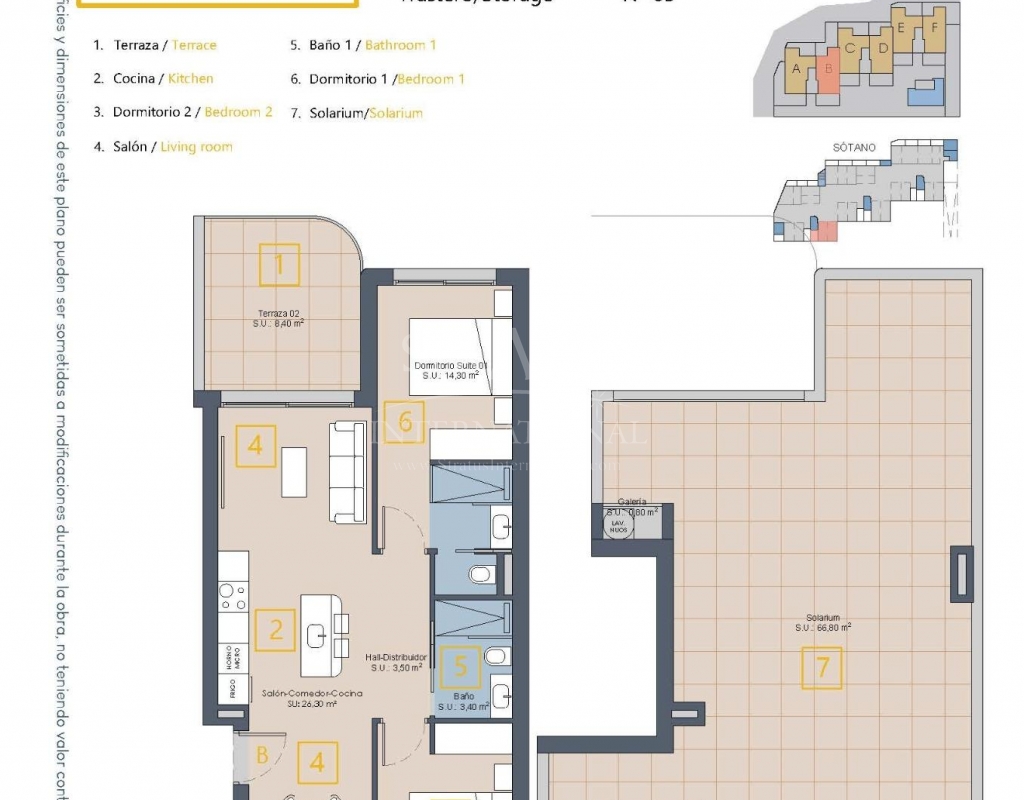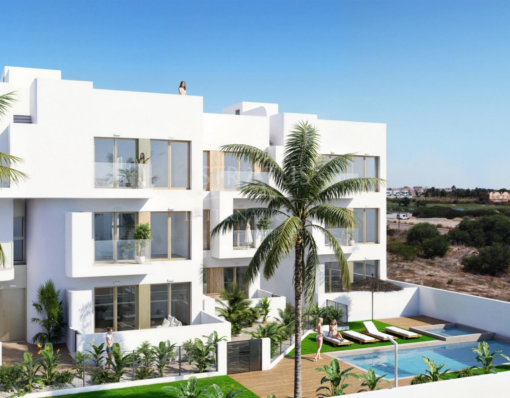 Nouveau complexe résidentiel à Los Alcázares, en première ligne du Serena Golf Une vie exclusive sur la Costa Cálida Découvrez ce nouveau complexe résidentiel à Los Alcázares, idéalement situé en première ligne du Serena Golf et à seulement 1,3 km des plages de la Mar Menor. Niché au cœur de la Costa Cálida, ce projet allie architecture moderne, confort et cadre exceptionnel. Bénéficiant d'excellentes liaisons routières, le complexe se trouve à seulement 30 km de l'aéroport de Murcie (25 minutes) et à 90 km de l'aéroport d'Alicante (55 minutes), offrant un accès facile à Carthagène, Murcie et la Costa Blanca. Des maisons contemporaines au design exceptionnel Le complexe résidentiel comprend 18 appartements élégants et 7 villas exclusives, chacun conçu pour maximiser l'espace, la lumière et la fonctionnalité. Les résidents pourront profiter d'une vue imprenable sur le terrain de golf et, depuis les étages supérieurs, sur les eaux scintillantes de la Mar Menor. Choisissez parmi : Des appartements de 2 ou 3 chambres et 2 salles de bains, tous avec double orientation et deux terrasses pour profiter du soleil toute la journée. Des appartements au rez-de-chaussée avec jardins privés. Des appartements aux étages intermédiaires avec de grandes terrasses. Des penthouses avec deux terrasses, un solarium privé et une vue panoramique. Villas individuelles en première ligne de golf, avec 3 chambres, 2 salles de bains, sous-sol, solarium et piscine privée. Caractéristiques et équipements haut de gamme Chaque logement est équipé de finitions de haute qualité et de tout le confort moderne, notamment : Place de parking et débarras Système d'eau chaude aérothermique Climatisation gainable préinstallée Volets électriques et ensemble d'éclairage complet Salles de bains entièrement équipées avec meubles et parois de douche Piscine commune et jardins paysagers Ascenseur dans les immeubles Emplacement idéal pour les amateurs de golf et de plage Situé dans une enclave privilégiée, le complexe est entouré de la verdure paisible du Serena Golf et se trouve à quelques pas des eaux chaudes et peu profondes de la Mar Menor. Cette région unique offre toute l'année la possibilité de pratiquer la natation, la voile, le paddleboard et d'autres sports nautiques, ce qui en fait un endroit idéal pour se détendre et faire des activités. Distances clés : Plage (Mar Menor) : 1,3 km Serena Golf : adjacent au complexe Centre-ville de Los Alcázares : 2 km Carthagène : 22 km Ville de Murcie : 40 km Aéroport de Murcie : 30 km (25 minutes) Aéroport d'Alicante : 90 km (55 minutes) Assurez-vous un style de vie méditerranéen Ce projet immobilier à Los Alcázares offre la combinaison parfaite entre plage, golf et vie moderne. Que ce soit comme résidence permanente, maison de vacances ou investissement, il offre tout ce dont vous avez besoin pour un authentique style de vie méditerranéen. Contactez-nous dès aujourd'hui pour organiser une visite et vous assurer votre nouvelle maison sur la Costa Cálida.Features