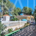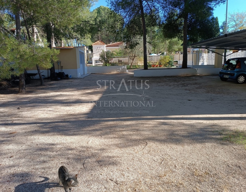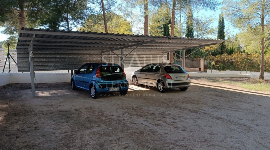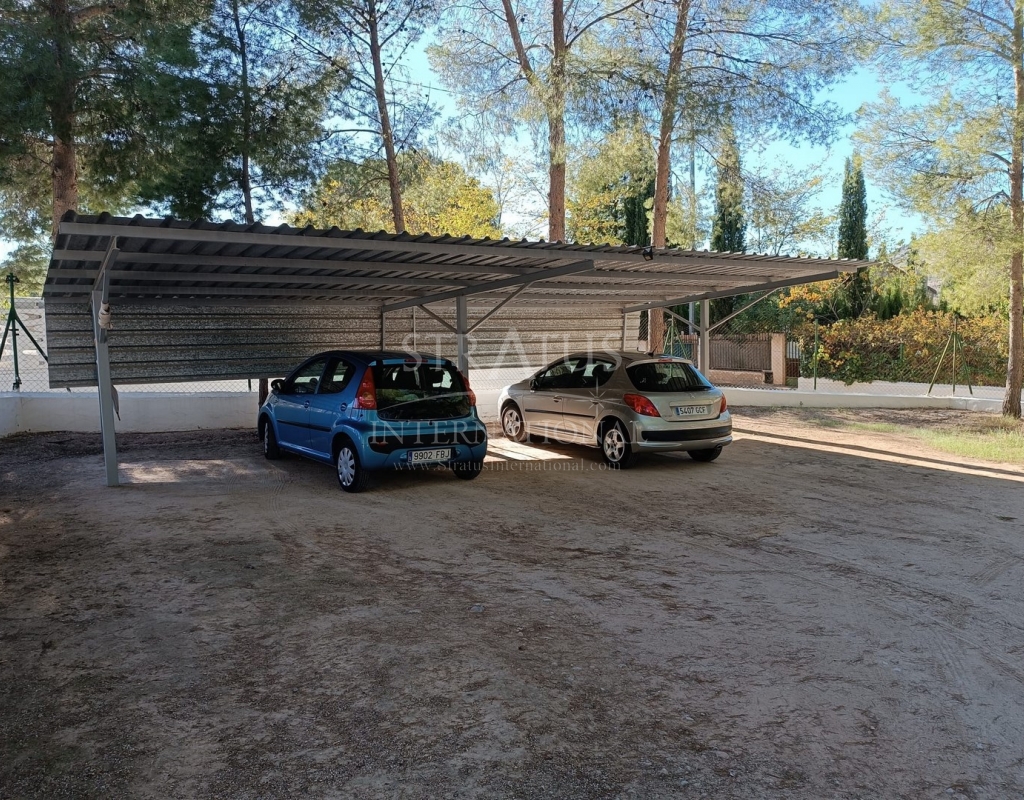 L'extérieur est tout aussi impressionnant, avec un parking couvert pouvant accueillir jusqu'à 4 voitures, un espace de rangement supplémentaire et un jardin luxuriant et bien entretenu, agrémenté d'arbres matures - principalement des pins - offrant un excellent ombrage naturel.
