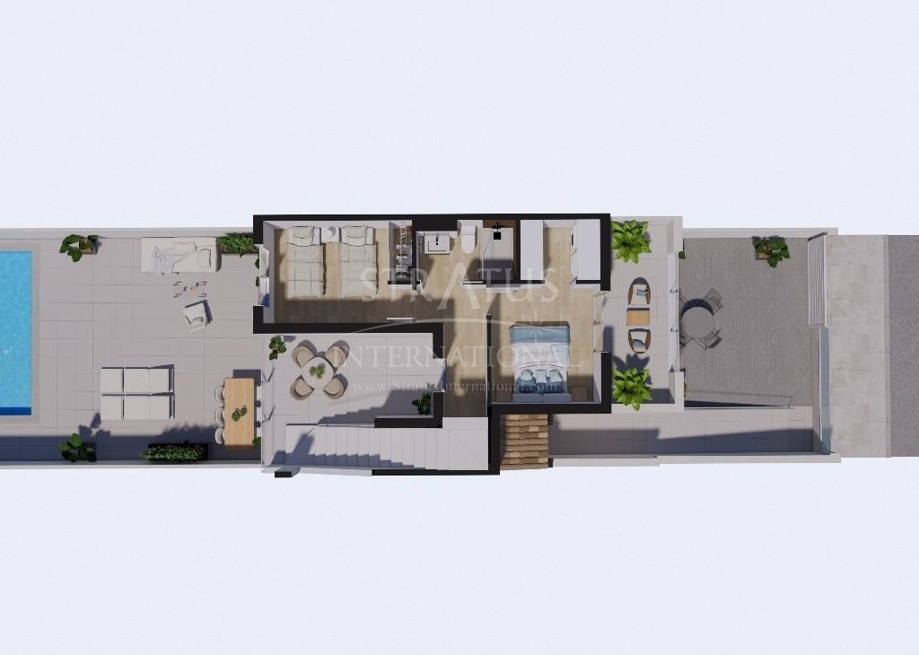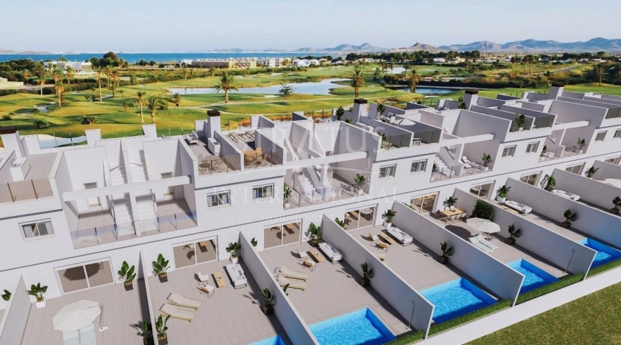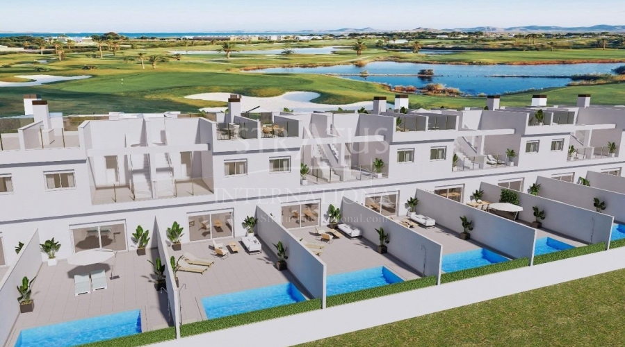Maisons mitoyennes neuves en première ligne du golf La Serena à Los Alcázares Emplacement privilégié près du golf et de la mer Découvrez un lotissement résidentiel exclusif de 31 maisons mitoyennes neuves situées en première ligne du golf La Serena à Los Alcázares, à seulement 600 m de la Mar Menor. Situé au cœur de la Costa Cálida, cet emplacement privilégié combine golf, plage et style de vie méditerranéen. Avec toutes les commodités à proximité et un excellent accès routier, c'est l'endroit idéal pour les vacances et pour y vivre toute l'année. Maisons modernes avec piscine privée et solarium sur le toit Chaque maison présente un design contemporain élégant et des espaces intérieurs lumineux. Les maisons sont réparties sur trois niveaux plus un solarium sur le toit, offrant un maximum de confort et d'intimité : Sous-sol avec garage privé pour 2 voitures et accès à un patio Rez-de-chaussée avec salon et cuisine ouverts donnant sur un jardin et une piscine privée, 1 chambre et 1 salle de bains Premier étage avec 2 chambres, 1 salle de bains et 2 terrasses Solarium sur le toit avec cuisine d'été, idéal pour se détendre et profiter d'une vue panoramique L'orientation est et ouest garantit un excellent éclairage naturel et une vie en plein air tout au long de la journée. Finitions de haute qualité et confort Ces maisons sont construites selon les normes les plus élevées et offrent des caractéristiques haut de gamme, notamment : Piscine privée Garage en sous-sol pour 2 voitures avec porte motorisée Système d'eau chaude aérothermique Climatisation gainable entièrement installée Cuisine meublée et équipée Salles de bains entièrement équipées avec meubles, miroirs et parois de douche Porte d'entrée sécurisée Vivez entre la mer et le fairway Nichée au cœur d'un paysage méditerranéen luxuriant, cette communauté exclusive offre une vie paisible à proximité du parcours de golf Serena, un parcours 18 trous réputé, entouré par la nature et des lacs tranquilles. Les eaux chaudes et peu profondes de la Mar Menor sont parfaites pour la baignade et la pratique de sports nautiques tels que la voile, le paddle surf et le kayak tout au long de l'année. Distances clés : Plage (Mar Menor) : 600 m La Serena Golf : à côté du complexe Centre de Los Alcázares : 2 km Carthagène : 22 km Ville de Murcie : 40 km Aéroport de Murcie : 30 km Aéroport d'Alicante : 90 km Assurez-vous un style de vie méditerranéen Que vous recherchiez une résidence permanente, une maison de vacances ou un investissement rentable, ces maisons offrent luxe, confort et un style de vie côtier de qualité supérieure. Contactez-nous dès aujourd'hui pour organiser une visite et vous assurer votre nouvelle maison à Los Alcázares.Features