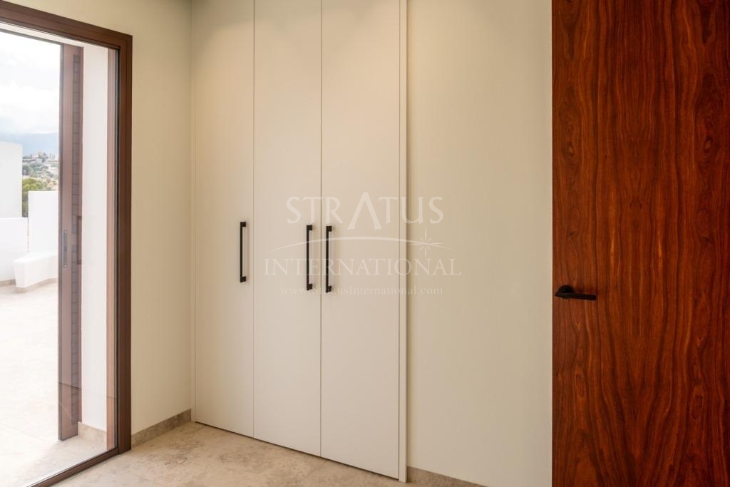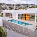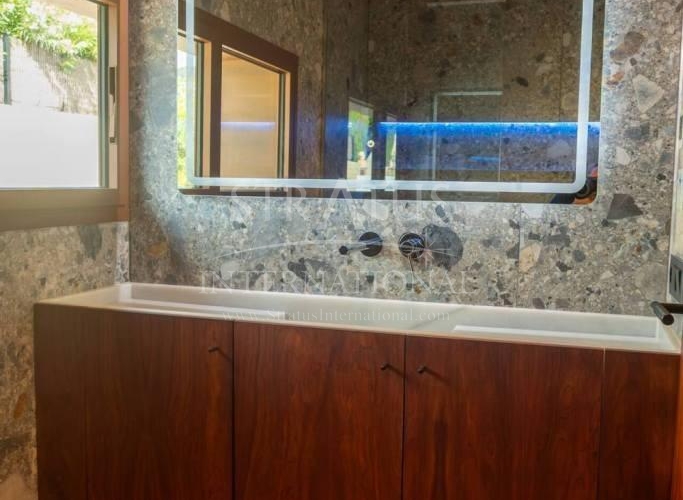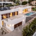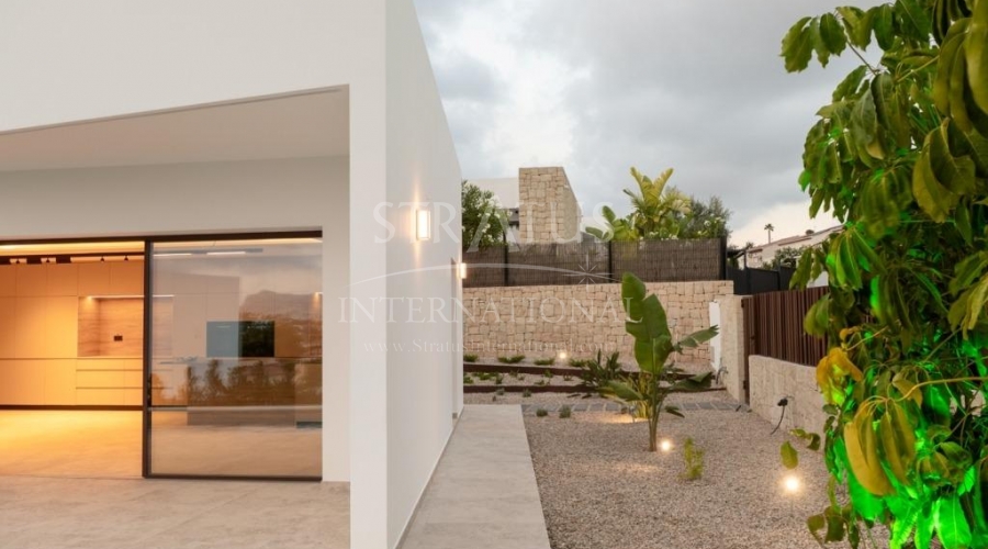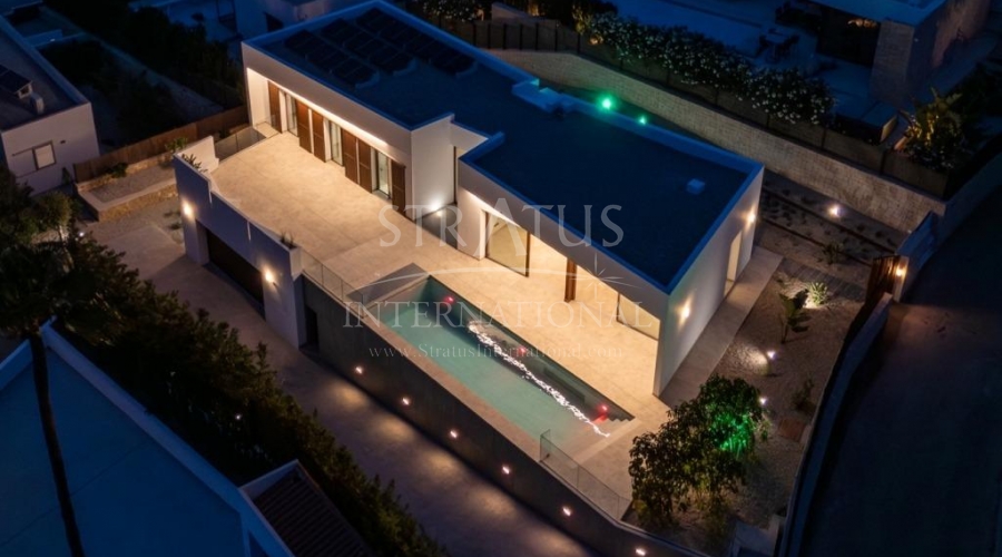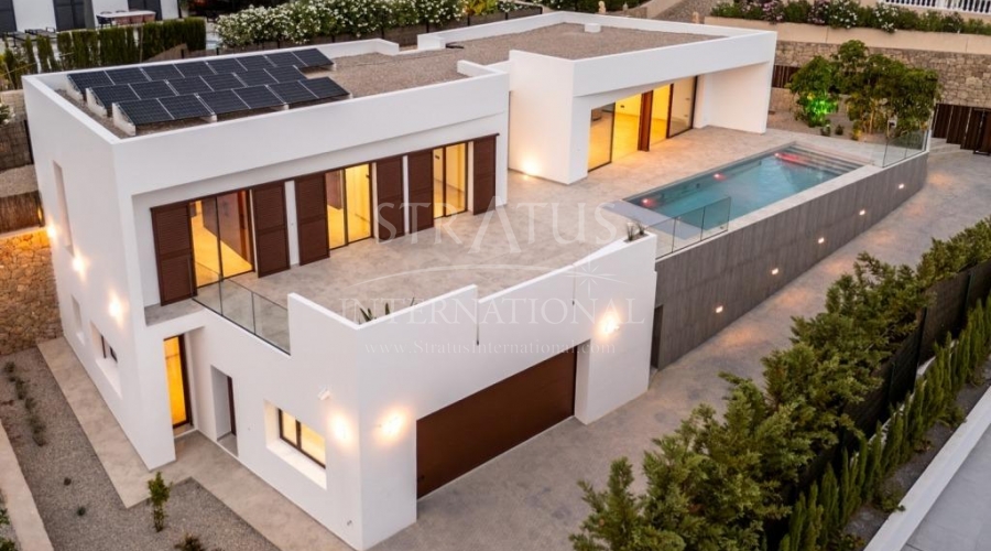 Villa moderne de luxe à vendre à Calpe, Costa Blanca - À seulement 1,5 km de la plage de La Fustera Design contemporain dans un emplacement côtier privilégié Cette villa moderne exceptionnelle, récemment construite et prête à emménager, est située sur la magnifique côte de Benissa, entre les charmantes villes de Calpe et Moraira (Costa Blanca, Alicante). Située à seulement 1,5 km de la plage de La Fustera, l'une des plages Pavillon Bleu les plus prestigieuses de la région, cette maison allie élégance architecturale, matériaux de haute qualité et efficacité énergétique avancée pour offrir un style de vie méditerranéen parfait. Aménagement spacieux avec des finitions luxueuses La villa est répartie sur deux étages conçus pour offrir un maximum de confort et de fonctionnalité. Au rez-de-chaussée, vous trouverez un grand garage pour deux voitures, des toilettes pour invités, une buanderie, un espace spa ou loisirs et une chambre double avec salle de bains et dressing. Un escalier intérieur mène à l'étage supérieur. L'étage supérieur comprend un hall d'entrée accueillant et une cuisine contemporaine ouverte entièrement équipée d'appareils électroménagers haut de gamme, notamment un réfrigérateur-congélateur double, un four, un micro-ondes, un lave-vaisselle et une plaque à induction avec hotte intégrée. Le salon-salle à manger lumineux s'ouvre sur la terrasse principale avec sa spectaculaire piscine privée et son espace bain de soleil. L'espace nuit comprend trois chambres, dont une avec salle de bains attenante, ainsi qu'une salle de bains commune. Toutes les chambres ont un accès direct à la terrasse de la piscine. Caractéristiques haut de gamme Cette propriété comprend des matériaux de première qualité et des systèmes à haute efficacité énergétique pour un confort tout au long de l'année : Climatisation centralisée avec thermostats individuels Chauffage au sol avec pompe à chaleur Système d'eau chaude sanitaire aérothermique Pré-installation pour système d'alarme Fenêtres en aluminium avec rupture de pont thermique et vitrage à faible émissivité Stores motorisés dans les chambres Installation photovoltaïque pour économies d'énergie Piscine chauffée avec couverture automatique et éclairage LED Commandes domotiques pour la gestion de l'éclairage et de la climatisation Espace spa et loisirs avec pré-installation pour jacuzzi, bar et home cinéma Jardin paysager nécessitant peu d'entretien Emplacement privilégié entre Calpe et Moraira Située dans l'un des quartiers résidentiels les plus prisés de la Costa Blanca, la villa bénéficie de la proximité de la mer et des montagnes. La région offre un large choix de plages, de criques, de restaurants et de loisirs, tous à proximité. Distances par rapport aux principaux points d'intérêt Plage de La Fustera : 1,5 km Club nautique Les Basetes : 2 km Calpe : 6 km Moraira : 8 km Club de golf d'Altea : 12 km Aéroport international d'Alicante : 85 km Vivez le rêve méditerranéen Cette villa moderne et luxueuse à Calpe offre un mélange parfait de style, de confort et d'emplacement. Contactez-nous dès aujourd'hui pour organiser une visite et découvrir votre nouvelle vie sur la Costa Blanca.
