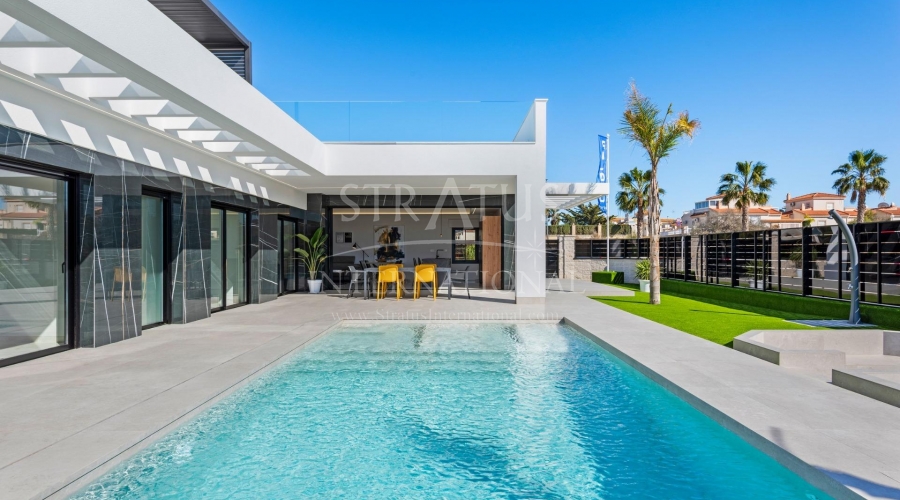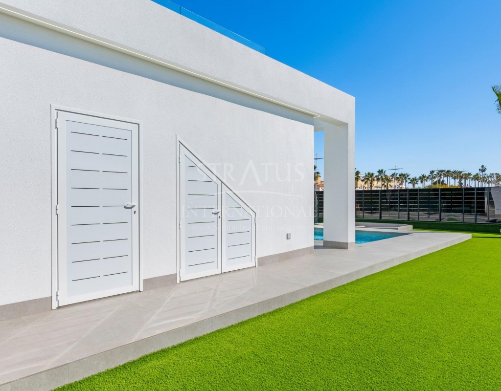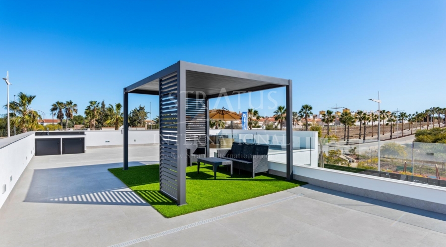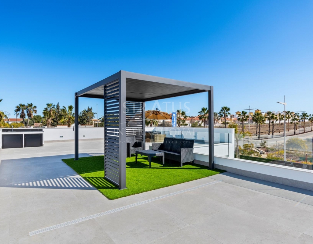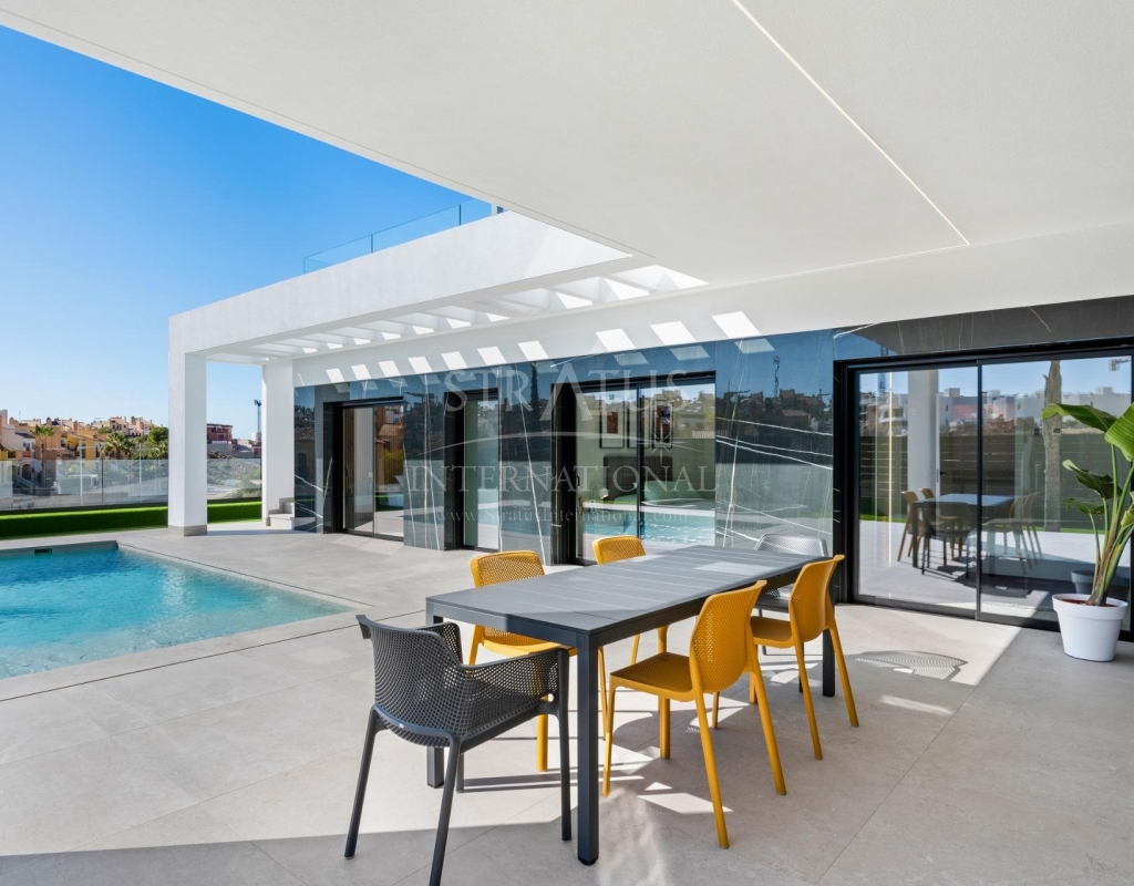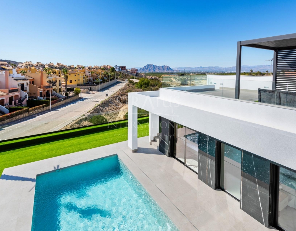 Villas de luxe neuves à La Finca Golf, Algorfa Villas exclusives de plain-pied à côté du Golf La Finca, sur la Costa Blanca Sud Découvrez ce projet résidentiel exclusif de 11 villas indépendantes situées dans le prestigieux complexe La Finca Golf Resort à Algorfa, l'une des zones les plus prisées de la Vega Baja, sur la Costa Blanca Sud. Entouré de paysages verdoyants, de vergers d'agrumes et de fairways vallonnés, cet emplacement offre tranquillité, intimité et un style de vie méditerranéen de grande qualité, tout en restant proche de tous les services essentiels et des attractions côtières. Villas modernes de plain-pied avec piscine privée et solarium Chaque villa est soigneusement conçue sur un seul niveau, offrant confort et fonctionnalité dans toutes les pièces. Les propriétés comprennent 3 chambres spacieuses et 2 salles de bains modernes, une cuisine américaine ouverte et un salon/salle à manger lumineux avec de grandes fenêtres qui s'ouvrent directement sur la terrasse et le jardin privé. À l'extérieur, chaque villa dispose d'une piscine privée, d'une place de parking dans la propriété et d'un impressionnant solarium privé de 150 m², idéal pour profiter du soleil toute l'année. Pour les acheteurs qui souhaitent disposer de plus d'espace, il est possible d'ajouter un sous-sol ou une quatrième chambre à l'étage supérieur, moyennant un coût supplémentaire, ce qui vous permet d'adapter la maison à vos besoins personnels. Spécifications de haute qualité et finitions élégantes Ces villas sont construites avec des matériaux et des finitions haut de gamme pour garantir confort, efficacité et style moderne. Elles comprennent notamment une porte d'entrée renforcée, des volets motorisés, des cuisines entièrement équipées avec des appareils électroménagers et des salles de bains complètes avec meubles, miroirs et parois de douche. Le solarium sur le toit est livré avec une cuisine d'été et une pergola, créant ainsi le cadre idéal pour les repas en plein air et la détente. Un ensemble d'éclairage LED intérieur et extérieur est également inclus, améliorant à la fois le design et l'ambiance. Emplacement privilégié dans le complexe La Finca Golf Resort La Finca Golf Resort est réputé pour son parcours de golf de championnat, son hôtel de luxe, ses installations de spa, ses restaurants et ses zones sportives, le tout dans un environnement sécurisé et bien entretenu. Algorfa est un charmant village espagnol offrant une atmosphère détendue, des magasins locaux et des restaurants traditionnels, tandis que les villes voisines offrent un éventail plus large de services. Distances clés Club de golf La Finca : sur place Plages de Guardamar del Segura : 15 km Centres commerciaux de Torrevieja et Orihuela Costa : 15 km Almoradi, Benijofar et Ciudad Quesada : 5 à 10 km Aéroport international d'Alicante : 35 km Mode de vie méditerranéen et investissement intelligent Avec plus de 300 jours de soleil par an, d'excellentes liaisons routières et la proximité des plages, des terrains de golf et des zones commerciales, ces villas sont idéales comme résidence permanente, maison de vacances ou opportunité d'investissement sur la Costa Blanca. Réservez dès aujourd'hui votre nouvelle villa à La Finca Golf Ne manquez pas l'occasion de devenir propriétaire d'une villa moderne dans l'un des complexes de golf les plus exclusifs d'Algorfa. Contactez-nous dès aujourd'hui pour obtenir plus d'informations ou organiser une visite privée.Features