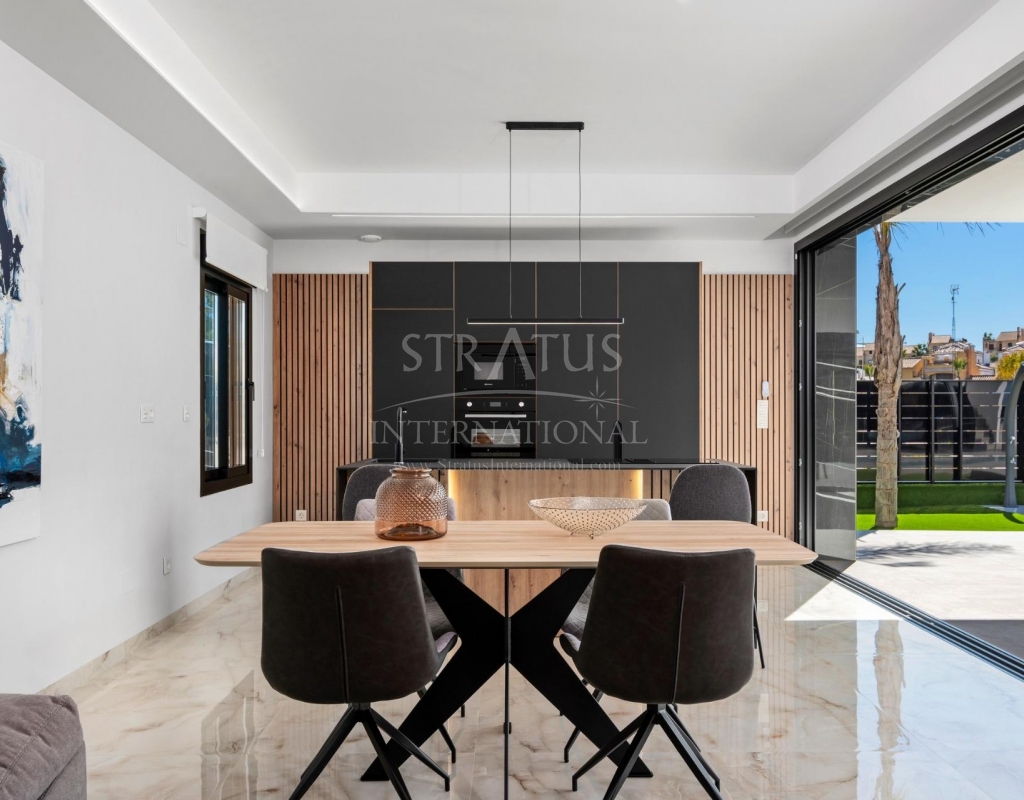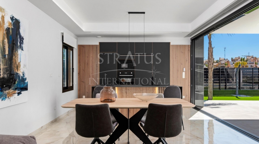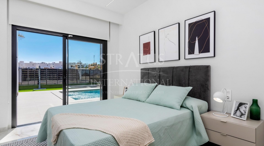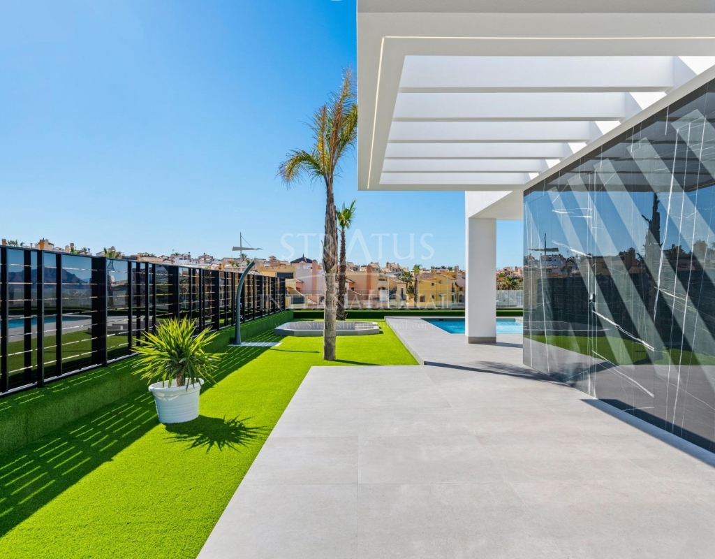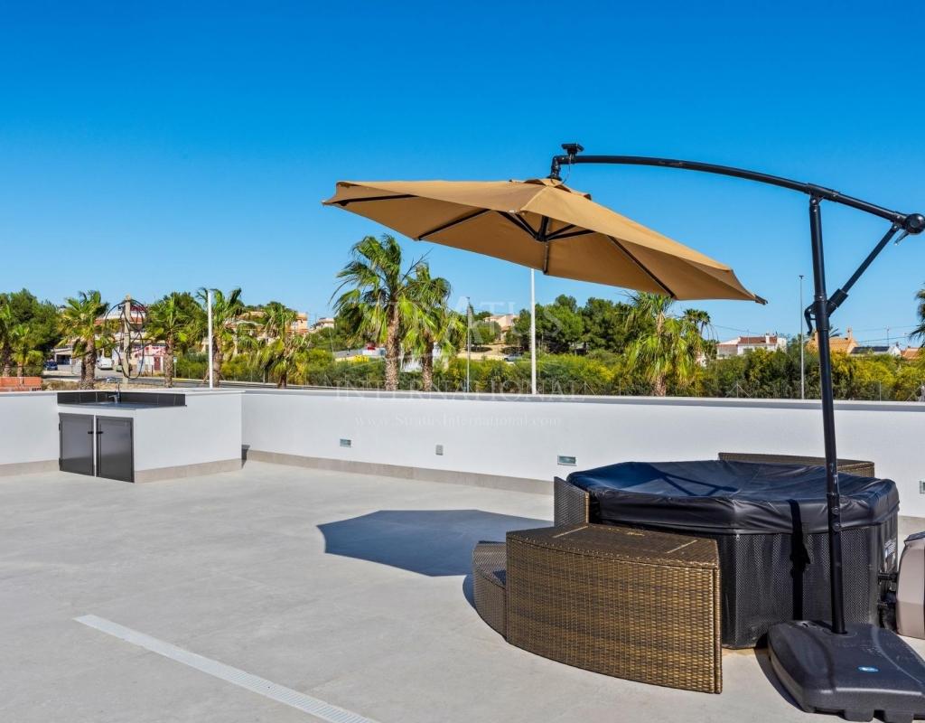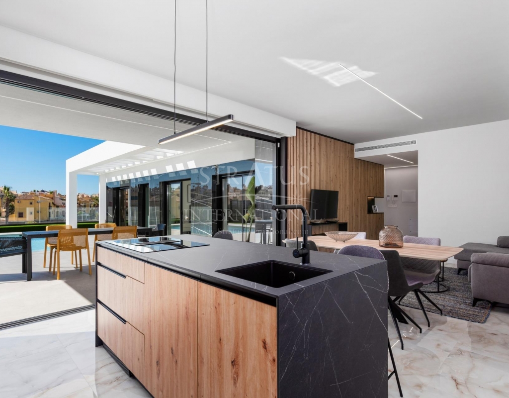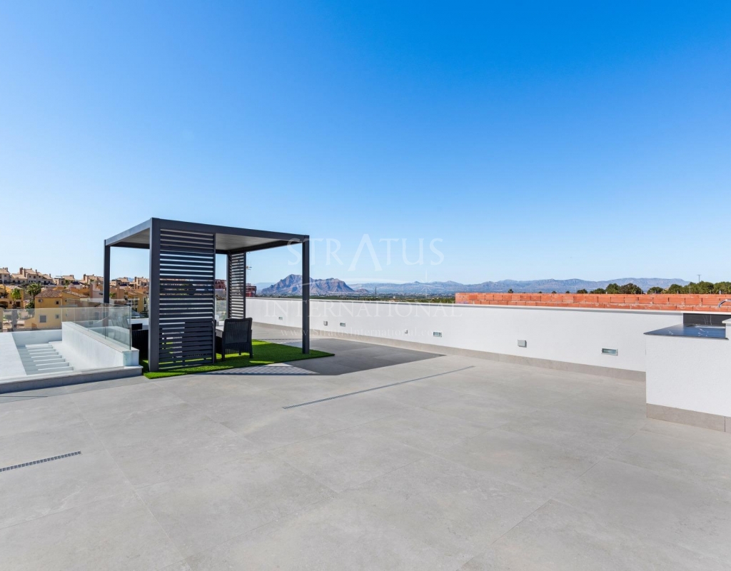 Villas de luxe neuves à La Finca Golf, Algorfa Villas exclusives de plain-pied à côté du Golf La Finca, sur la Costa Blanca Sud Découvrez ce projet résidentiel exclusif de 11 villas indépendantes situées dans le prestigieux complexe La Finca Golf Resort à Algorfa, l'une des zones les plus prisées de la Vega Baja, sur la Costa Blanca Sud. Entouré de paysages verdoyants, de vergers d'agrumes et de fairways vallonnés, cet emplacement offre tranquillité, intimité et un style de vie méditerranéen de grande qualité, tout en restant proche de tous les services essentiels et des attractions côtières. Villas modernes de plain-pied avec piscine privée et solarium Chaque villa est soigneusement conçue sur un seul niveau, offrant confort et fonctionnalité dans toutes les pièces. Les propriétés comprennent 3 chambres spacieuses et 2 salles de bains modernes, une cuisine américaine ouverte et un salon/salle à manger lumineux avec de grandes fenêtres qui s'ouvrent directement sur la terrasse et le jardin privé. À l'extérieur, chaque villa dispose d'une piscine privée, d'une place de parking dans la propriété et d'un impressionnant solarium privé de 150 m², idéal pour profiter du soleil toute l'année. Pour les acheteurs qui souhaitent disposer de plus d'espace, il est possible d'ajouter un sous-sol ou une quatrième chambre à l'étage supérieur, moyennant un coût supplémentaire, ce qui vous permet d'adapter la maison à vos besoins personnels. Spécifications de haute qualité et finitions élégantes Ces villas sont construites avec des matériaux et des finitions haut de gamme pour garantir confort, efficacité et style moderne. Elles comprennent notamment une porte d'entrée renforcée, des volets motorisés, des cuisines entièrement équipées avec des appareils électroménagers et des salles de bains complètes avec meubles, miroirs et parois de douche. Le solarium sur le toit est livré avec une cuisine d'été et une pergola, créant ainsi le cadre idéal pour les repas en plein air et la détente. Un ensemble d'éclairage LED intérieur et extérieur est également inclus, améliorant à la fois le design et l'ambiance. Emplacement privilégié dans le complexe La Finca Golf Resort La Finca Golf Resort est réputé pour son parcours de golf de championnat, son hôtel de luxe, ses installations de spa, ses restaurants et ses zones sportives, le tout dans un environnement sécurisé et bien entretenu. Algorfa est un charmant village espagnol offrant une atmosphère détendue, des magasins locaux et des restaurants traditionnels, tandis que les villes voisines offrent un éventail plus large de services. Distances clés Club de golf La Finca : sur place Plages de Guardamar del Segura : 15 km Centres commerciaux de Torrevieja et Orihuela Costa : 15 km Almoradi, Benijofar et Ciudad Quesada : 5 à 10 km Aéroport international d'Alicante : 35 km Mode de vie méditerranéen et investissement intelligent Avec plus de 300 jours de soleil par an, d'excellentes liaisons routières et la proximité des plages, des terrains de golf et des zones commerciales, ces villas sont idéales comme résidence permanente, maison de vacances ou opportunité d'investissement sur la Costa Blanca. Réservez dès aujourd'hui votre nouvelle villa à La Finca Golf Ne manquez pas l'occasion de devenir propriétaire d'une villa moderne dans l'un des complexes de golf les plus exclusifs d'Algorfa. Contactez-nous dès aujourd'hui pour obtenir plus d'informations ou organiser une visite privée.Features