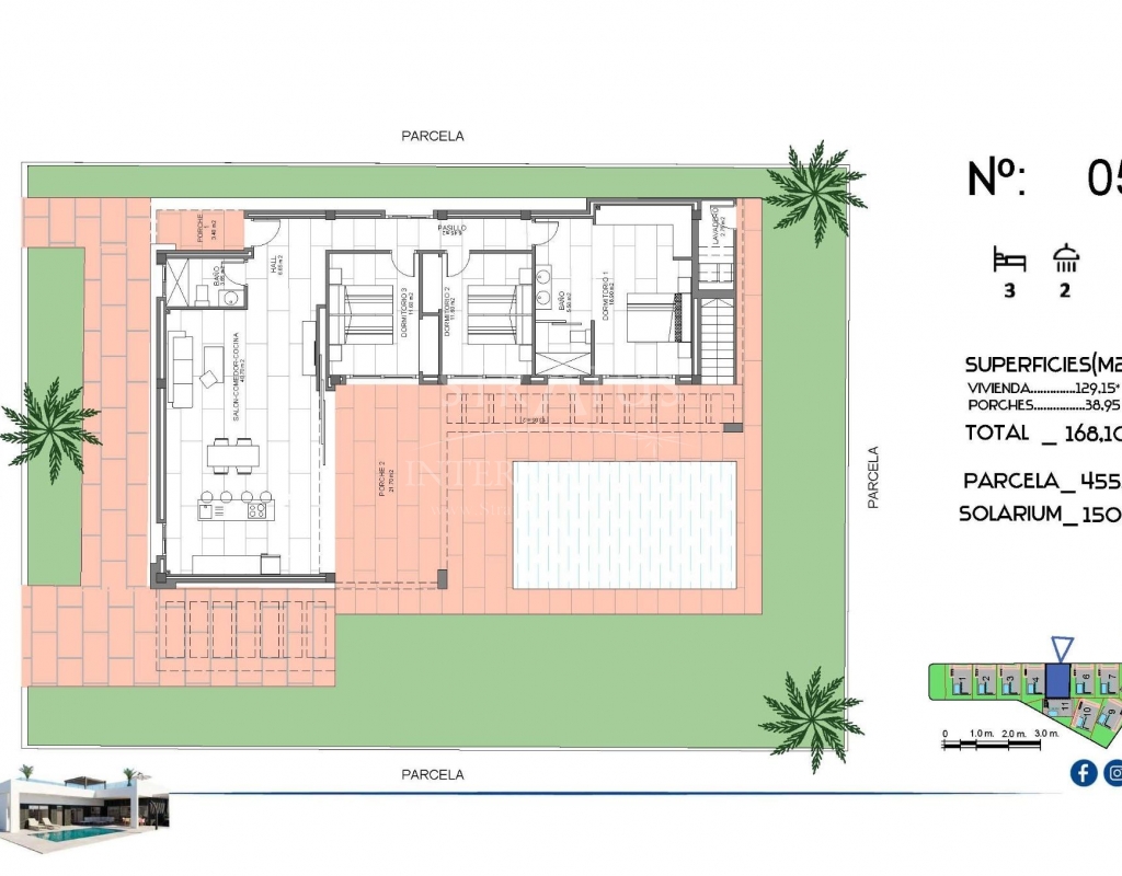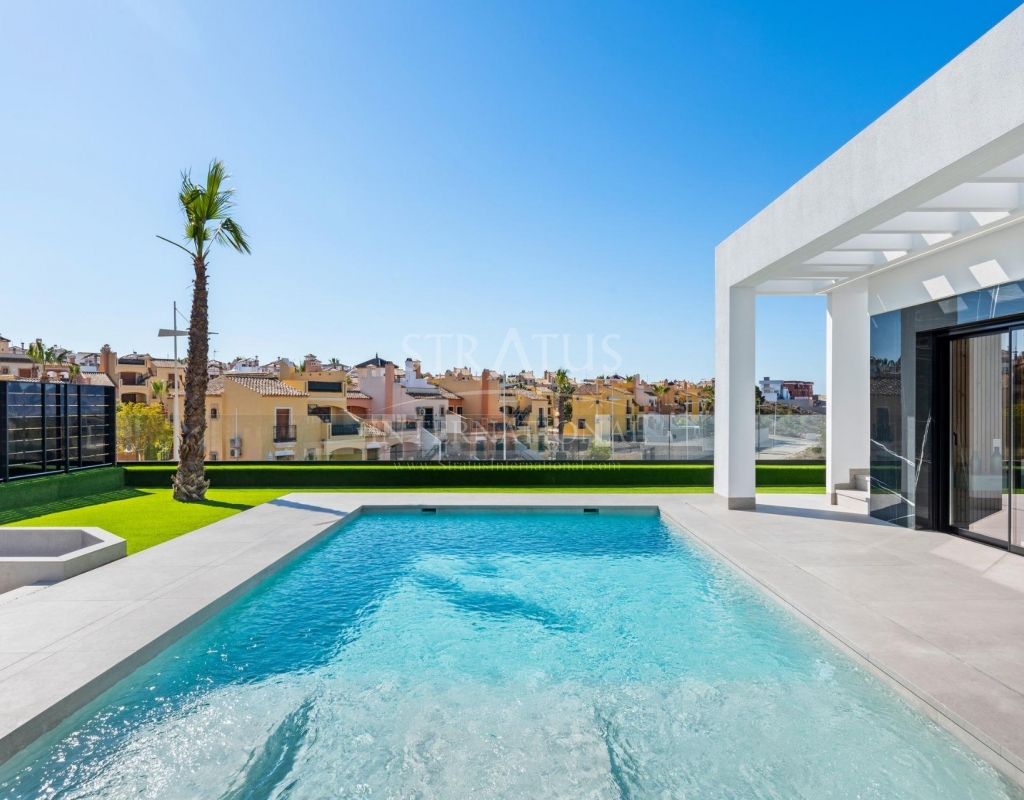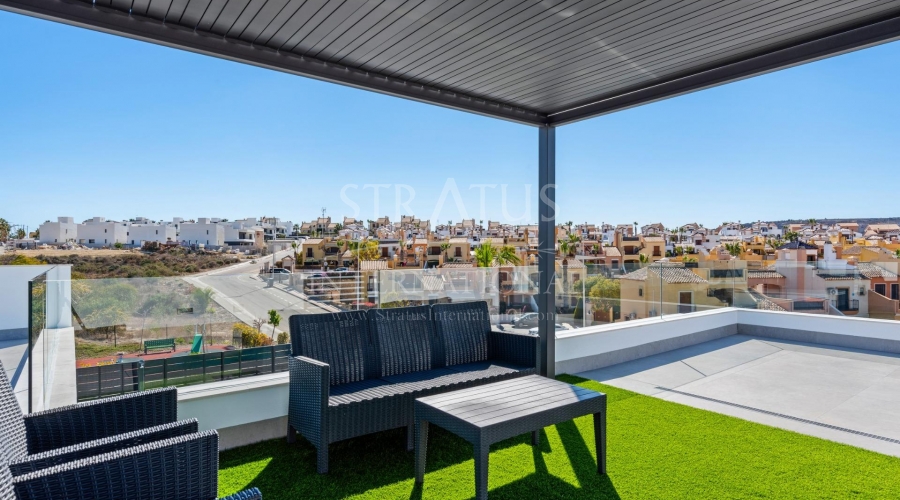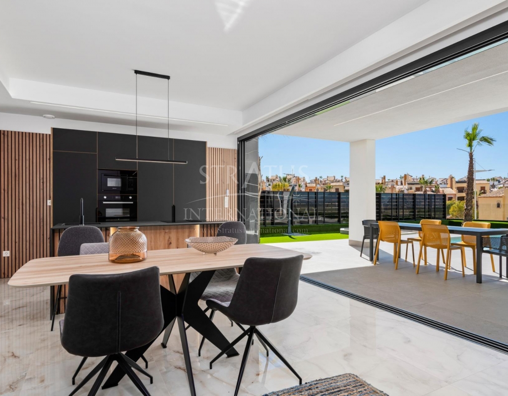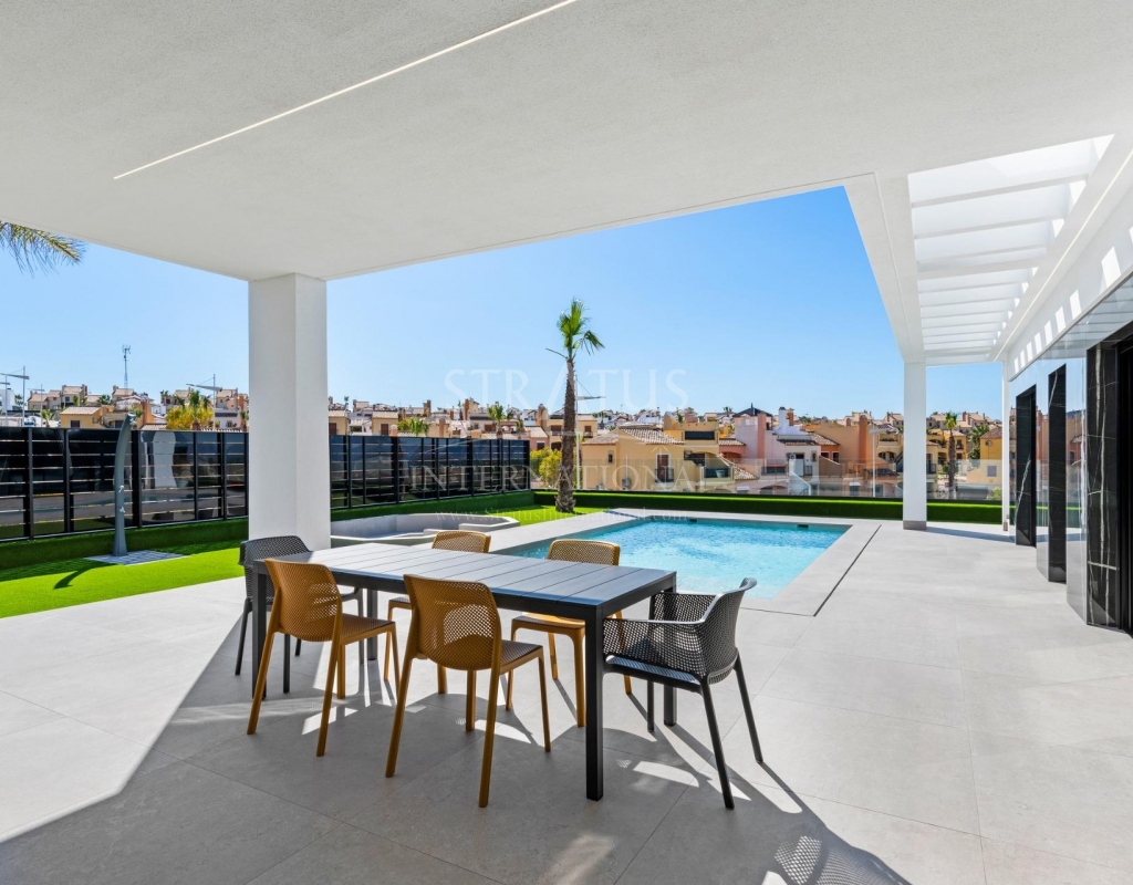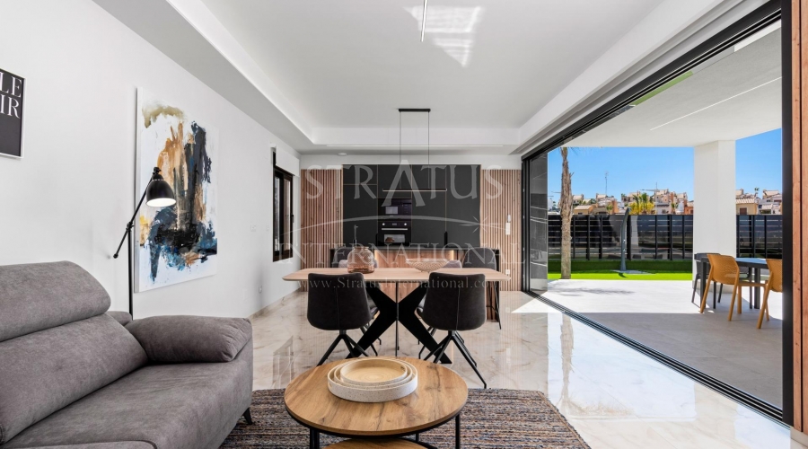 Villas de luxe neuves à La Finca Golf, Algorfa Villas exclusives de plain-pied à côté du Golf La Finca, sur la Costa Blanca Sud Découvrez ce projet résidentiel exclusif de 11 villas indépendantes situées dans le prestigieux complexe La Finca Golf Resort à Algorfa, l'une des zones les plus prisées de la Vega Baja, sur la Costa Blanca Sud. Entouré de paysages verdoyants, de vergers d'agrumes et de fairways vallonnés, cet emplacement offre tranquillité, intimité et un style de vie méditerranéen de grande qualité, tout en restant proche de tous les services essentiels et des attractions côtières. Villas modernes de plain-pied avec piscine privée et solarium Chaque villa est soigneusement conçue sur un seul niveau, offrant confort et fonctionnalité dans toutes les pièces. Les propriétés comprennent 3 chambres spacieuses et 2 salles de bains modernes, une cuisine américaine ouverte et un salon/salle à manger lumineux avec de grandes fenêtres qui s'ouvrent directement sur la terrasse et le jardin privé. À l'extérieur, chaque villa dispose d'une piscine privée, d'une place de parking dans la propriété et d'un impressionnant solarium privé de 150 m², idéal pour profiter du soleil toute l'année. Pour les acheteurs qui souhaitent disposer de plus d'espace, il est possible d'ajouter un sous-sol ou une quatrième chambre à l'étage supérieur, moyennant un coût supplémentaire, ce qui vous permet d'adapter la maison à vos besoins personnels. Spécifications de haute qualité et finitions élégantes Ces villas sont construites avec des matériaux et des finitions haut de gamme pour garantir confort, efficacité et style moderne. Elles comprennent notamment une porte d'entrée renforcée, des volets motorisés, des cuisines entièrement équipées avec des appareils électroménagers et des salles de bains complètes avec meubles, miroirs et parois de douche. Le solarium sur le toit est livré avec une cuisine d'été et une pergola, créant ainsi le cadre idéal pour les repas en plein air et la détente. Un ensemble d'éclairage LED intérieur et extérieur est également inclus, améliorant à la fois le design et l'ambiance. Emplacement privilégié dans le complexe La Finca Golf Resort La Finca Golf Resort est réputé pour son parcours de golf de championnat, son hôtel de luxe, ses installations de spa, ses restaurants et ses zones sportives, le tout dans un environnement sécurisé et bien entretenu. Algorfa est un charmant village espagnol offrant une atmosphère détendue, des magasins locaux et des restaurants traditionnels, tandis que les villes voisines offrent un éventail plus large de services. Distances clés Club de golf La Finca : sur place Plages de Guardamar del Segura : 15 km Centres commerciaux de Torrevieja et Orihuela Costa : 15 km Almoradi, Benijofar et Ciudad Quesada : 5 à 10 km Aéroport international d'Alicante : 35 km Mode de vie méditerranéen et investissement intelligent Avec plus de 300 jours de soleil par an, d'excellentes liaisons routières et la proximité des plages, des terrains de golf et des zones commerciales, ces villas sont idéales comme résidence permanente, maison de vacances ou opportunité d'investissement sur la Costa Blanca. Réservez dès aujourd'hui votre nouvelle villa à La Finca Golf Ne manquez pas l'occasion de devenir propriétaire d'une villa moderne dans l'un des complexes de golf les plus exclusifs d'Algorfa. Contactez-nous dès aujourd'hui pour obtenir plus d'informations ou organiser une visite privée.Features